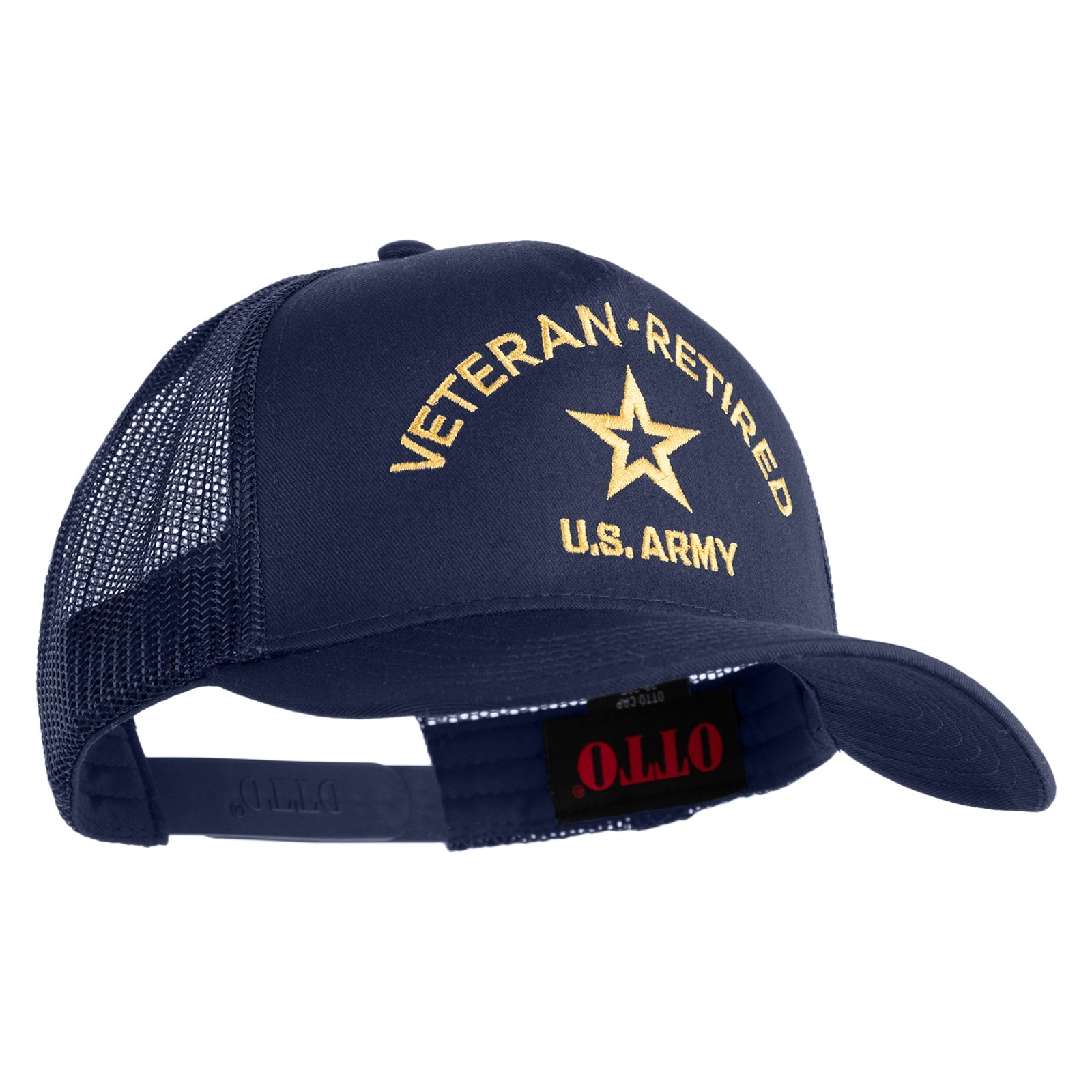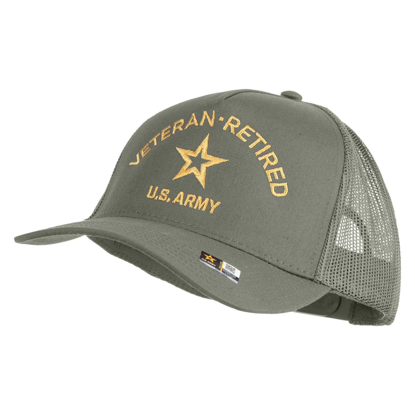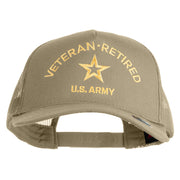 Title, Star US Army Veteran Retired Embroidered Solid Cotton Twill 5 Panel Mesh Back Cap