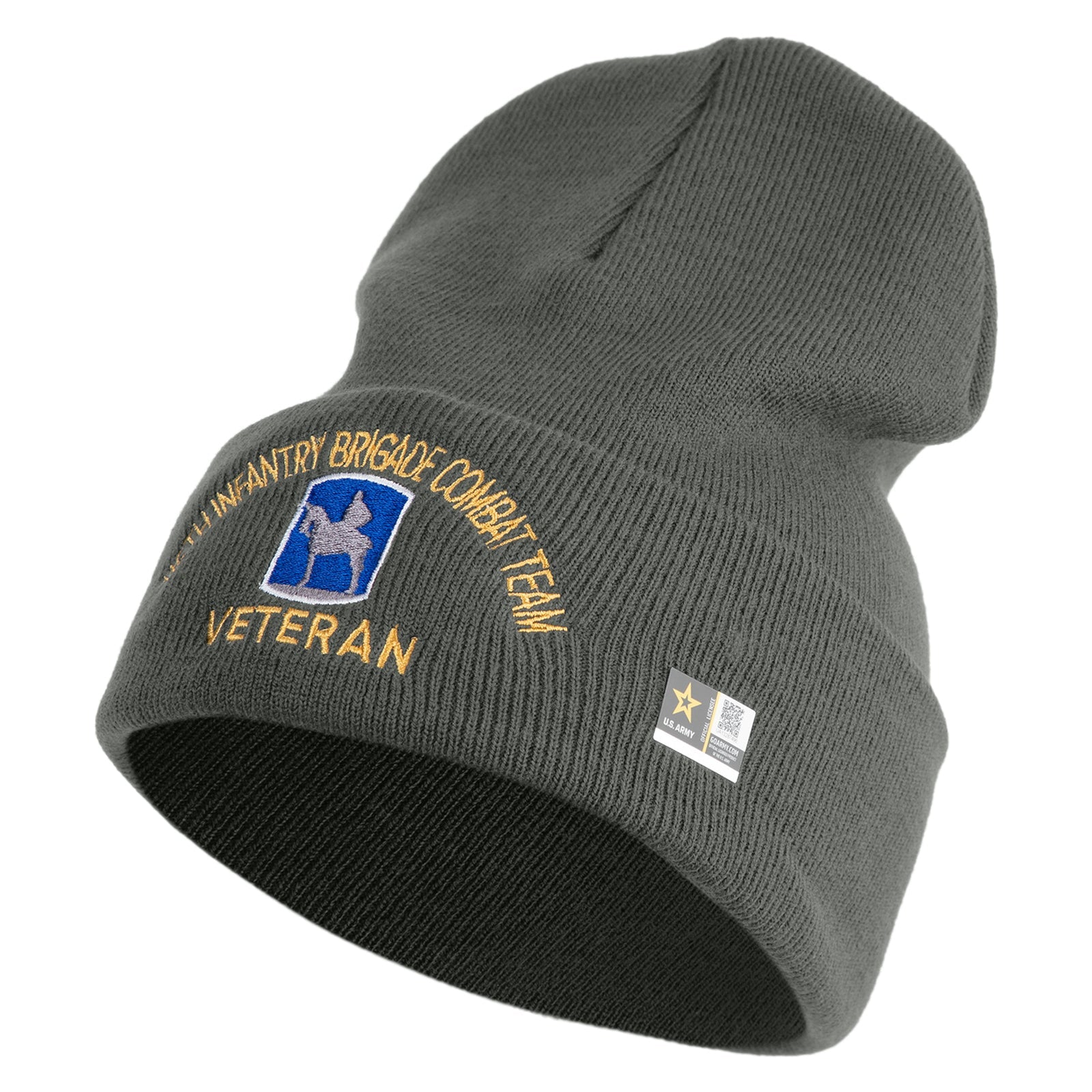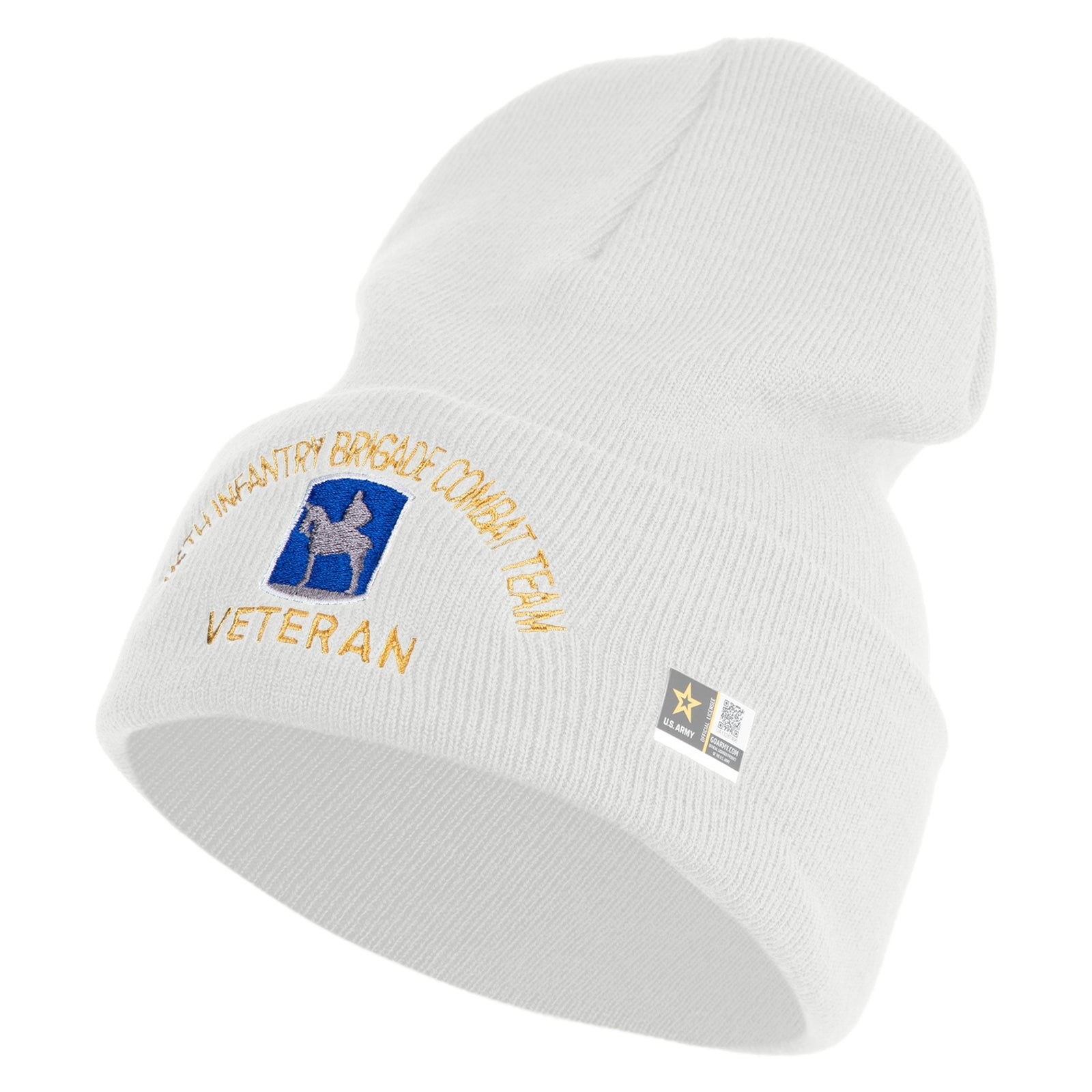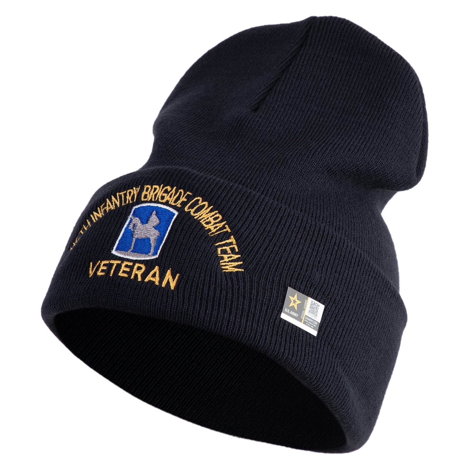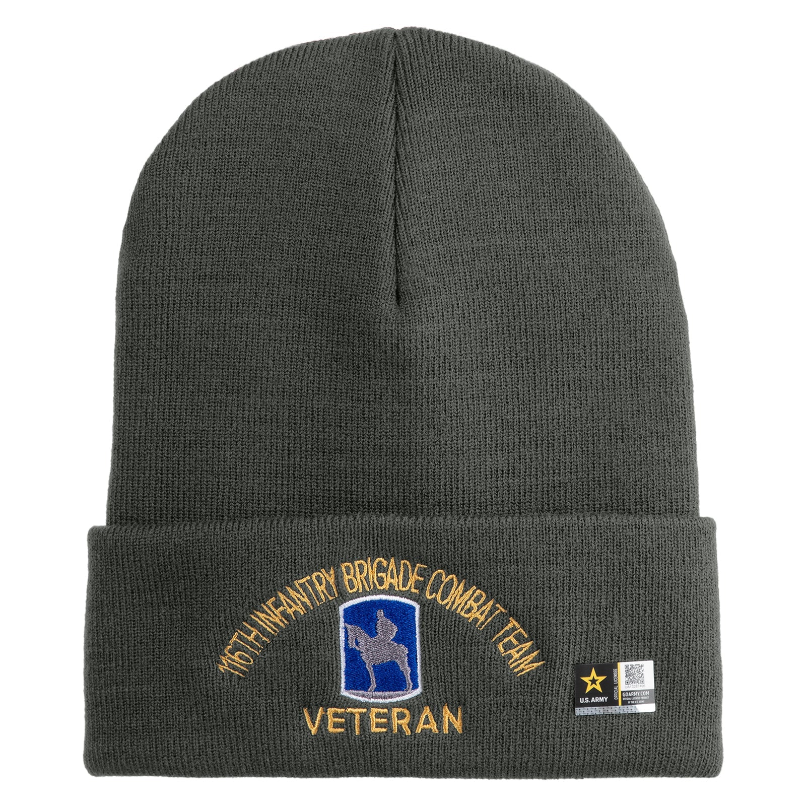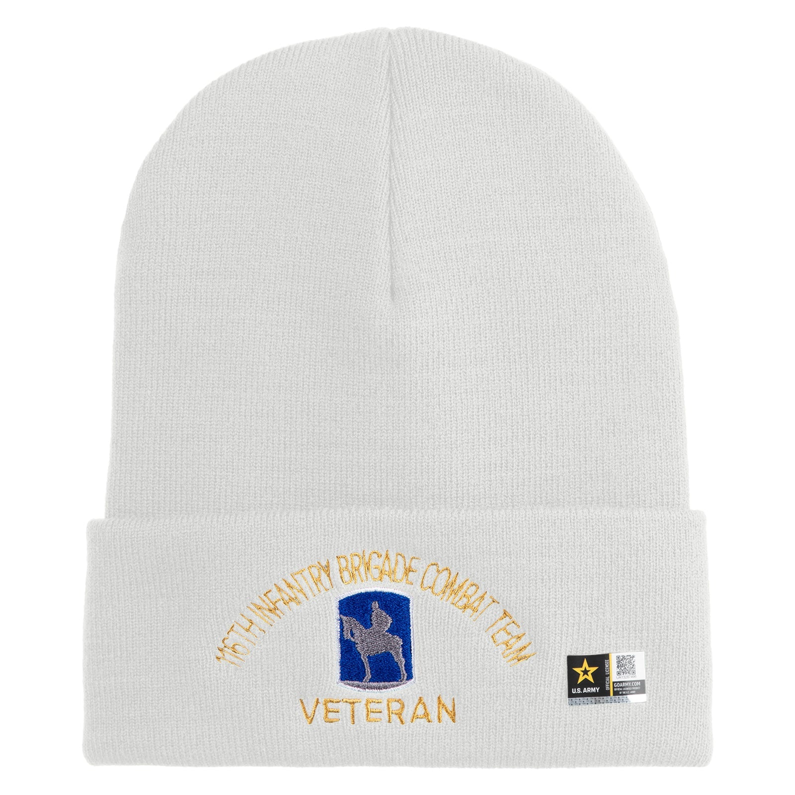 U.S. Army 116th Infantry Brigade Combat Team Logo Embroidered 12 Inch Solid Knit Cuff Long Beanie Made in USA