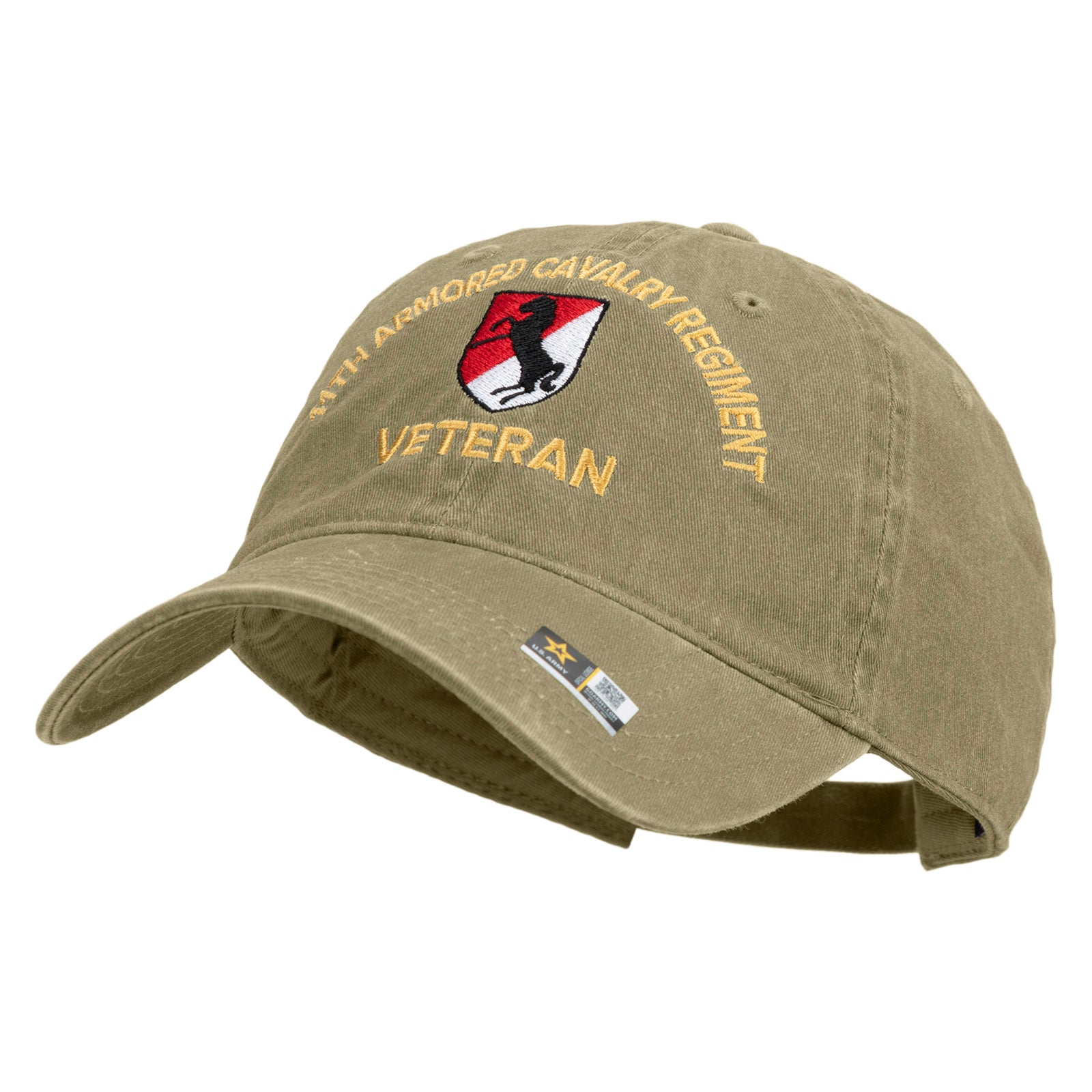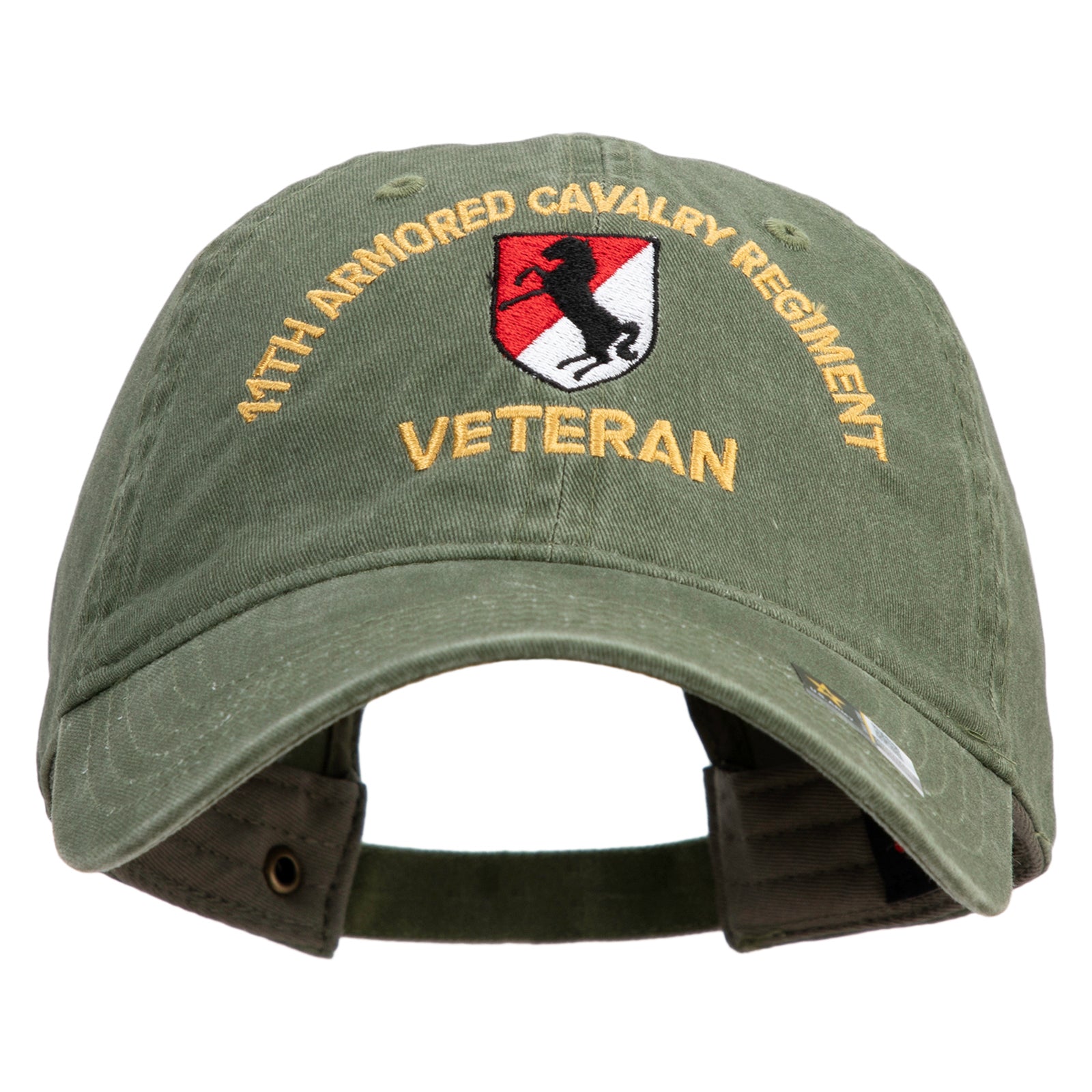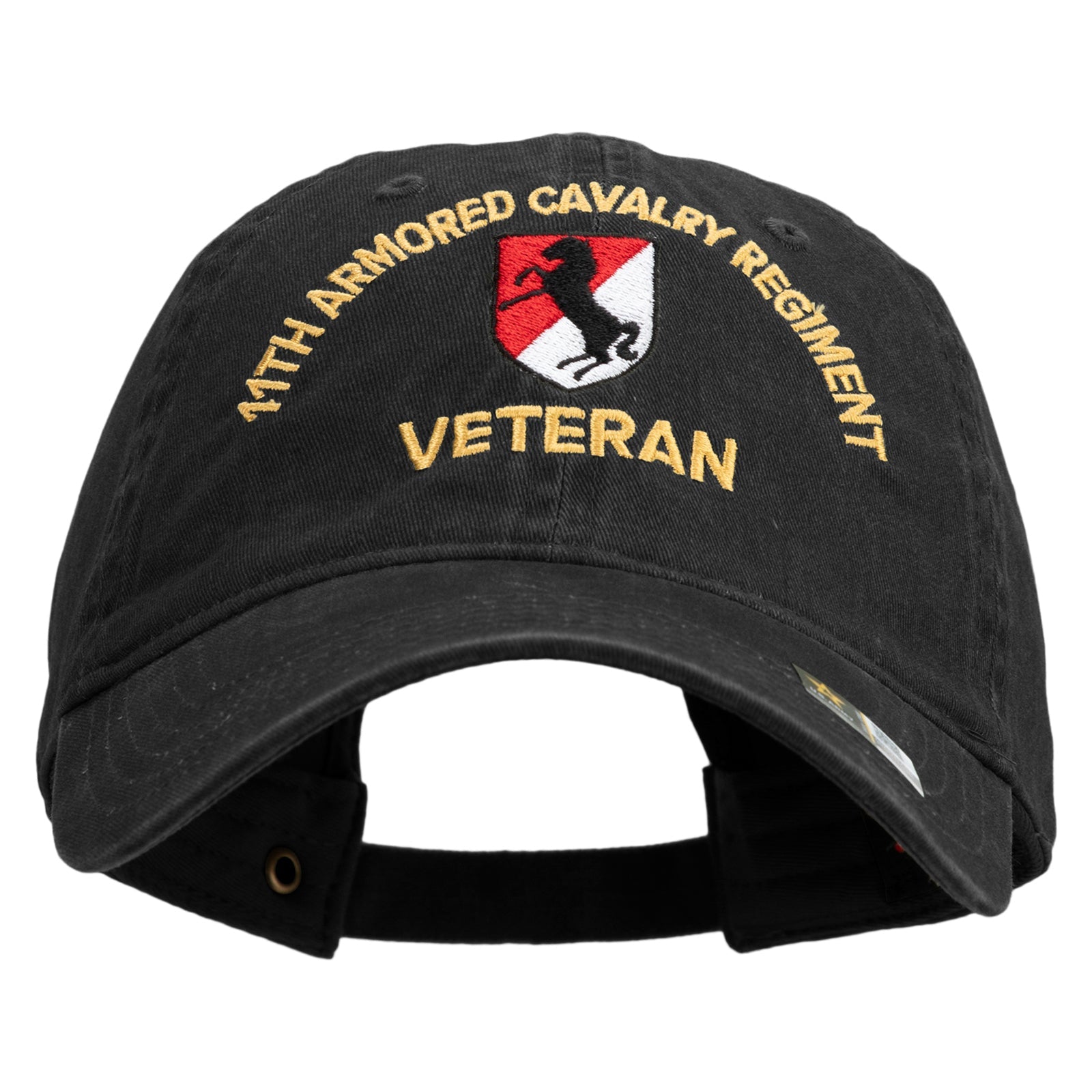 Title, U.S. Army 11th Armored Cavalry Regiment Embroidered Washed Solid Pigment Dyed Cotton Twill Brass Buckle Cap