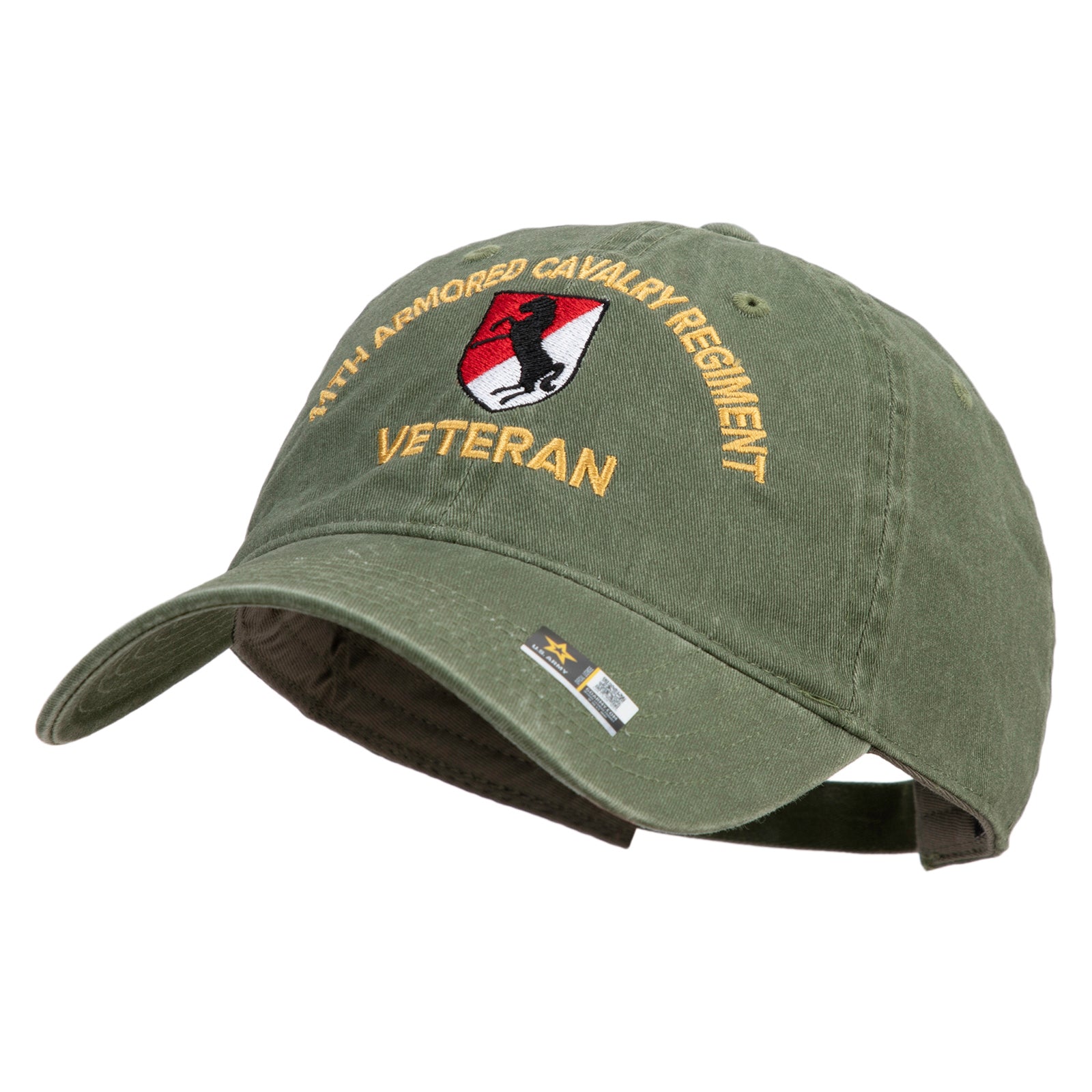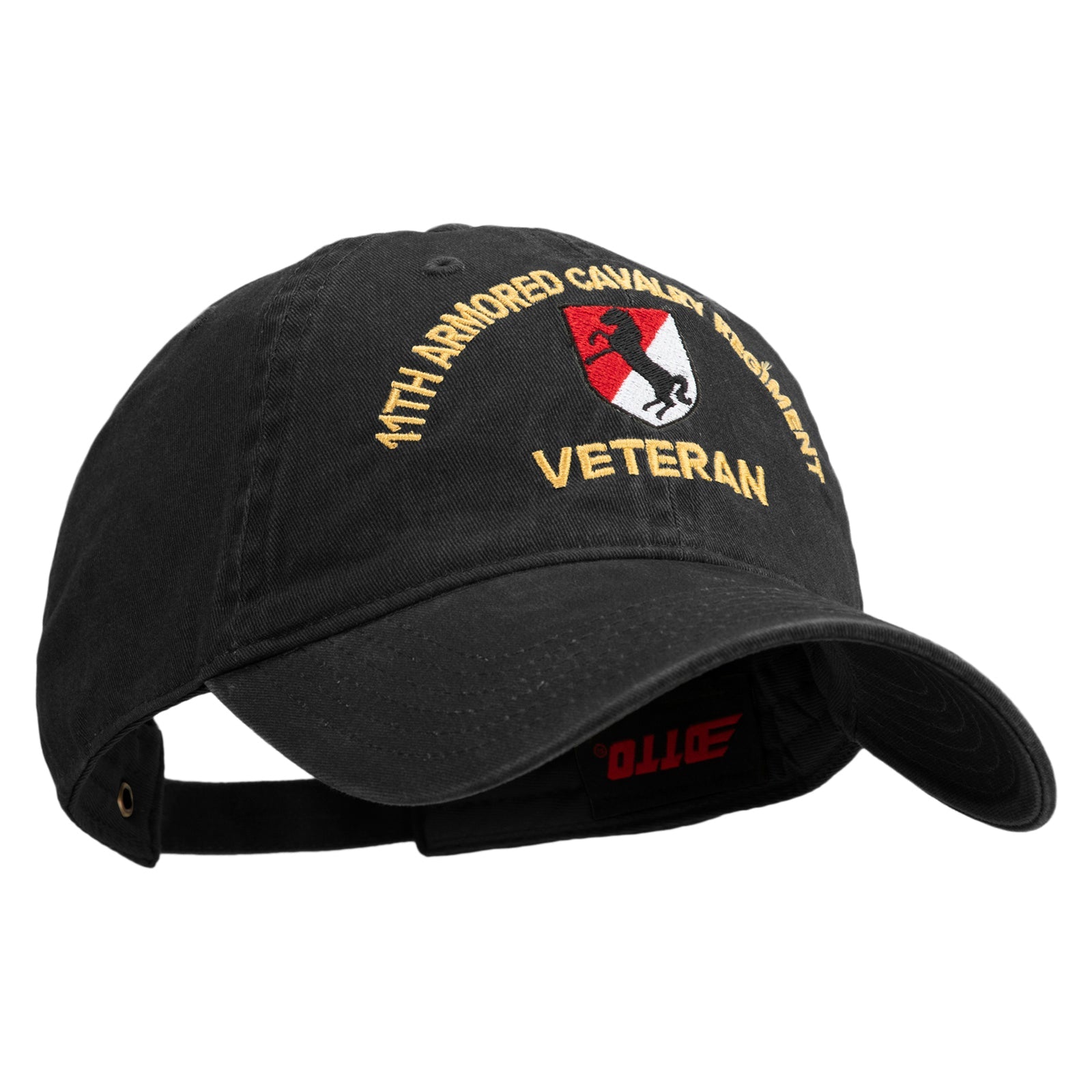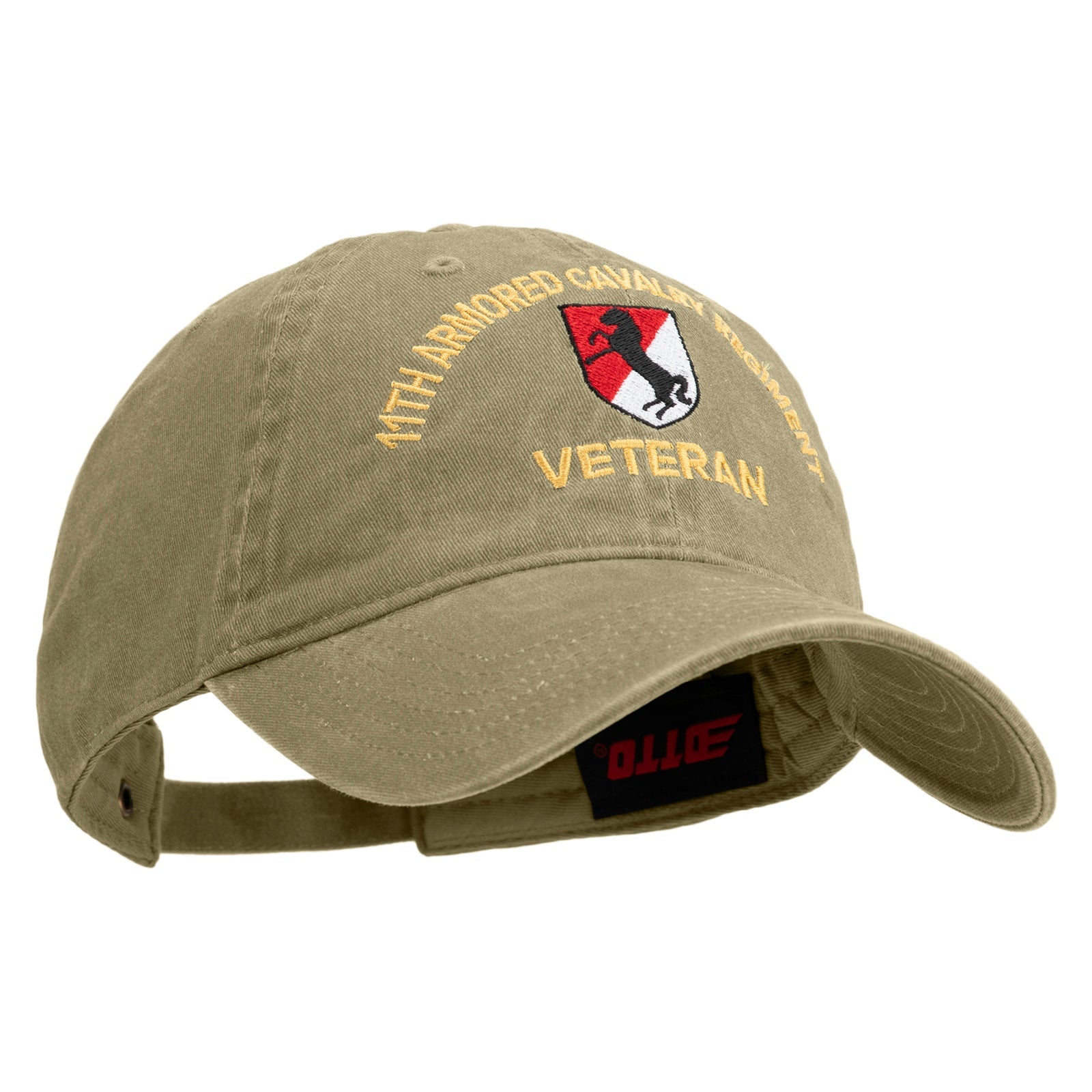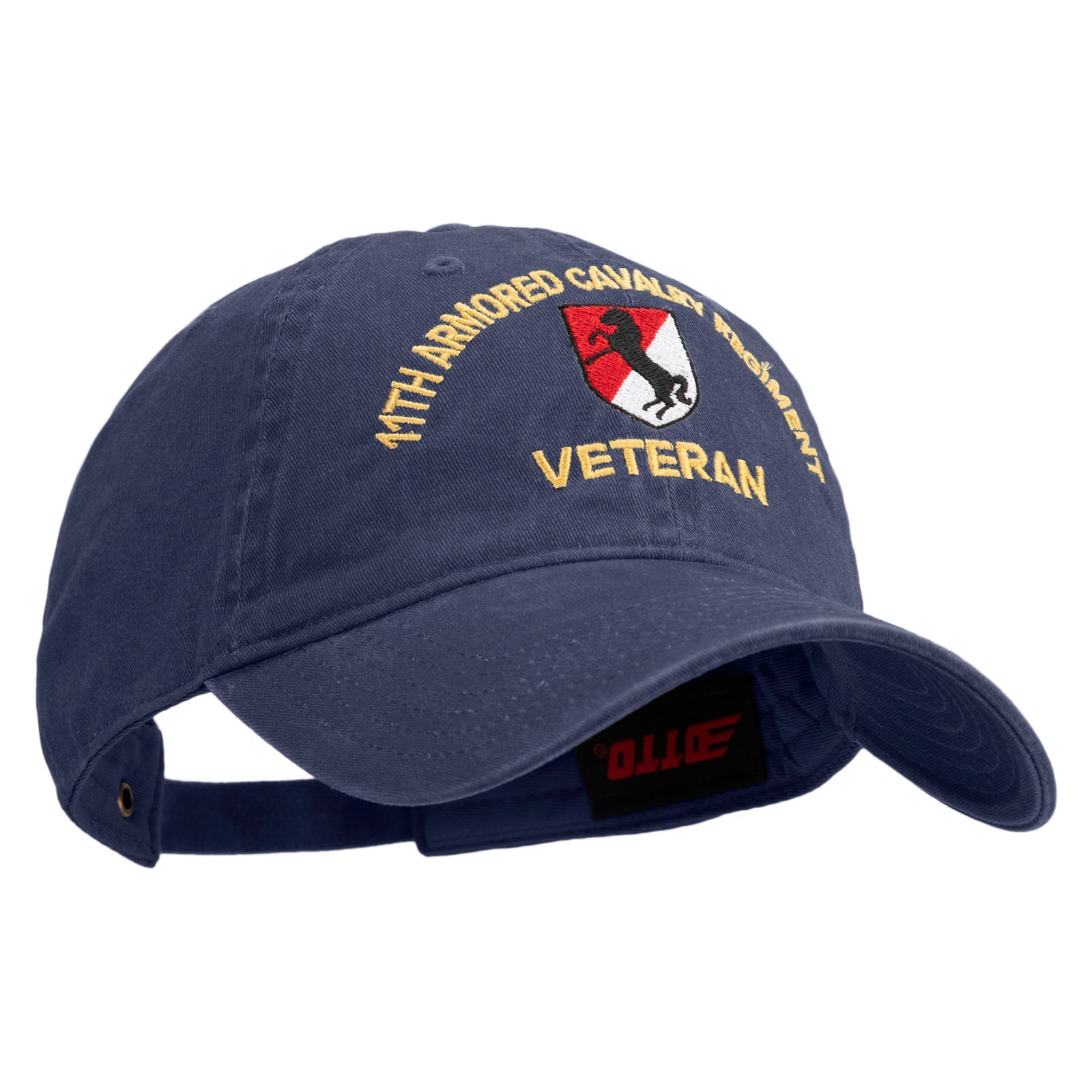 Title, U.S. Army 11th Armored Cavalry Regiment Embroidered Washed Solid Pigment Dyed Cotton Twill Brass Buckle Cap