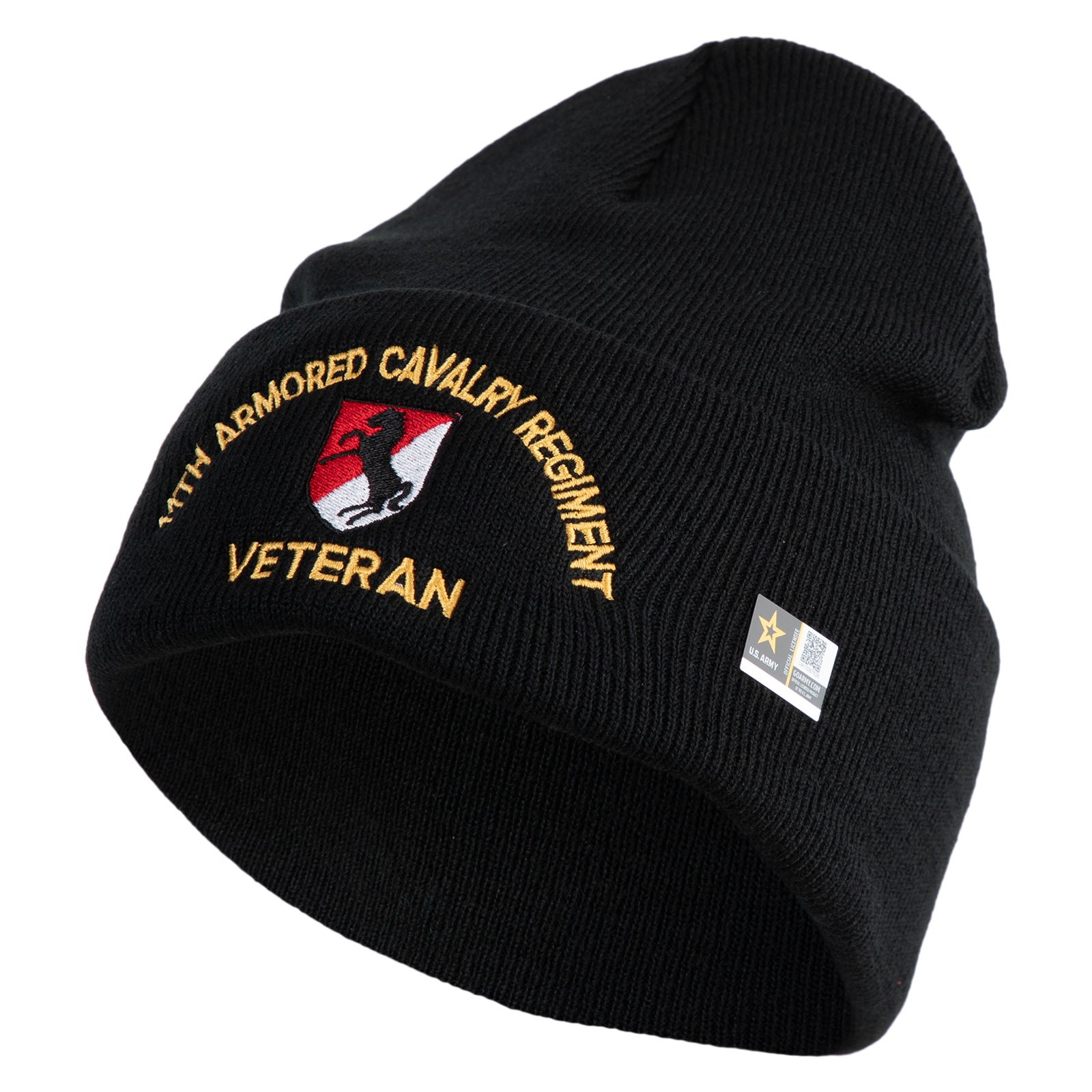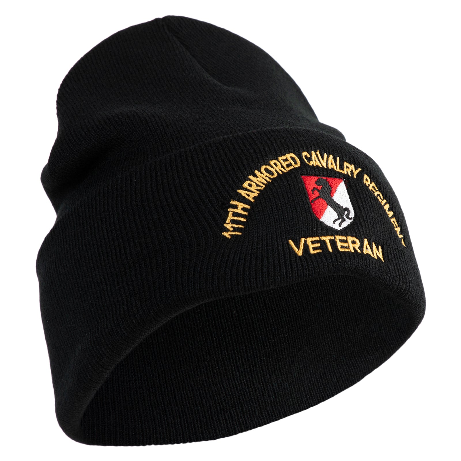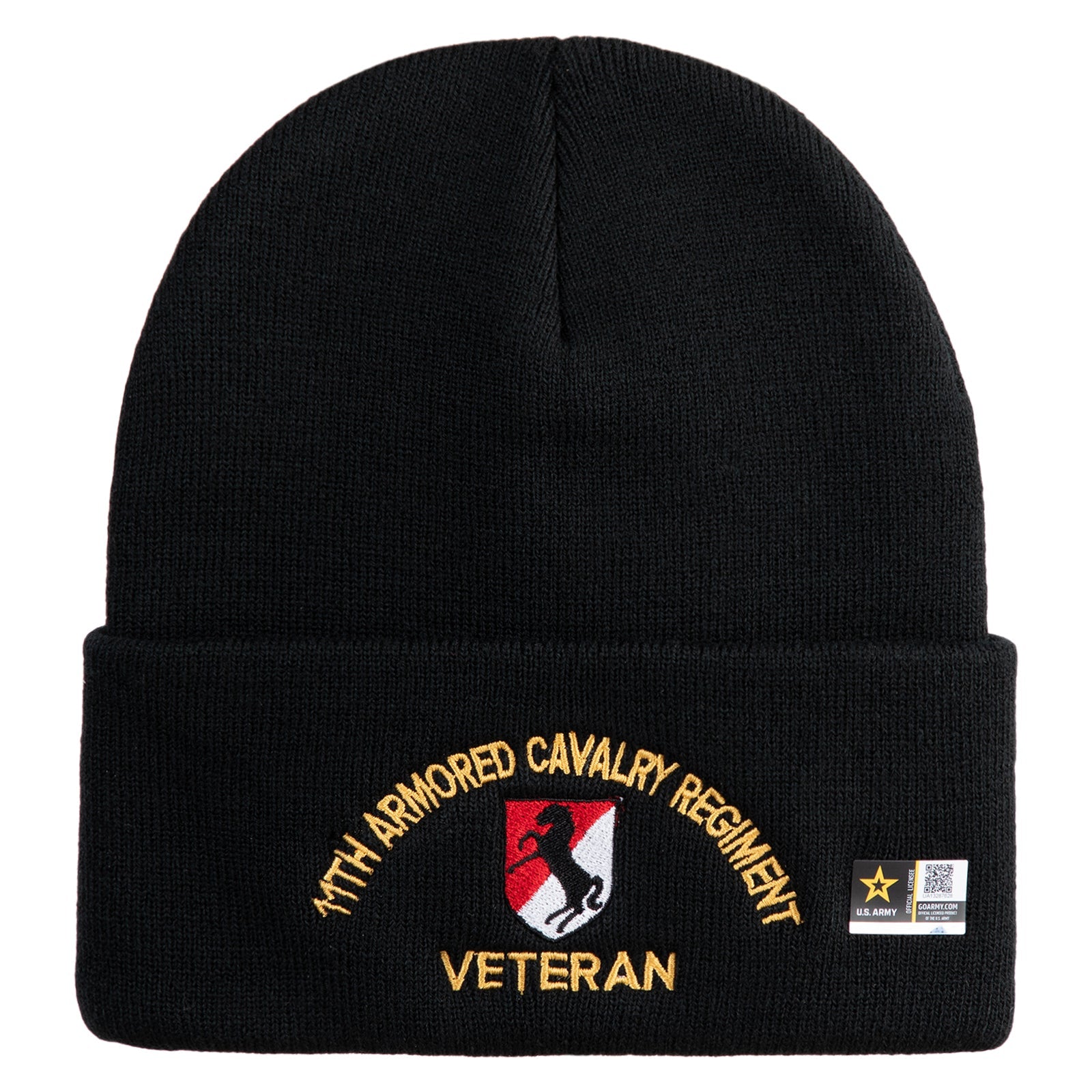 Title, U.S. Army 11th Armored Cavalry Regiment Logo Embroidered 12 Inch Solid Knit Cuff Long Beanie Made in USA