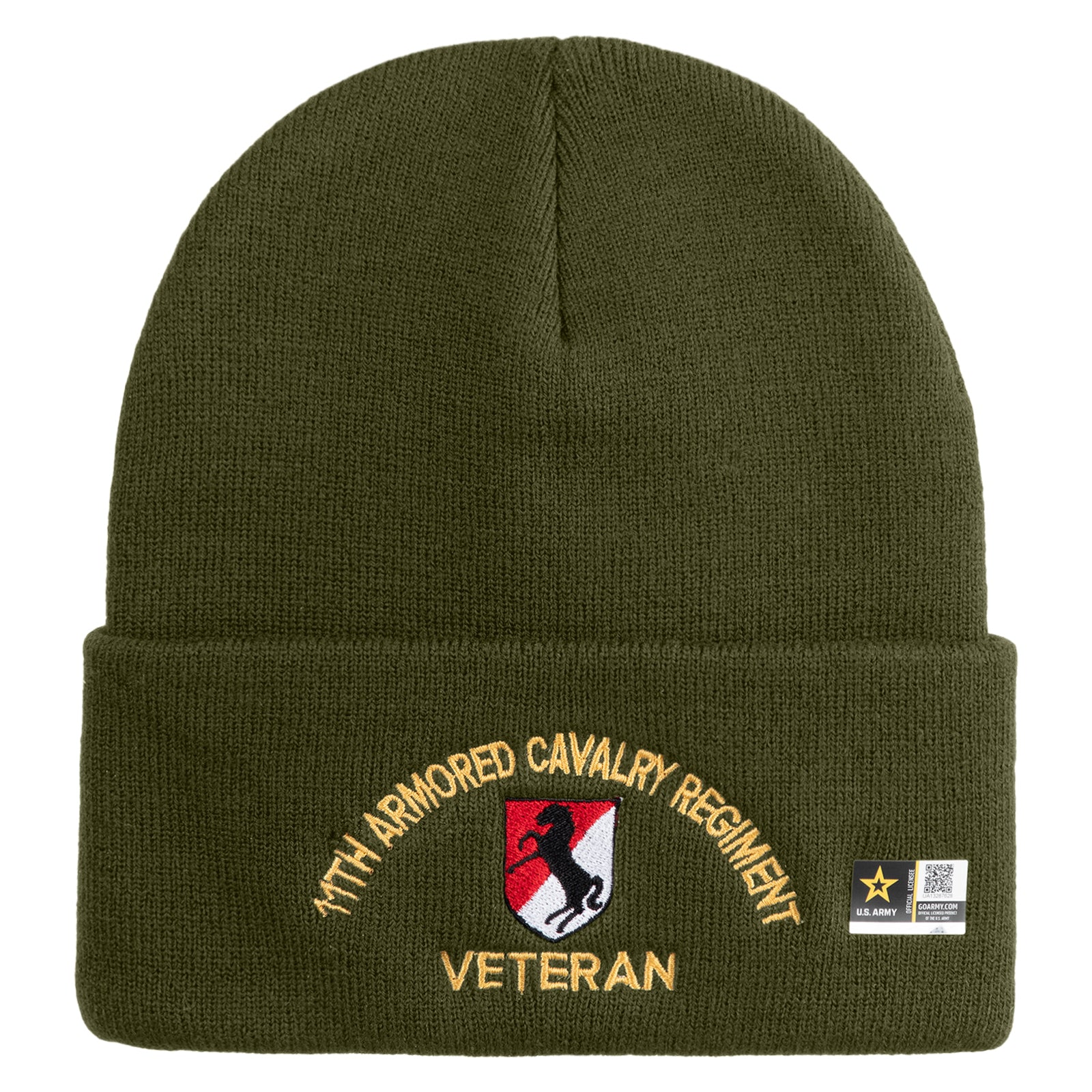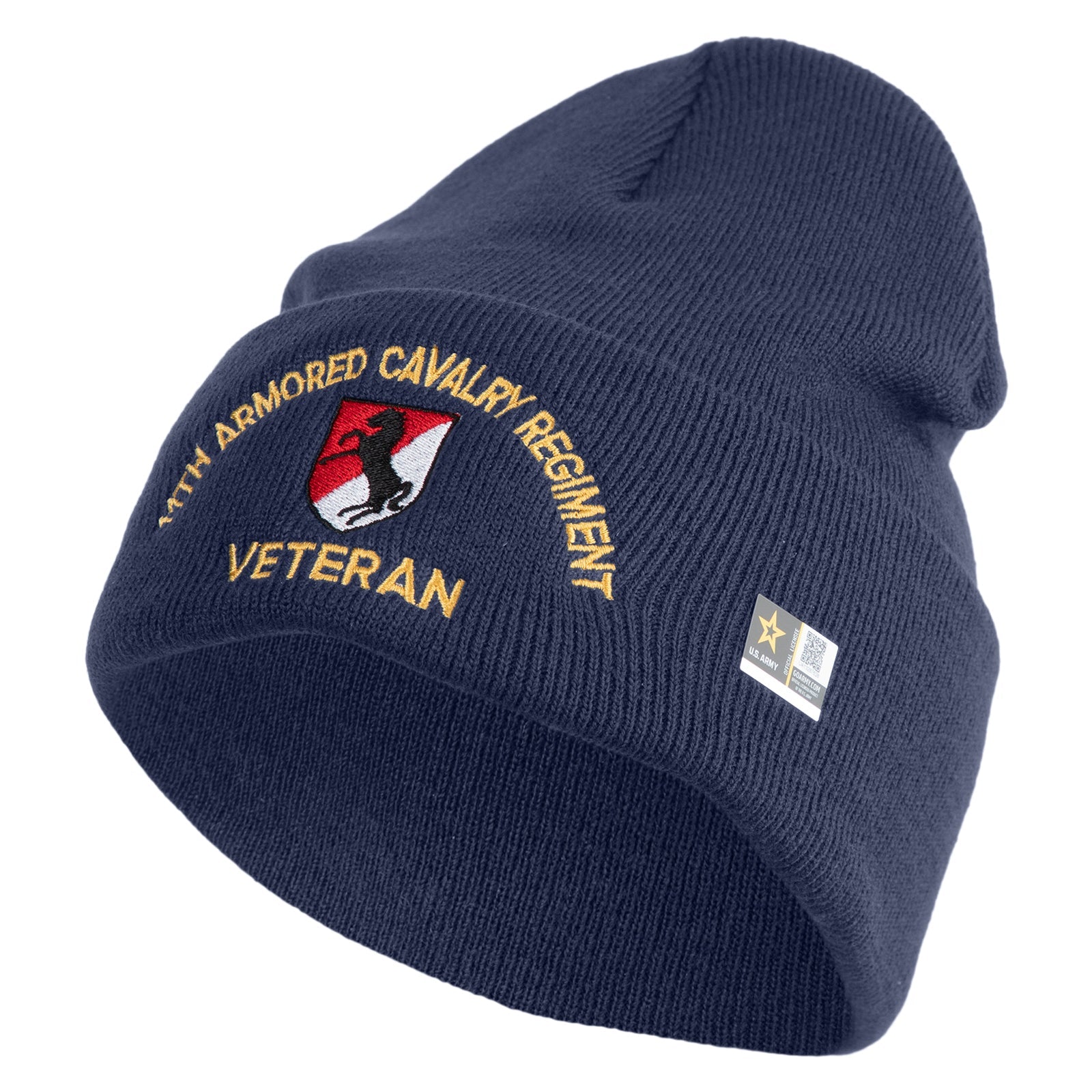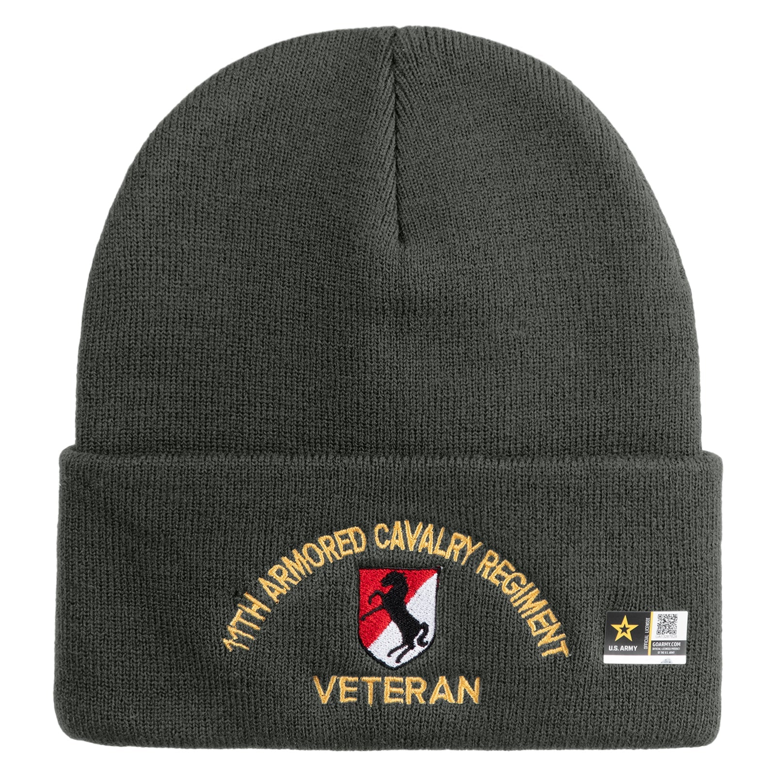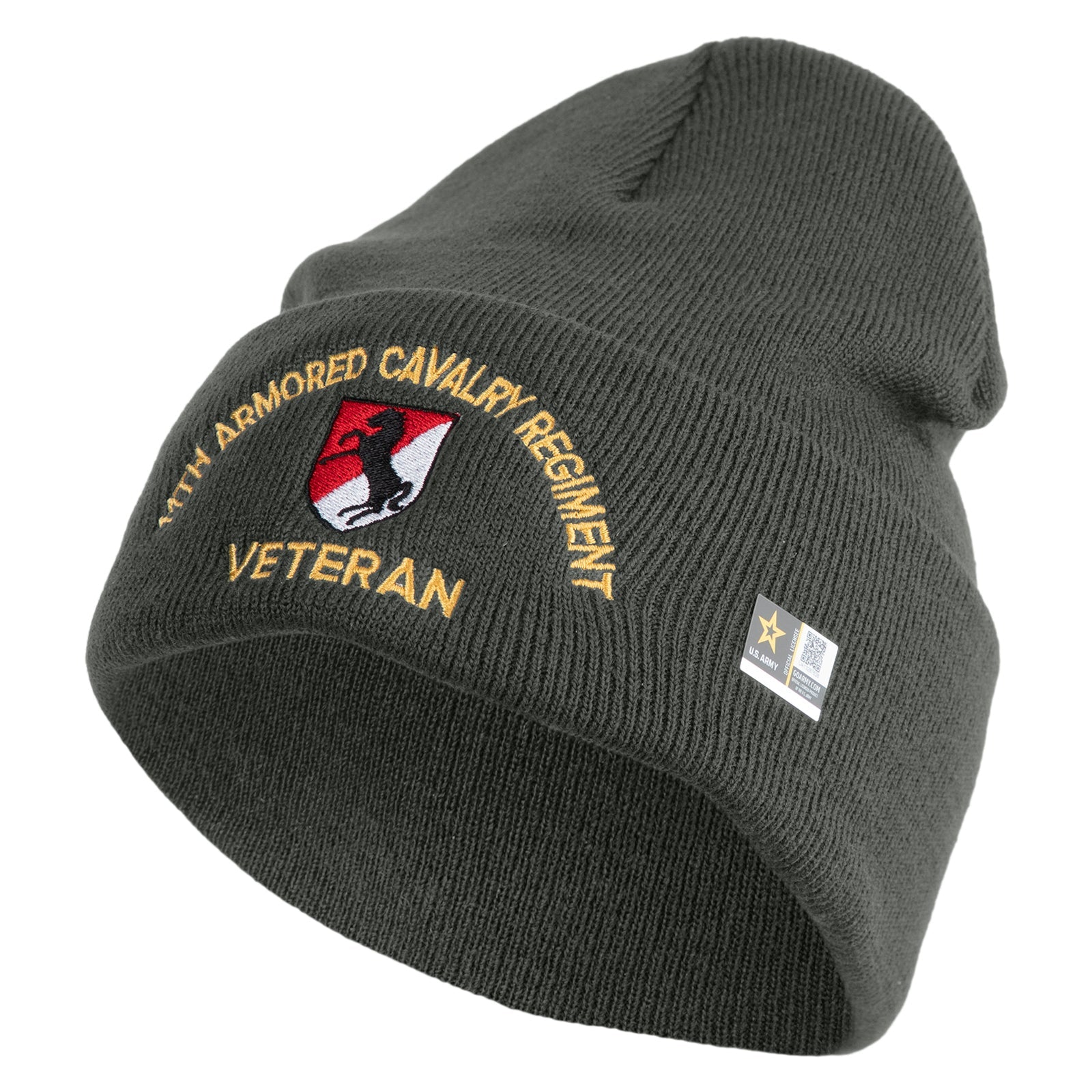 Title, U.S. Army 11th Armored Cavalry Regiment Logo Embroidered 12 Inch Solid Knit Cuff Long Beanie Made in USA