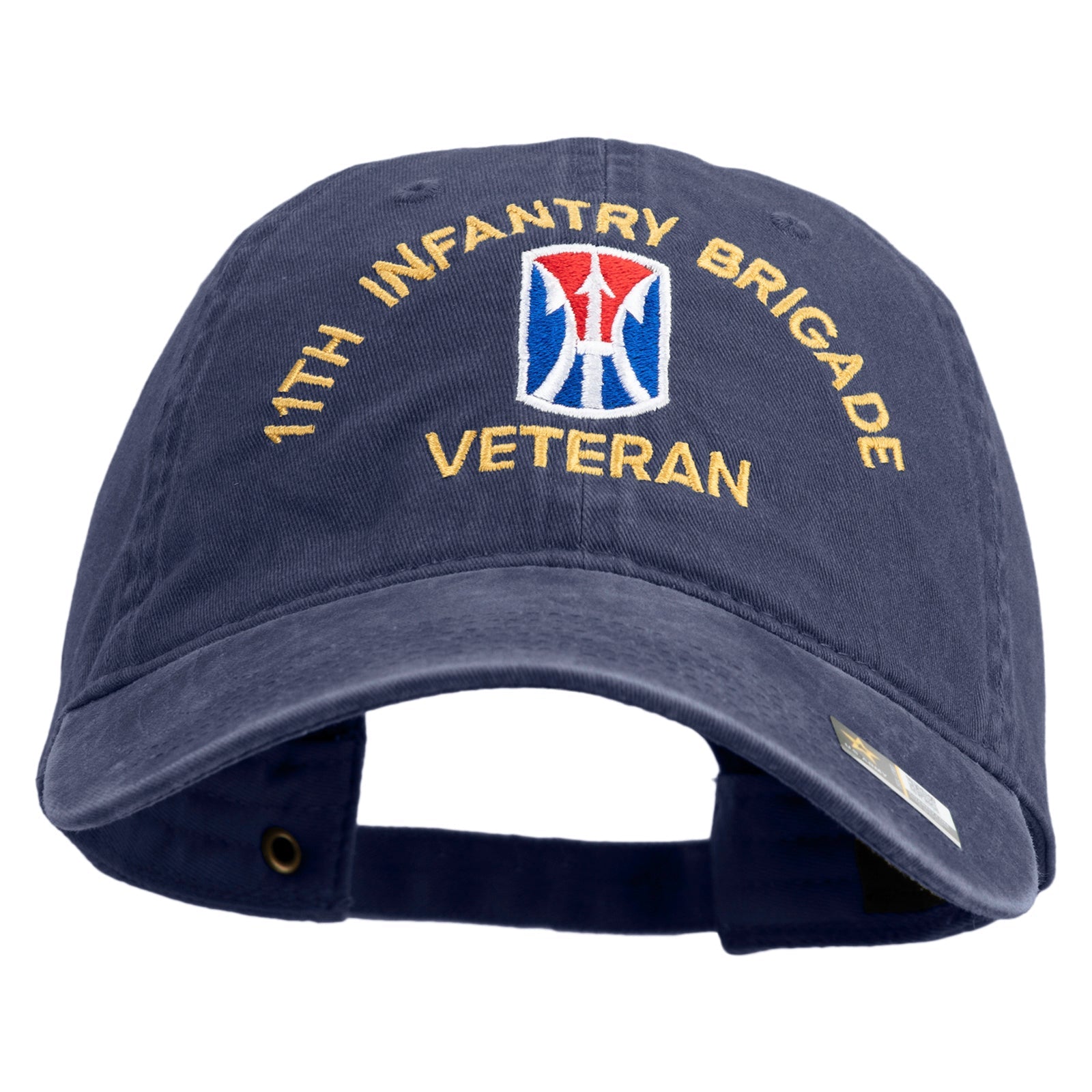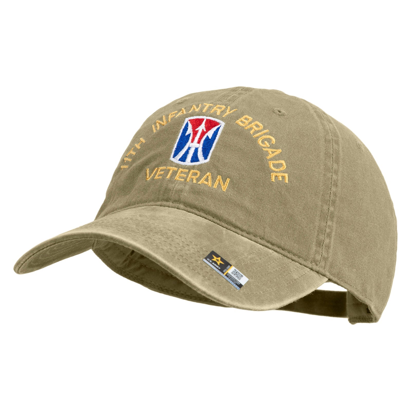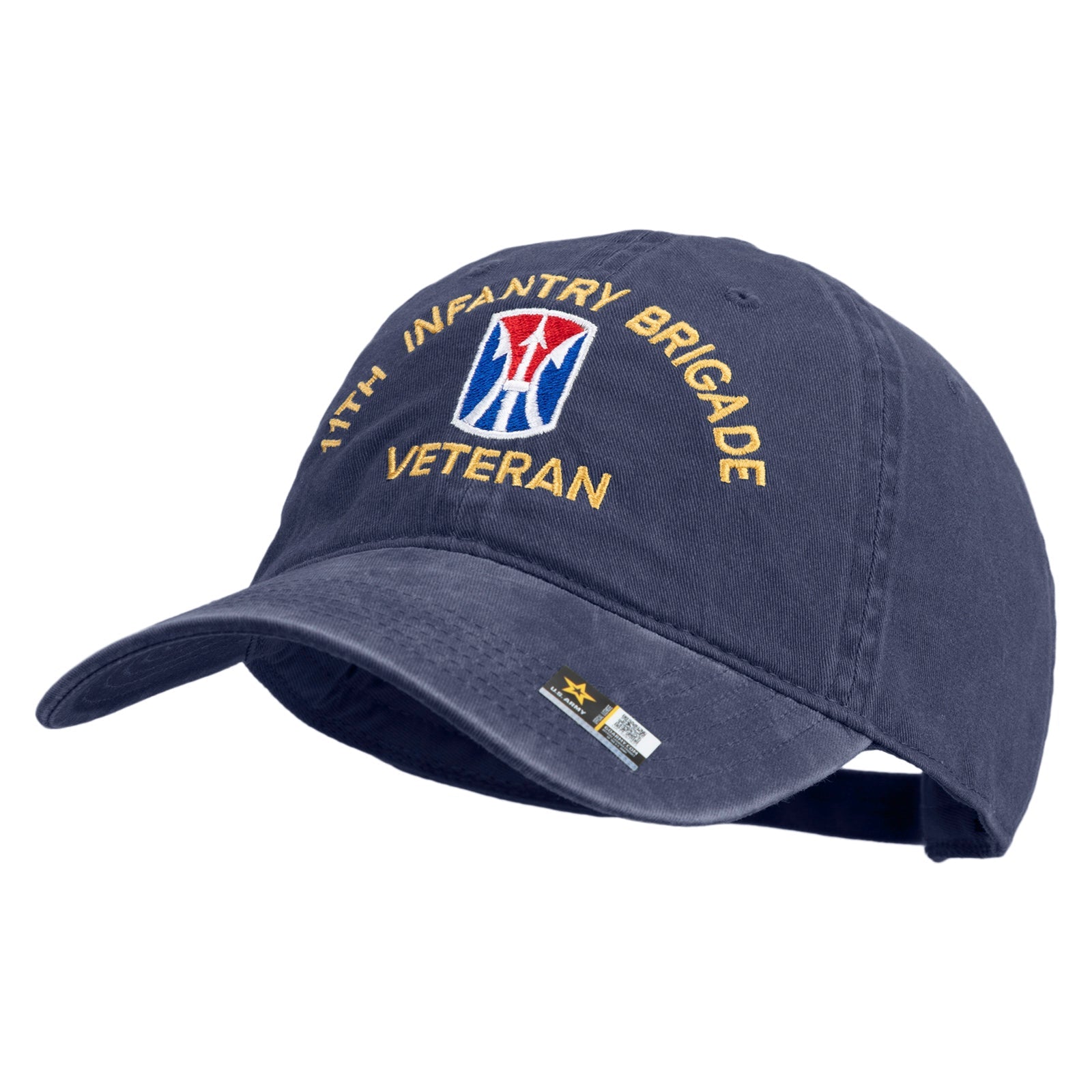 Title, U.S. Army 11th Infantry Brigade Embroidered Washed Solid Pigment Dyed Cotton Twill Brass Buckle Cap