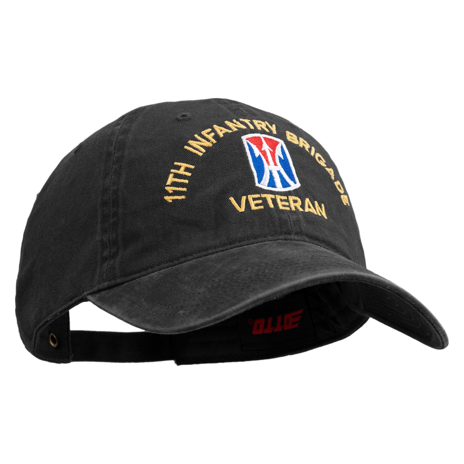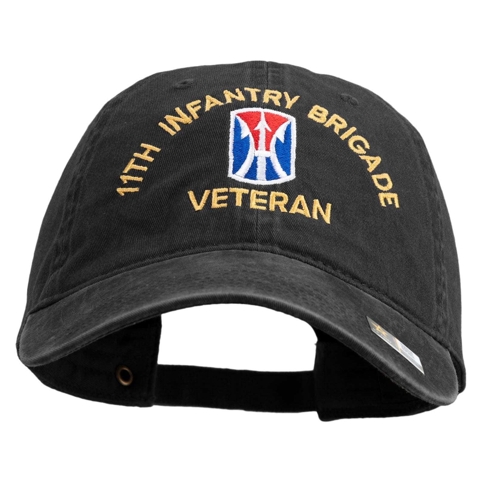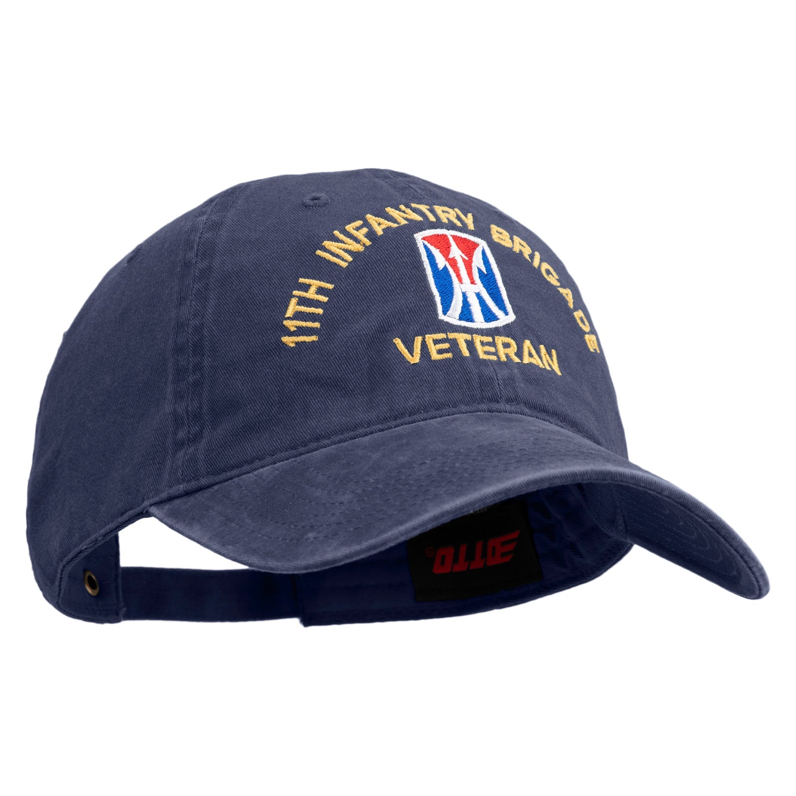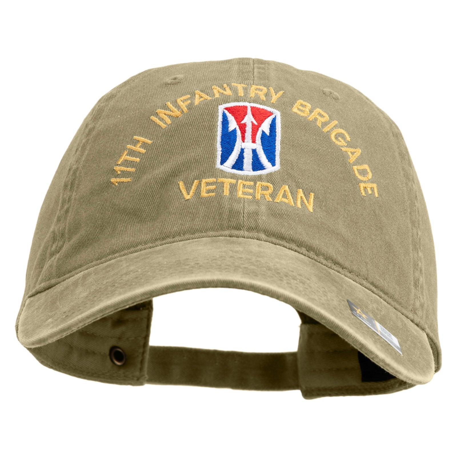 Title, U.S. Army 11th Infantry Brigade Embroidered Washed Solid Pigment Dyed Cotton Twill Brass Buckle Cap