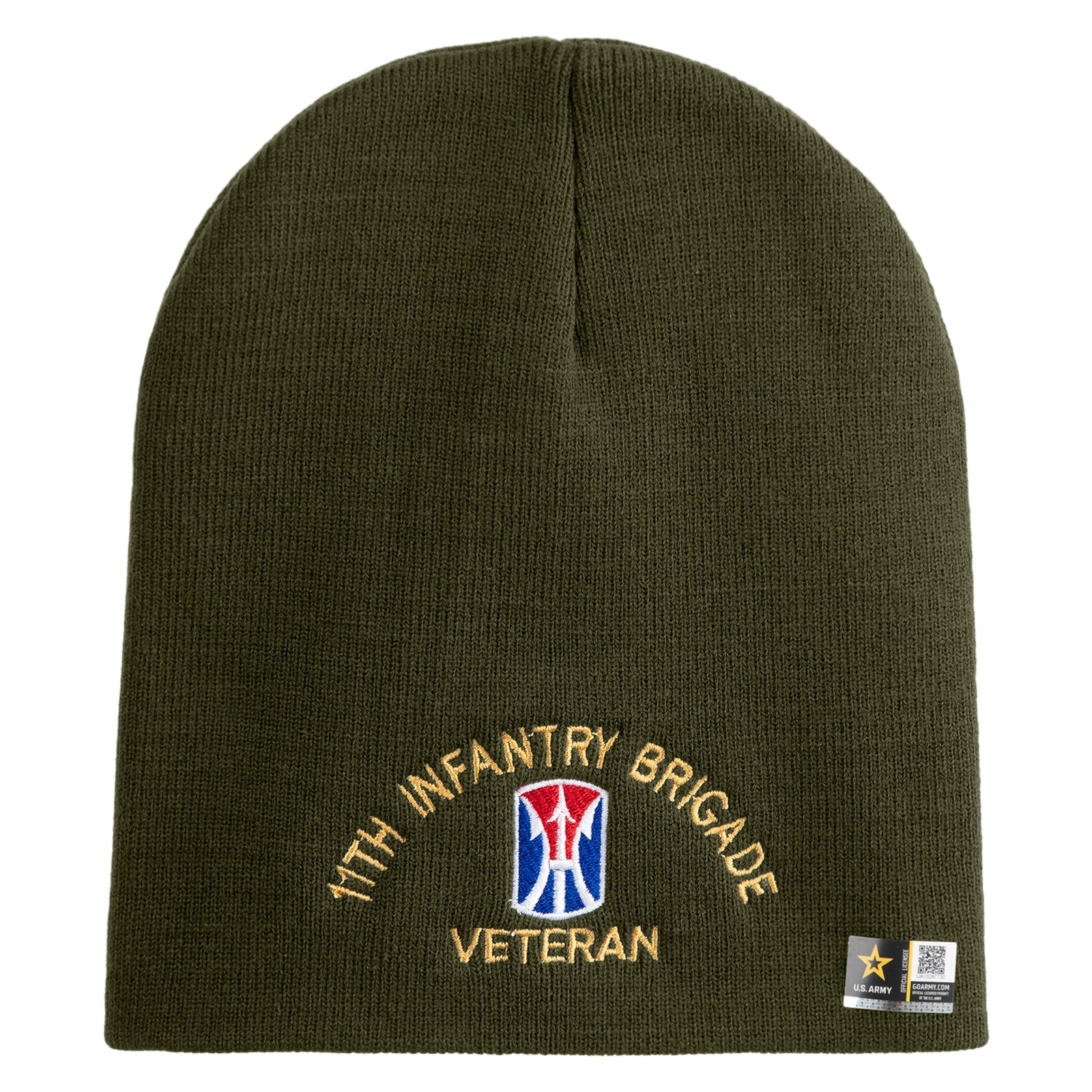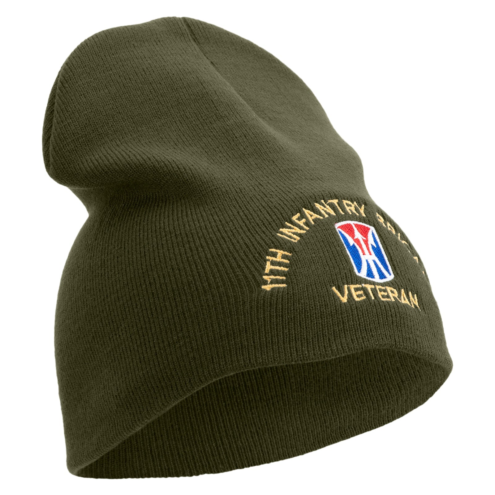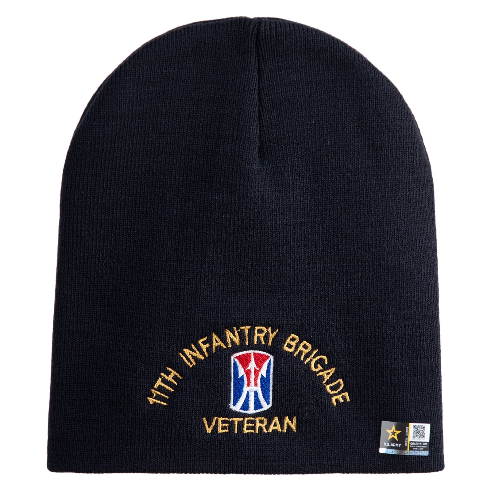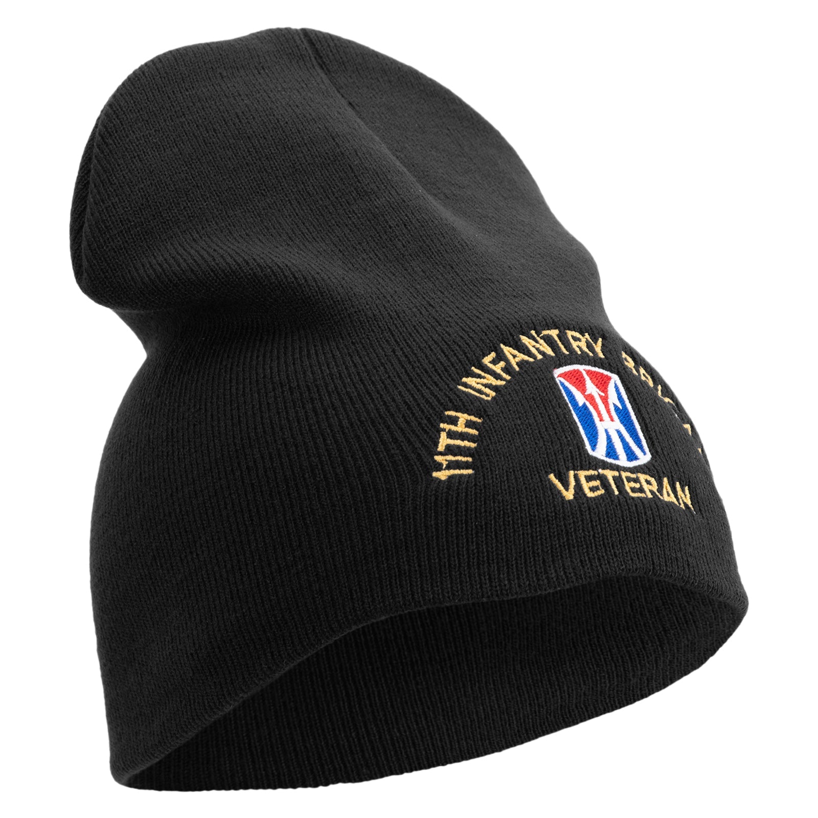 Title, U.S. Army 11th Infantry Brigade Symbol Embroidered 8 Inch Solid Knit Short Beanie Made in USA
