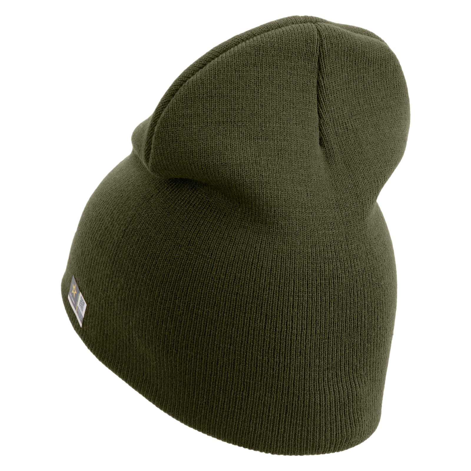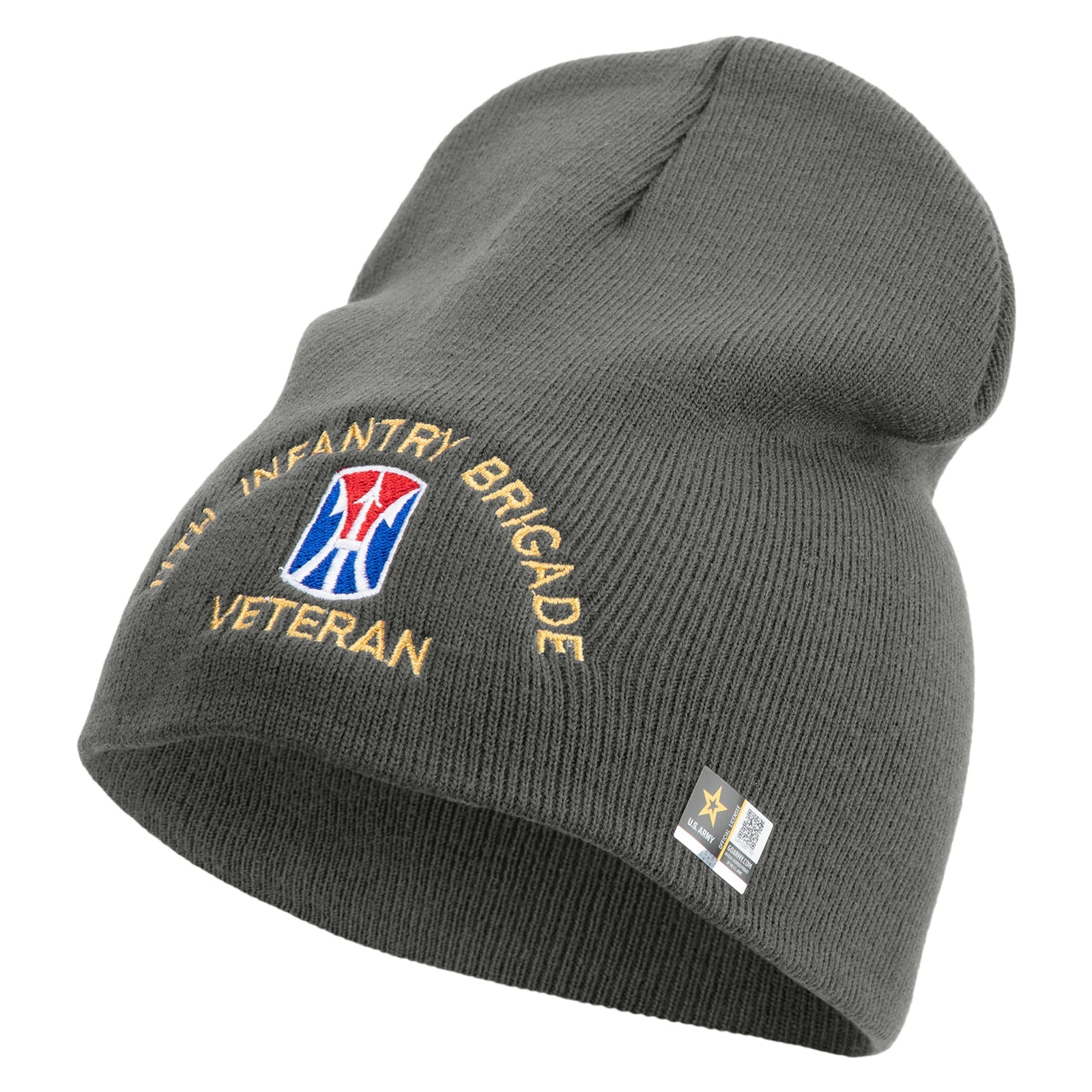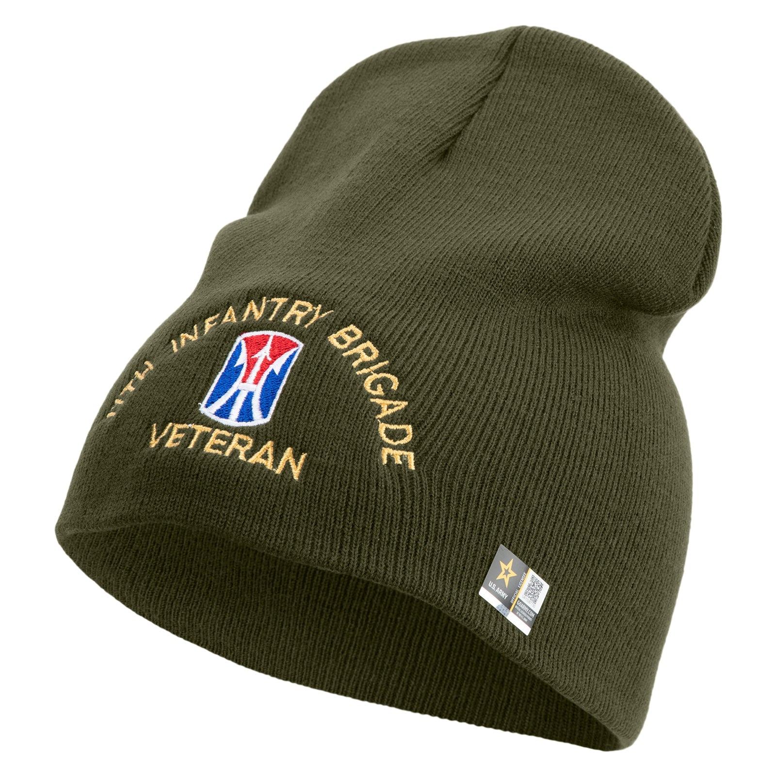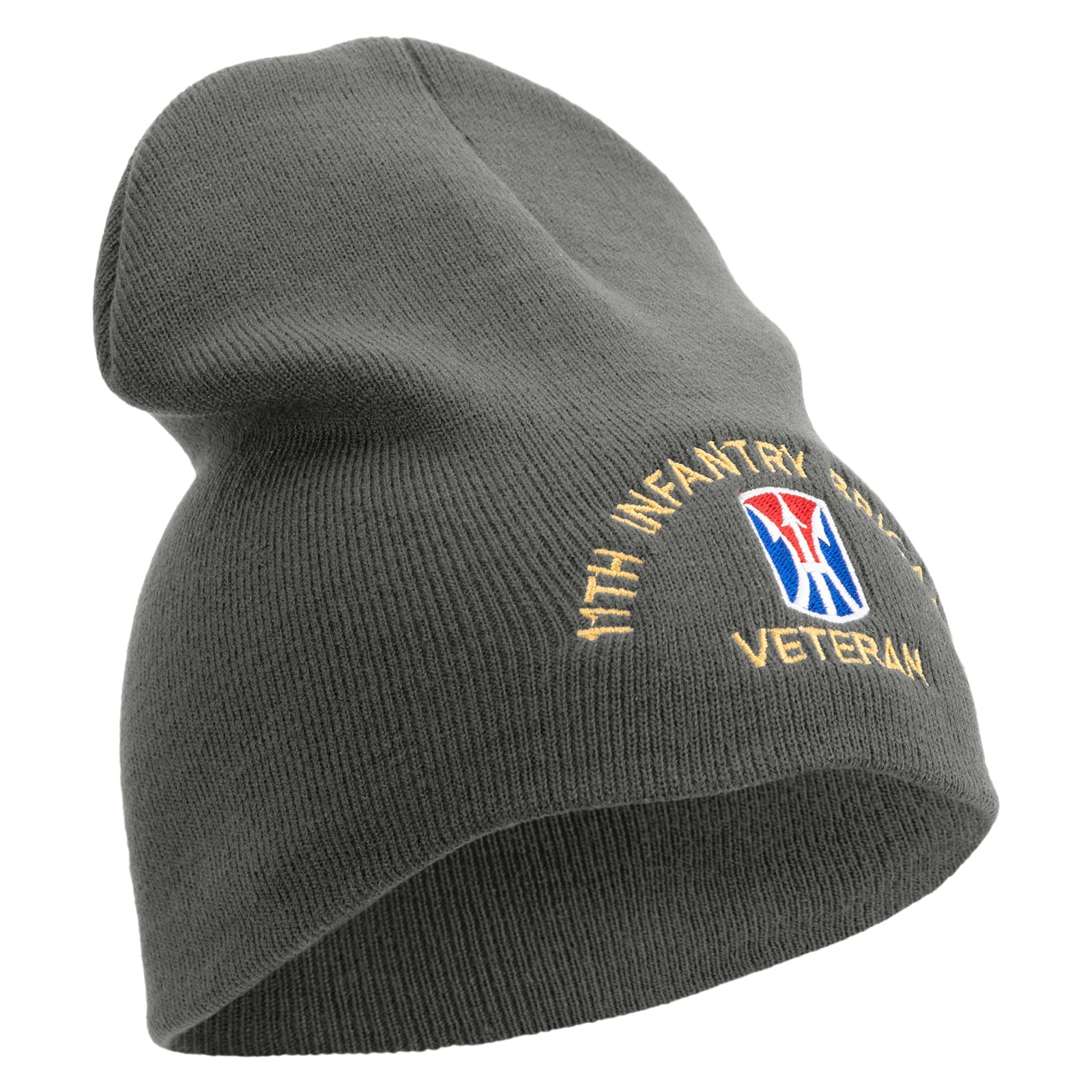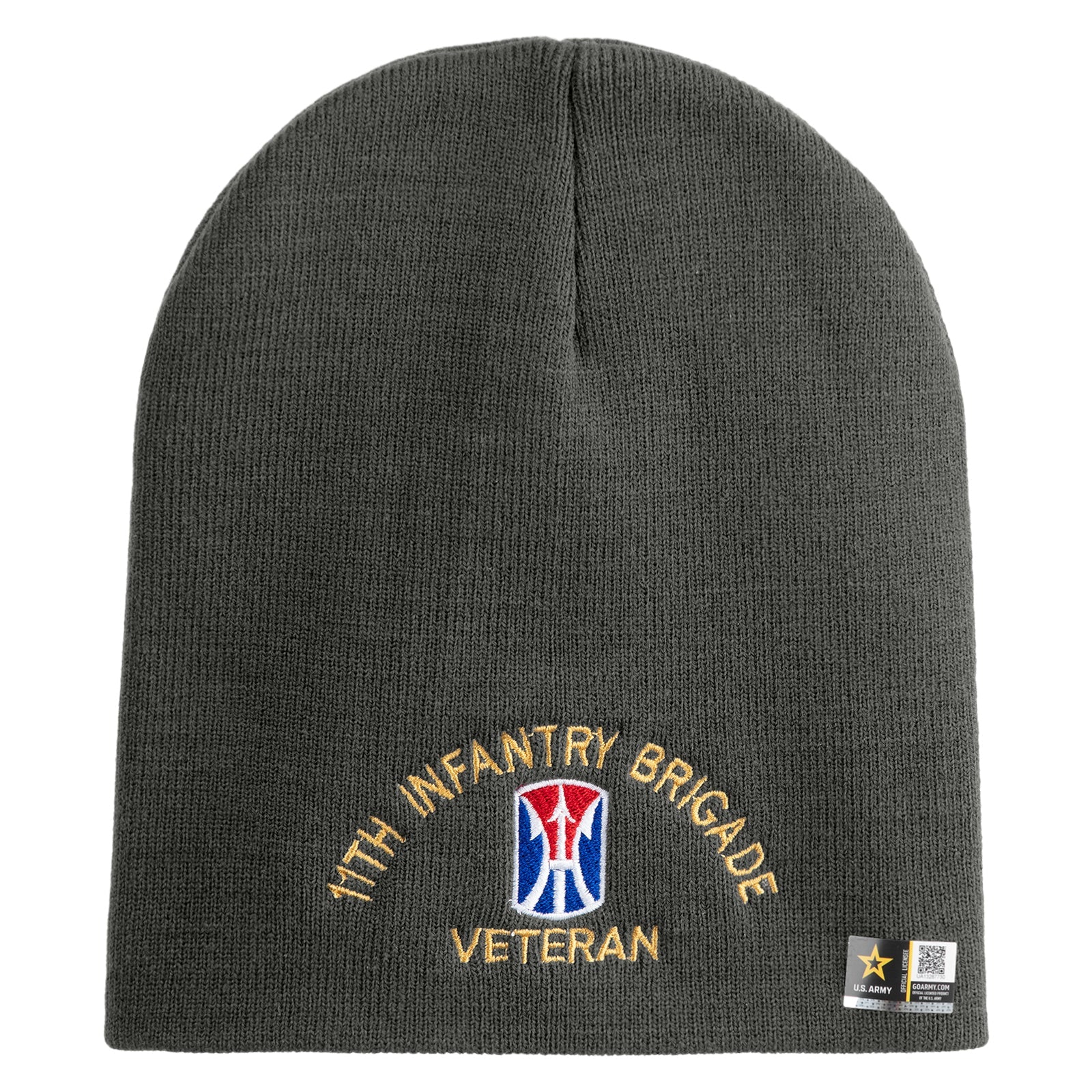 Title, U.S. Army 11th Infantry Brigade Symbol Embroidered 8 Inch Solid Knit Short Beanie Made in USA