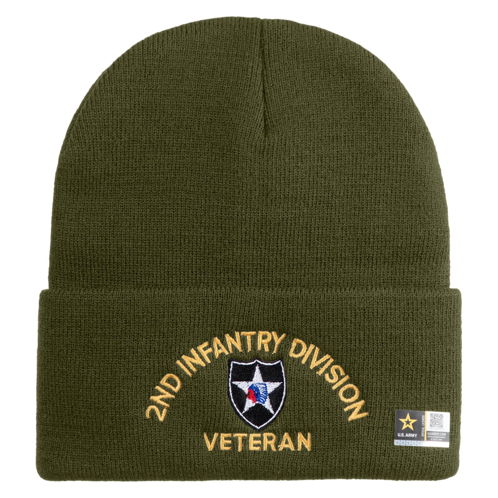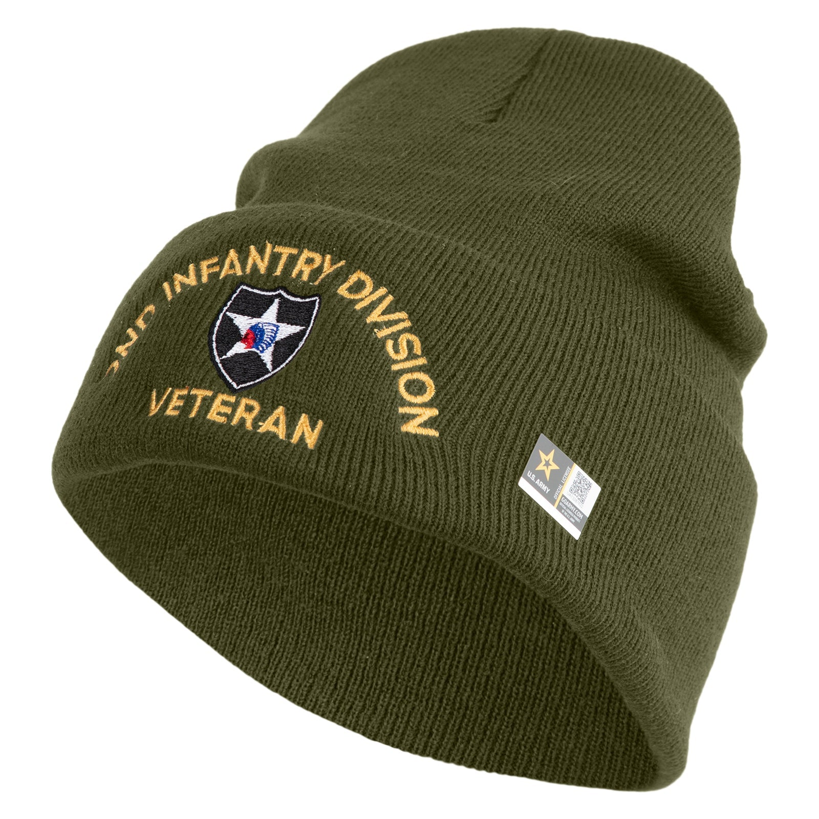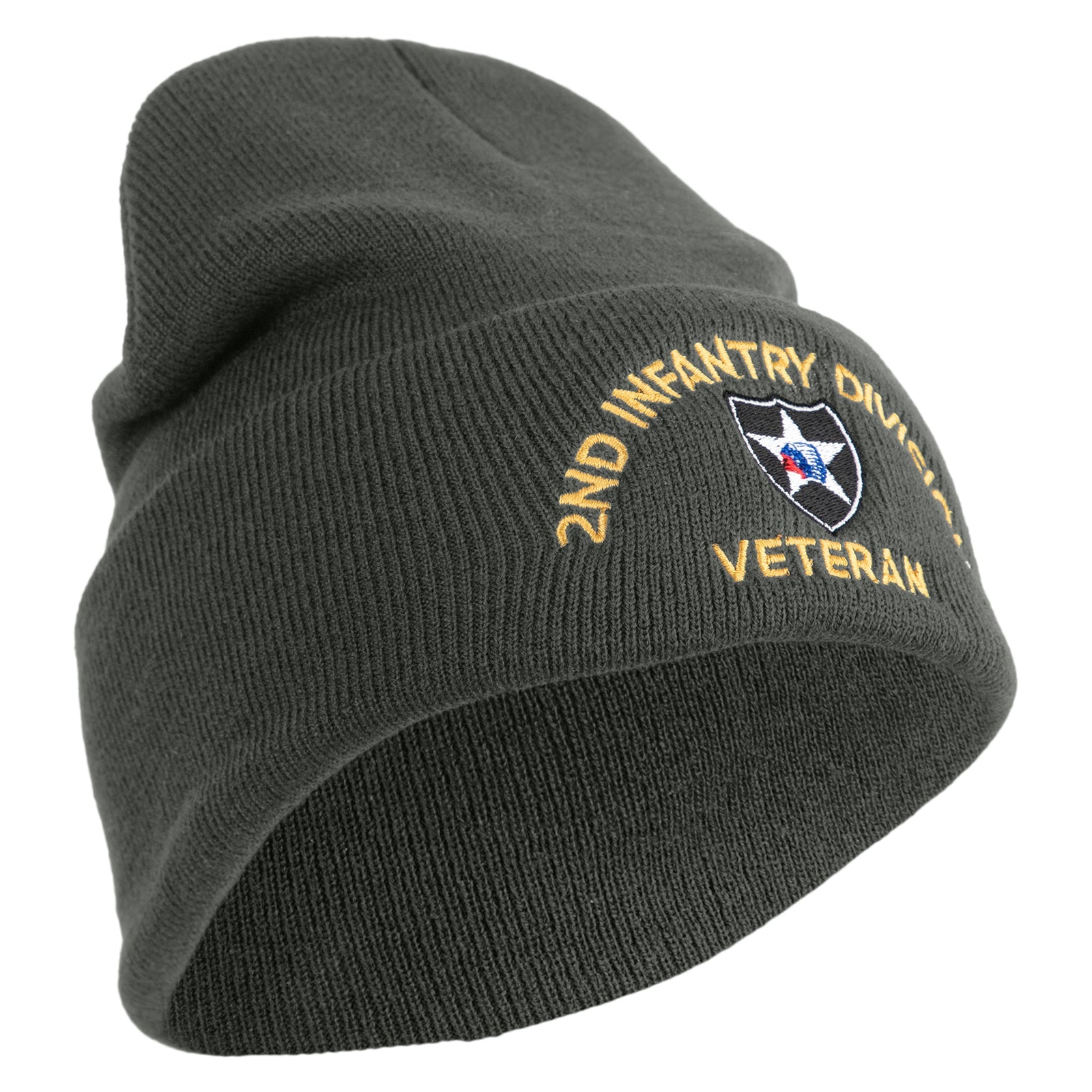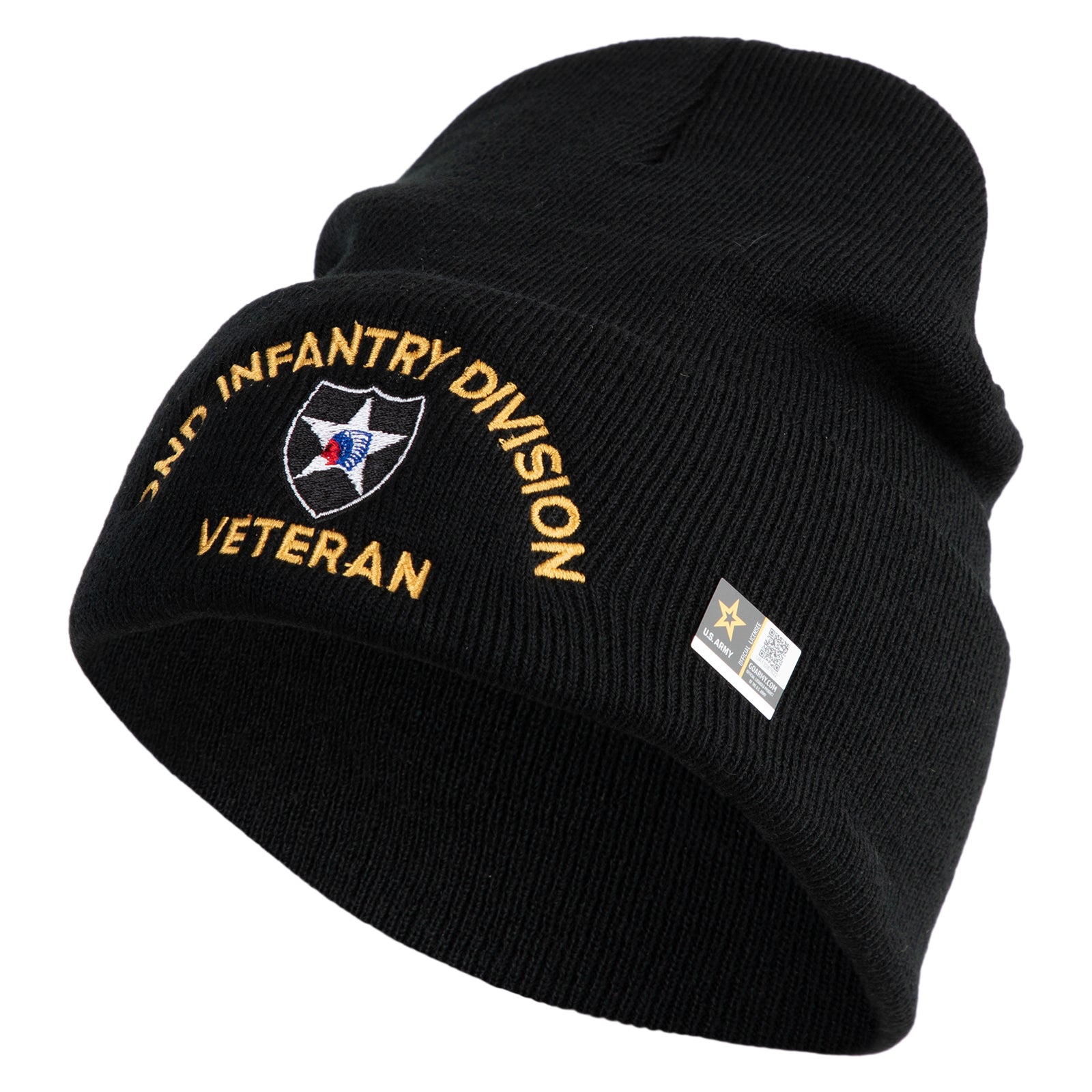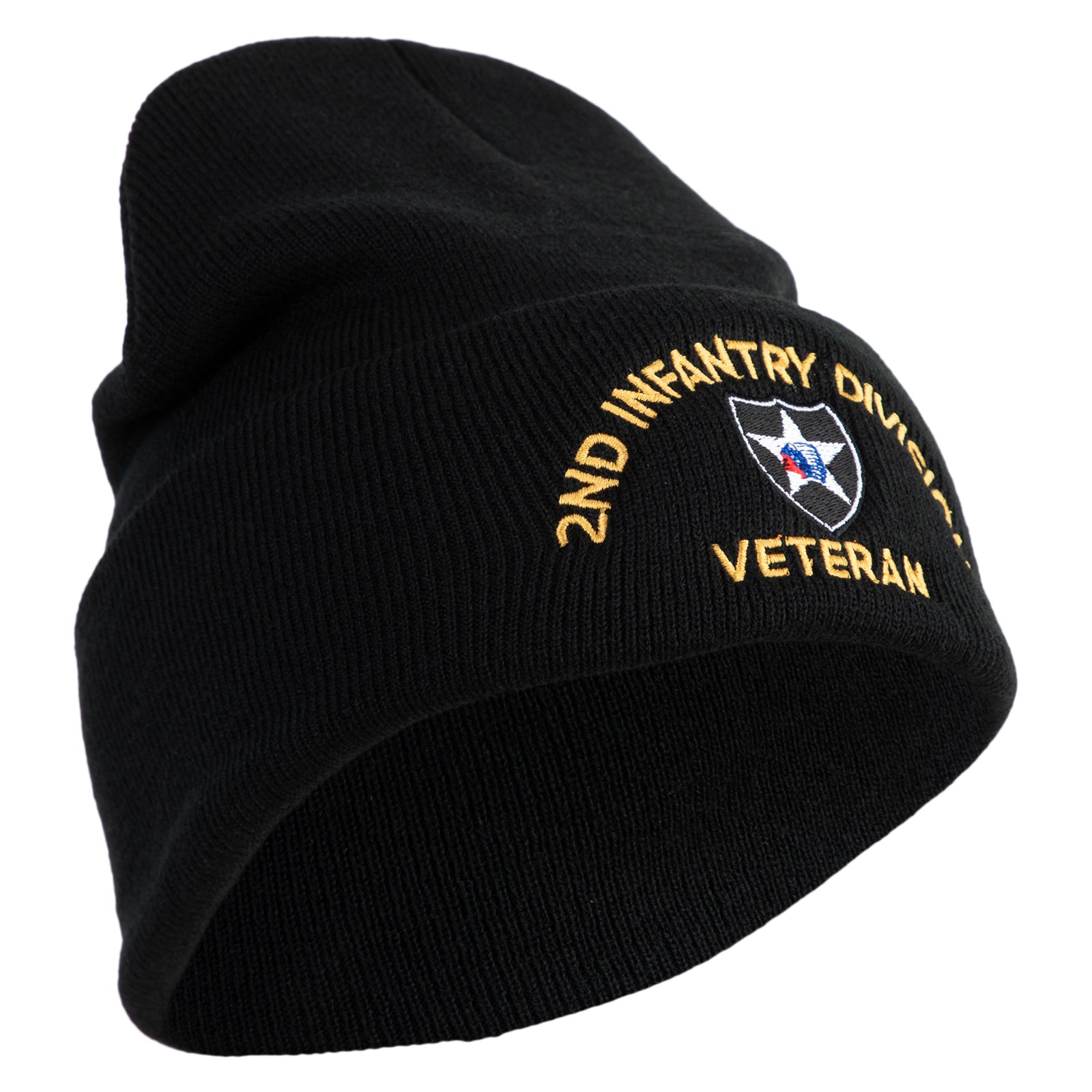 Title, U.S. Army 2nd Infantry Division Logo Embroidered 12 Inch Solid Knit Cuff Long Beanie Made in USA