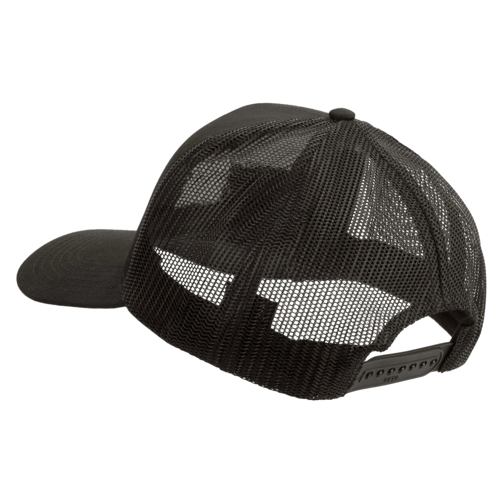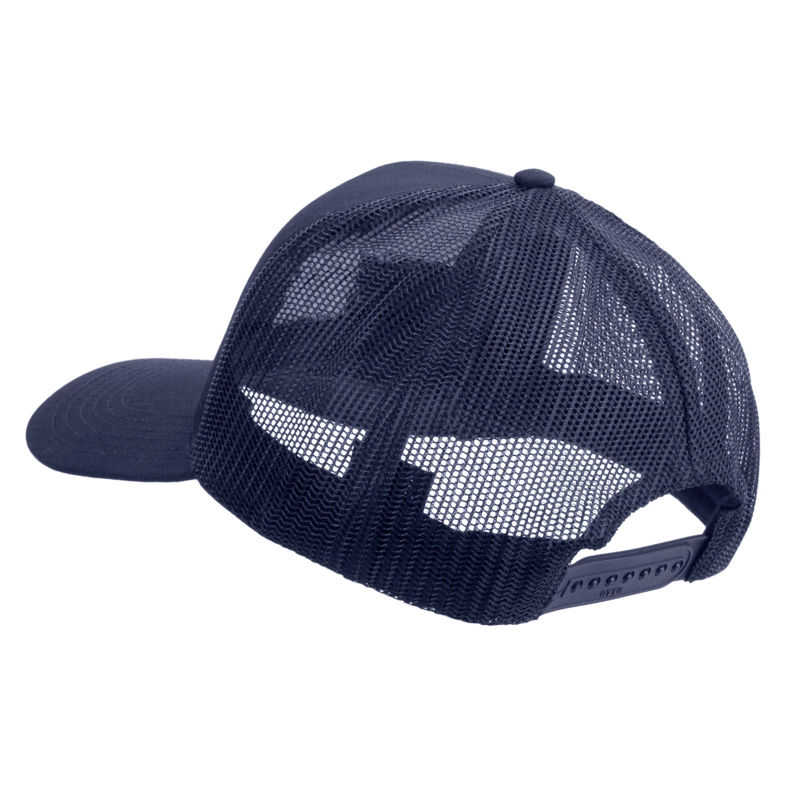Structured Mesh Design, Structured cap with 6 panels including 4 mesh back ones, plastic snap closure, and 4 inches deep crown
