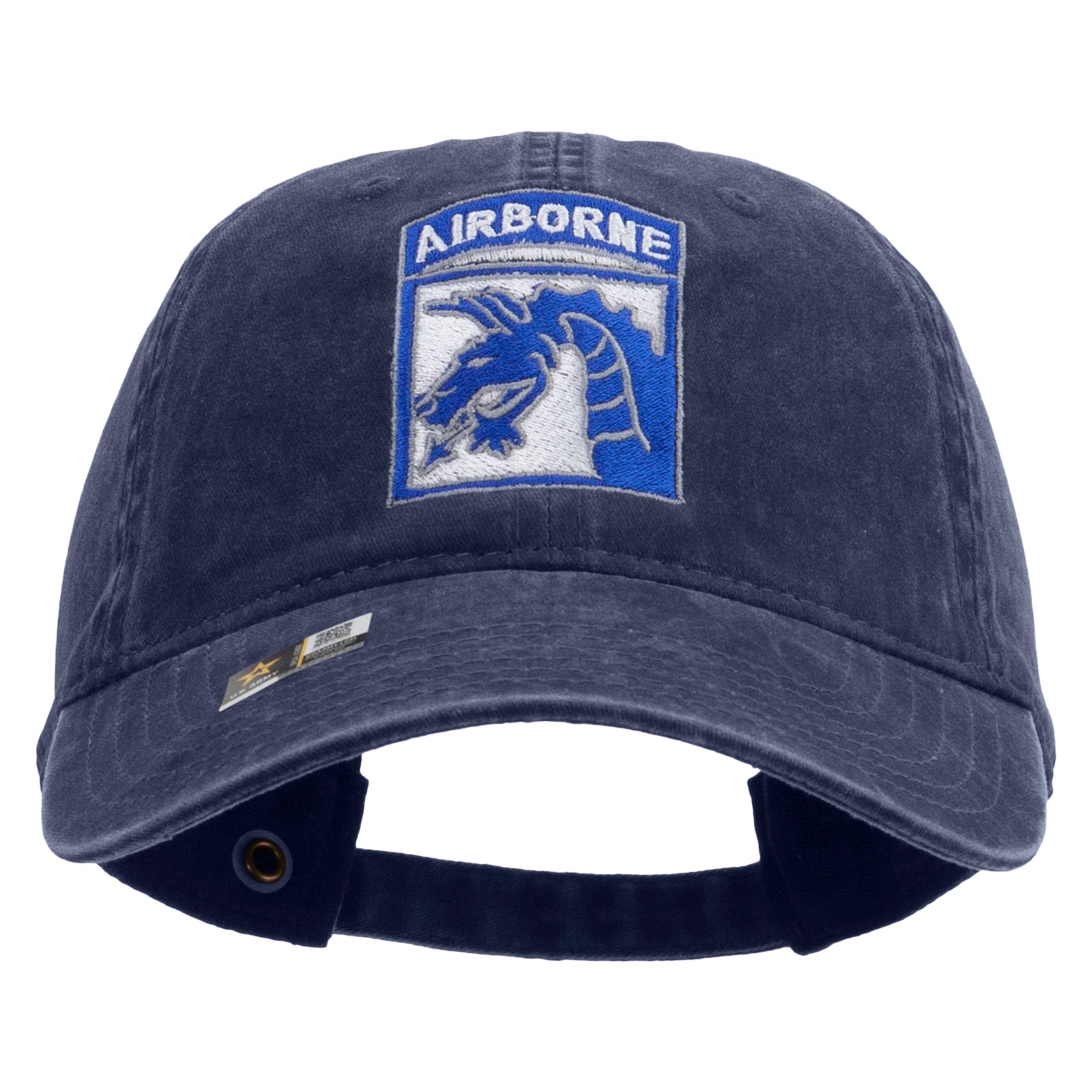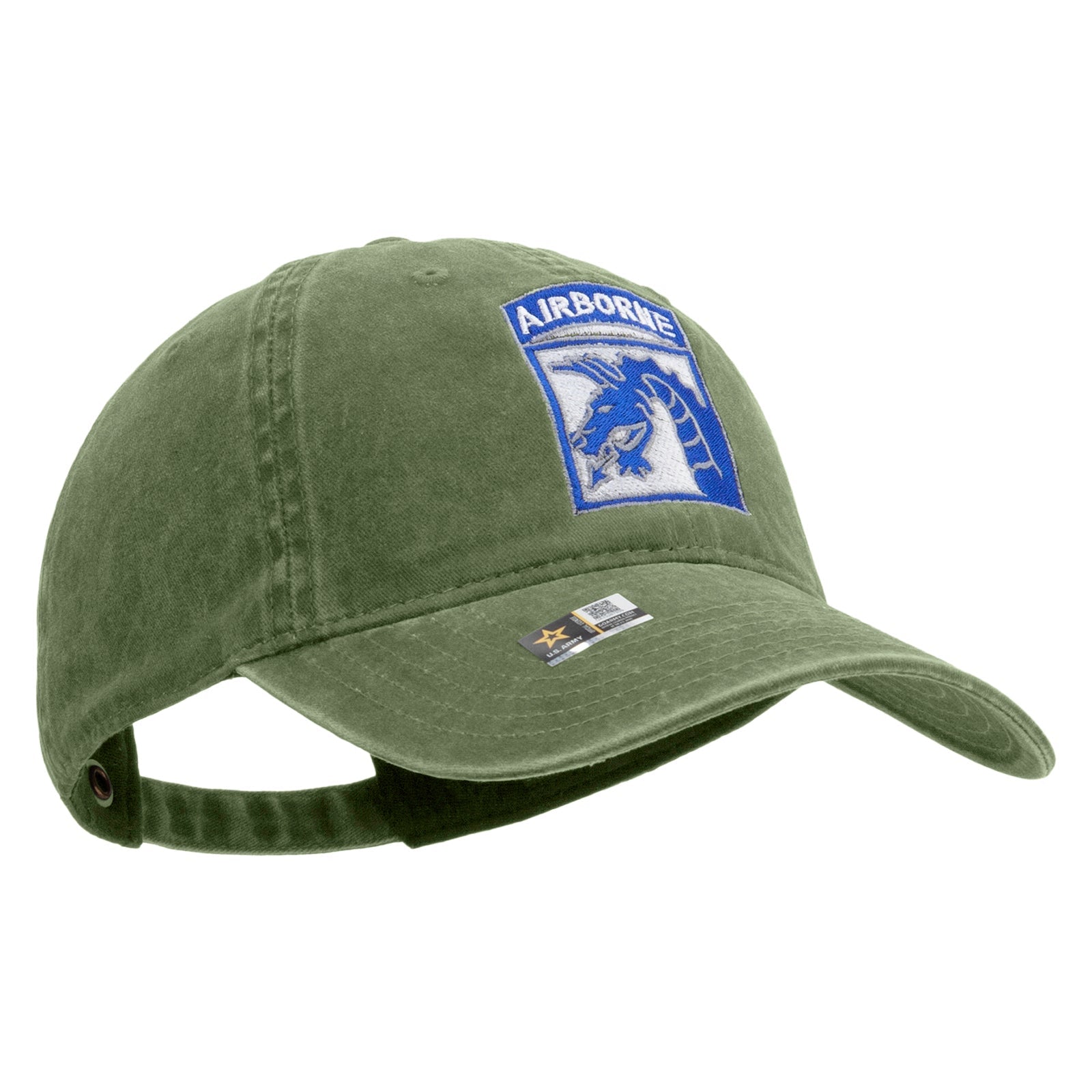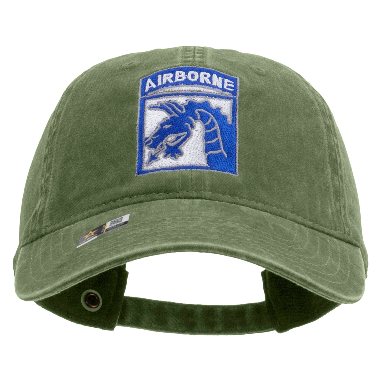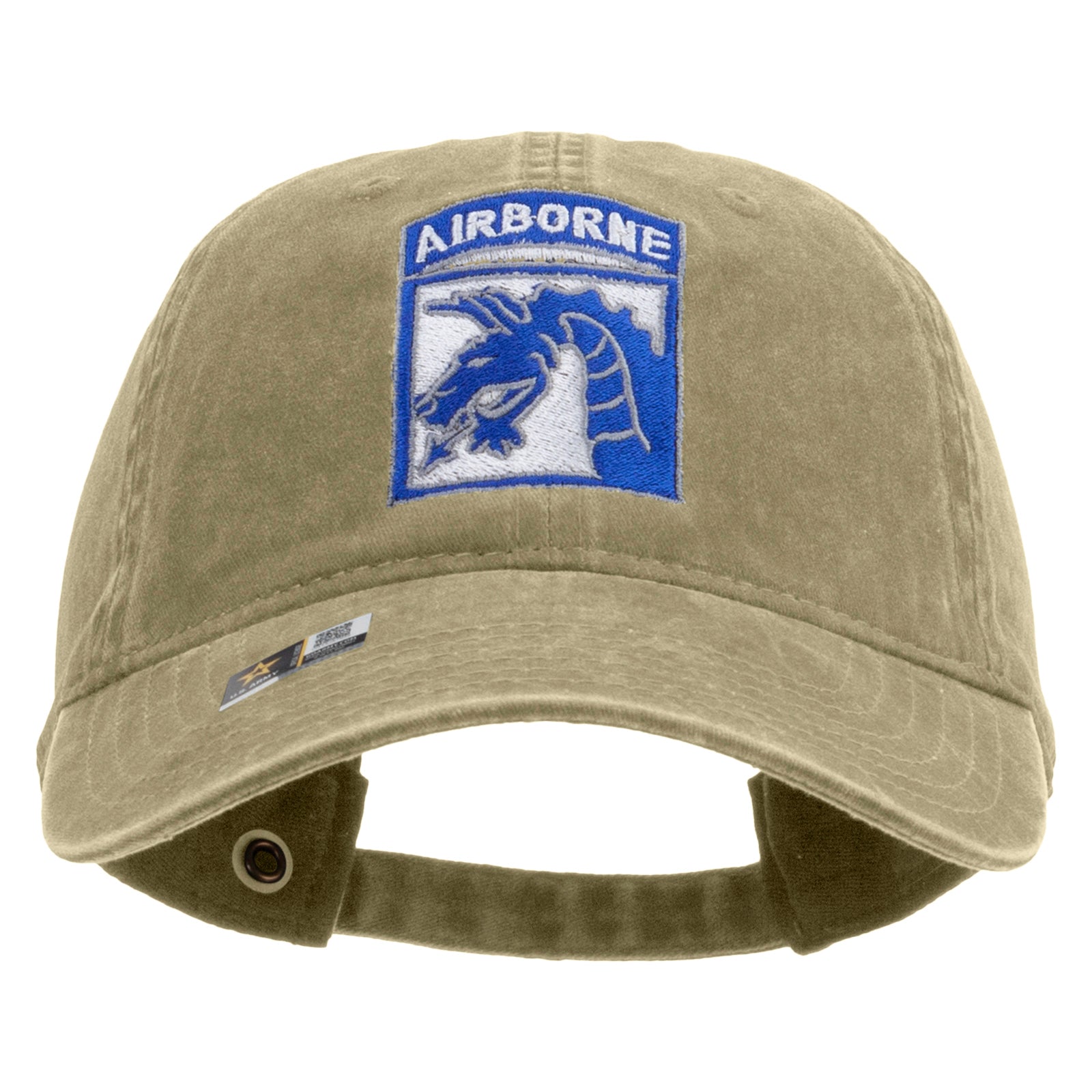 Title, Licensed 18th Airborne Corps Embroidered Washed Solid Pigment Dyed Cotton Twill Brass Buckle Cap