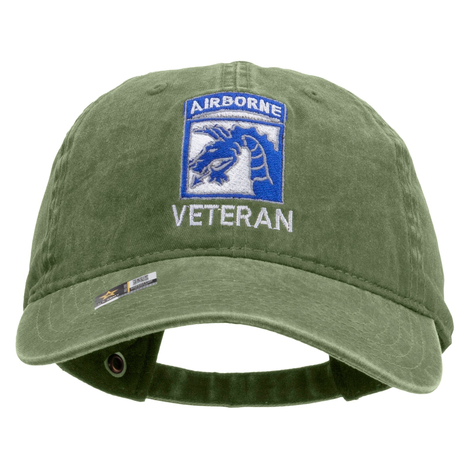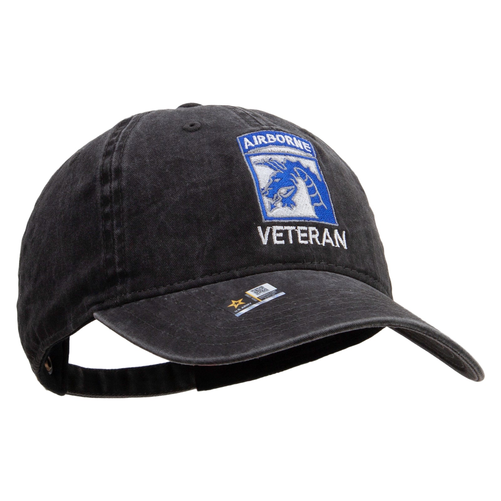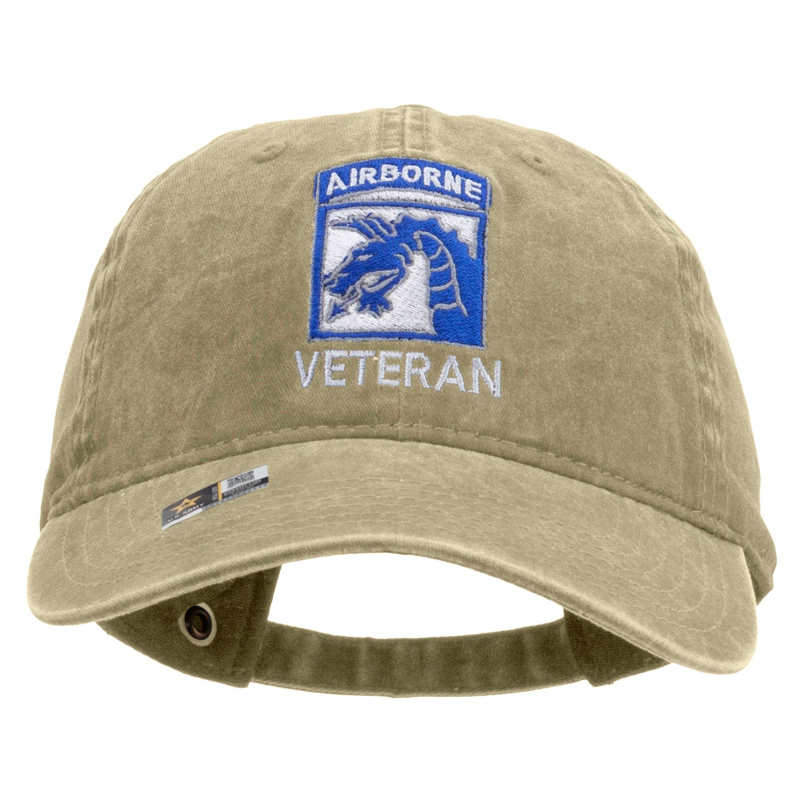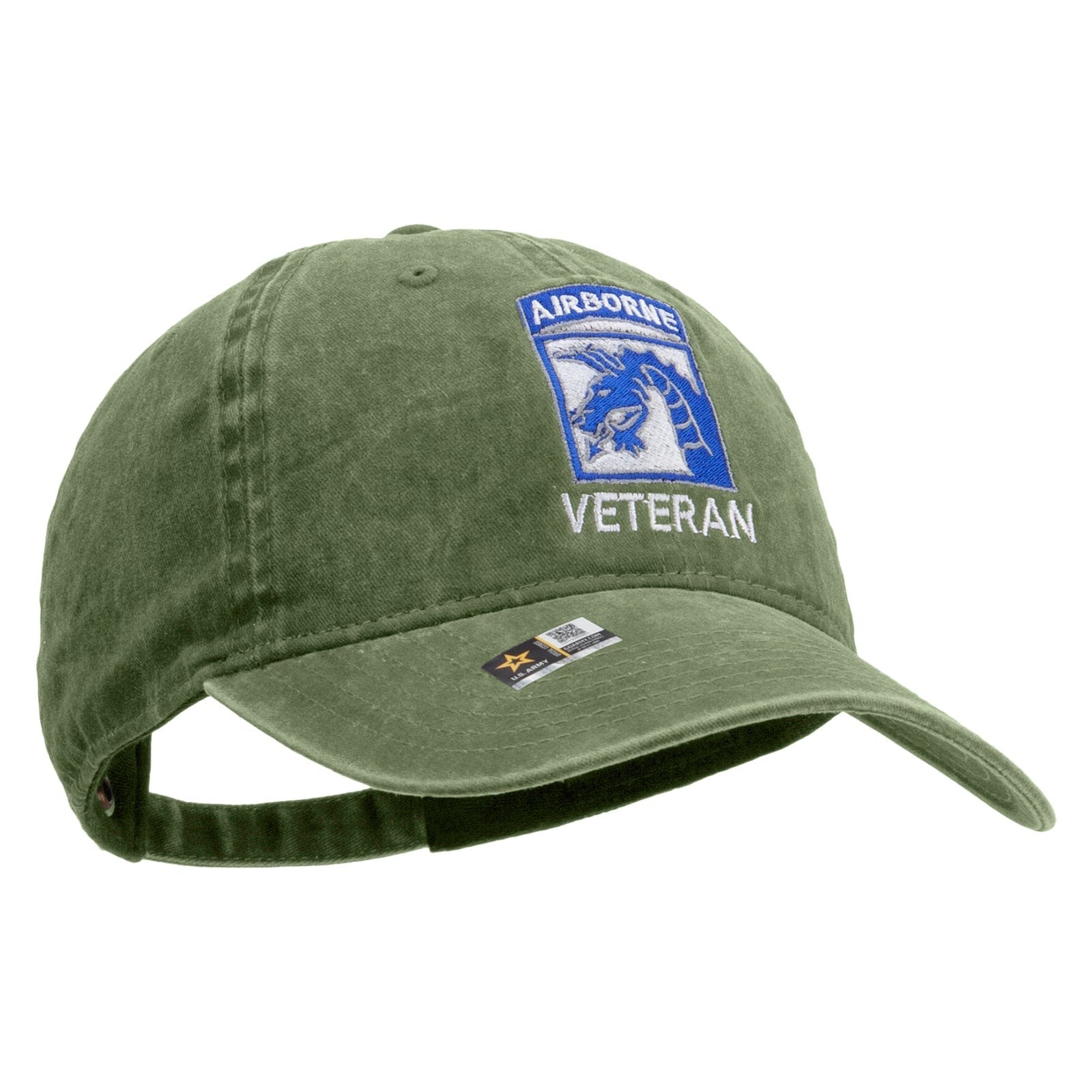 Title, Licensed 18th Airborne Corps Veteran Embroidered Washed Solid Pigment Dyed Cotton Twill Brass Buckle Cap