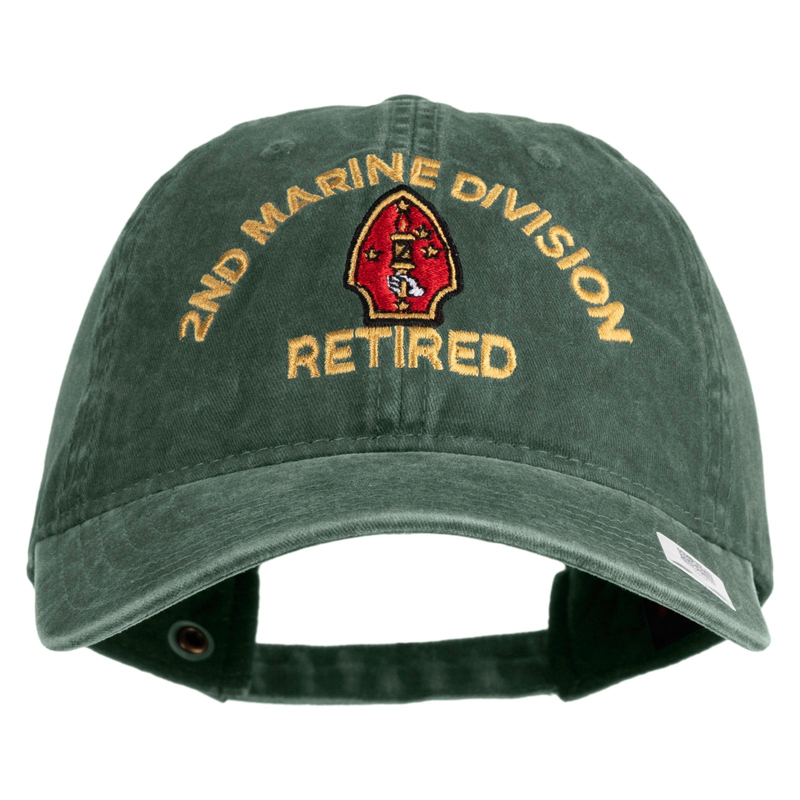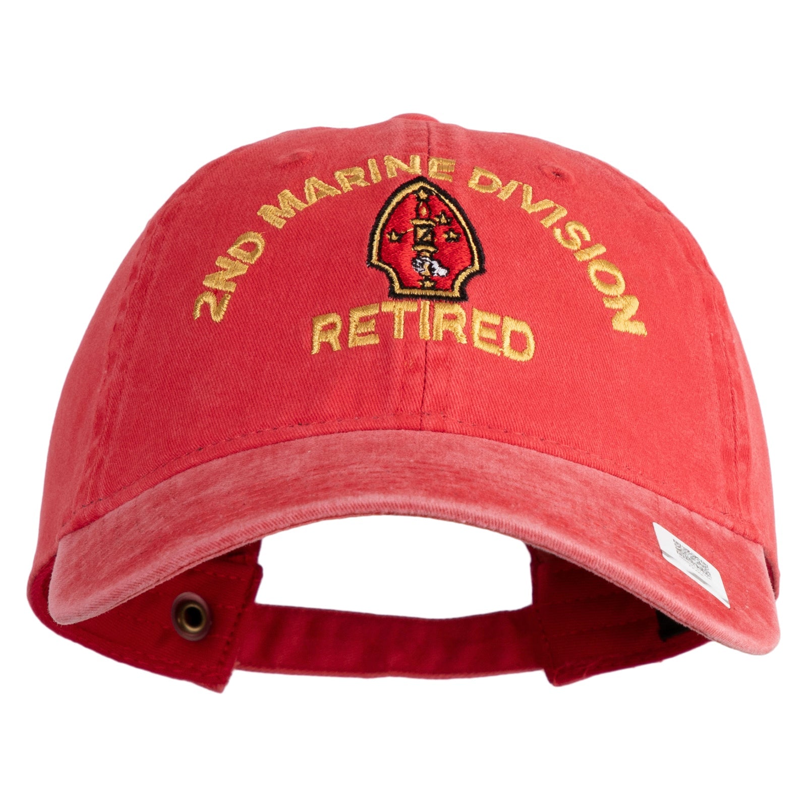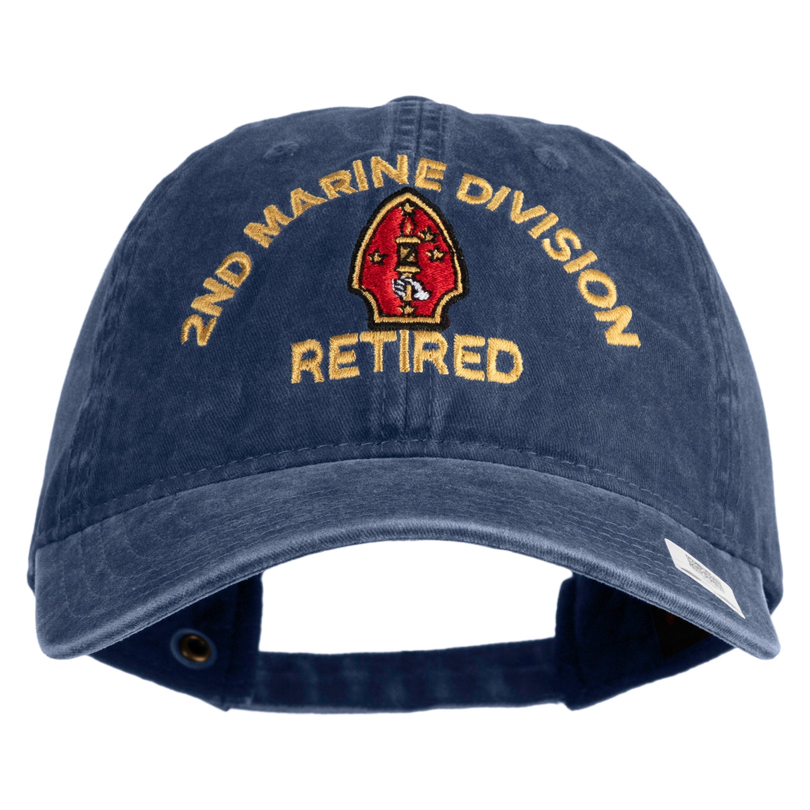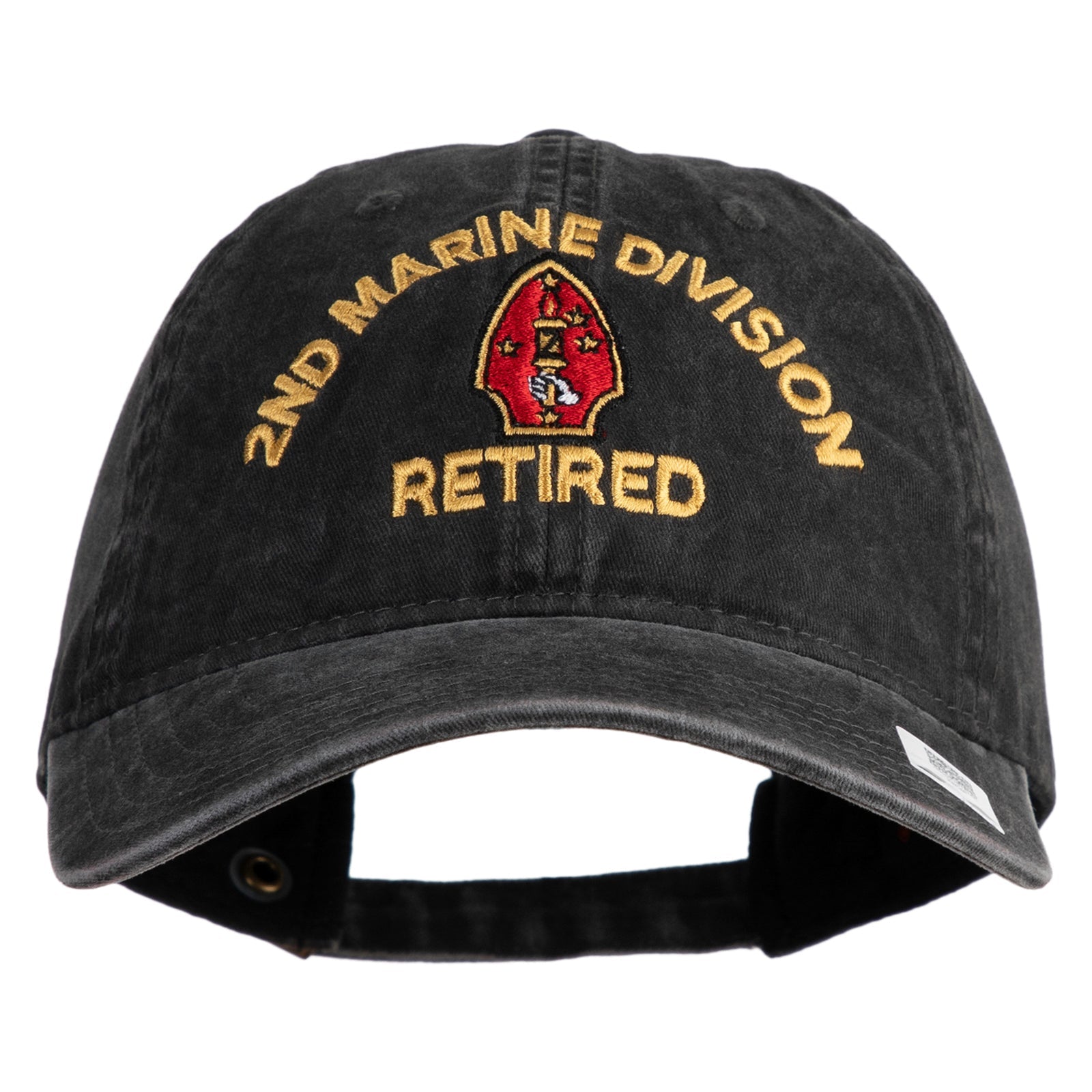 Title, 2nd Marine Division Retired Embroidered Washed Solid Pigment Dyed Cotton Twill Brass Buckle Cap