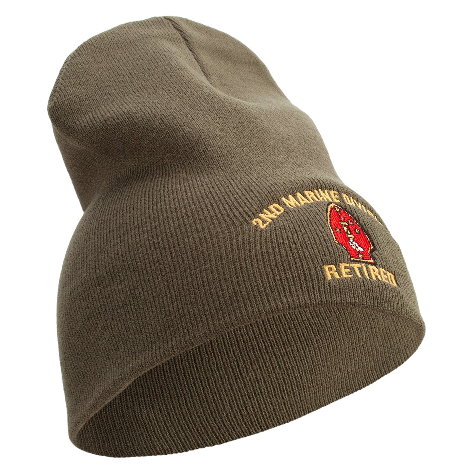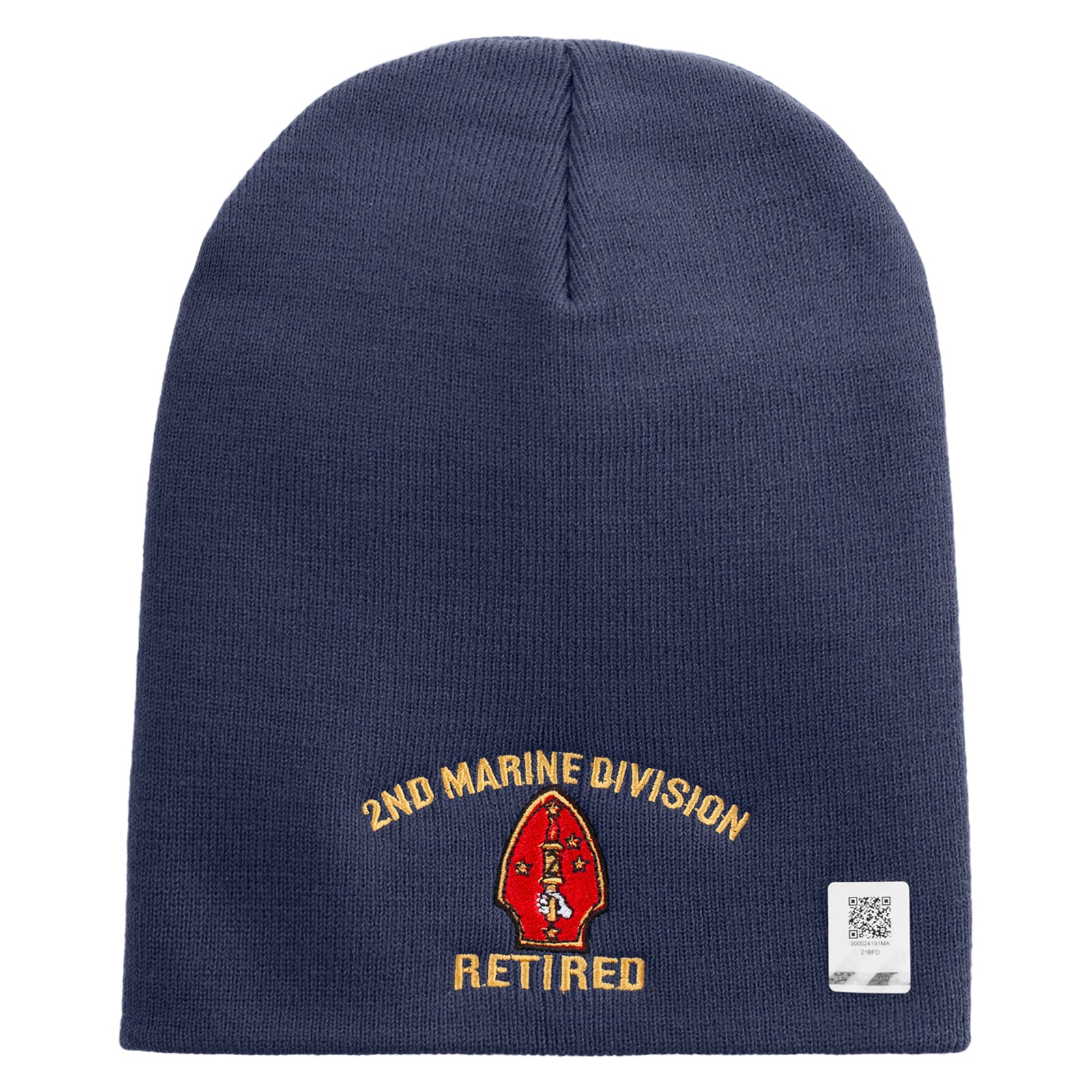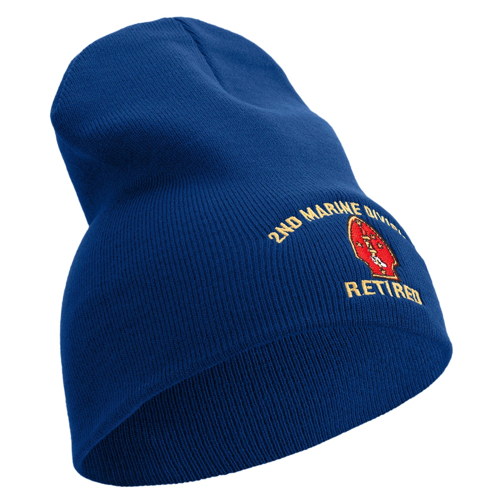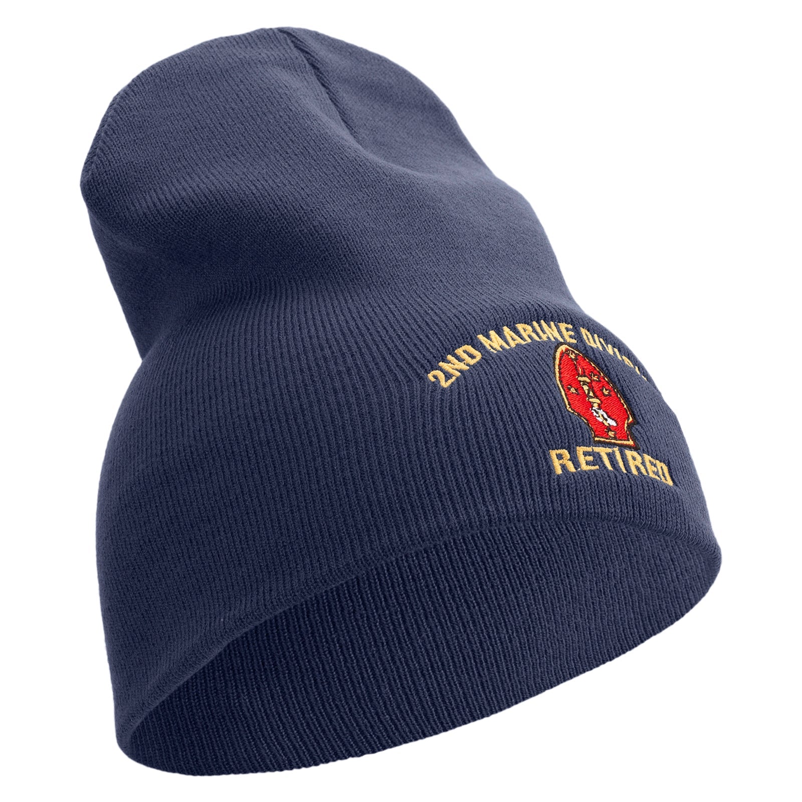 Title, 2nd Marine Division Retired Symbol Embroidered 8 Inch Solid Knit Short Beanie Made in USA