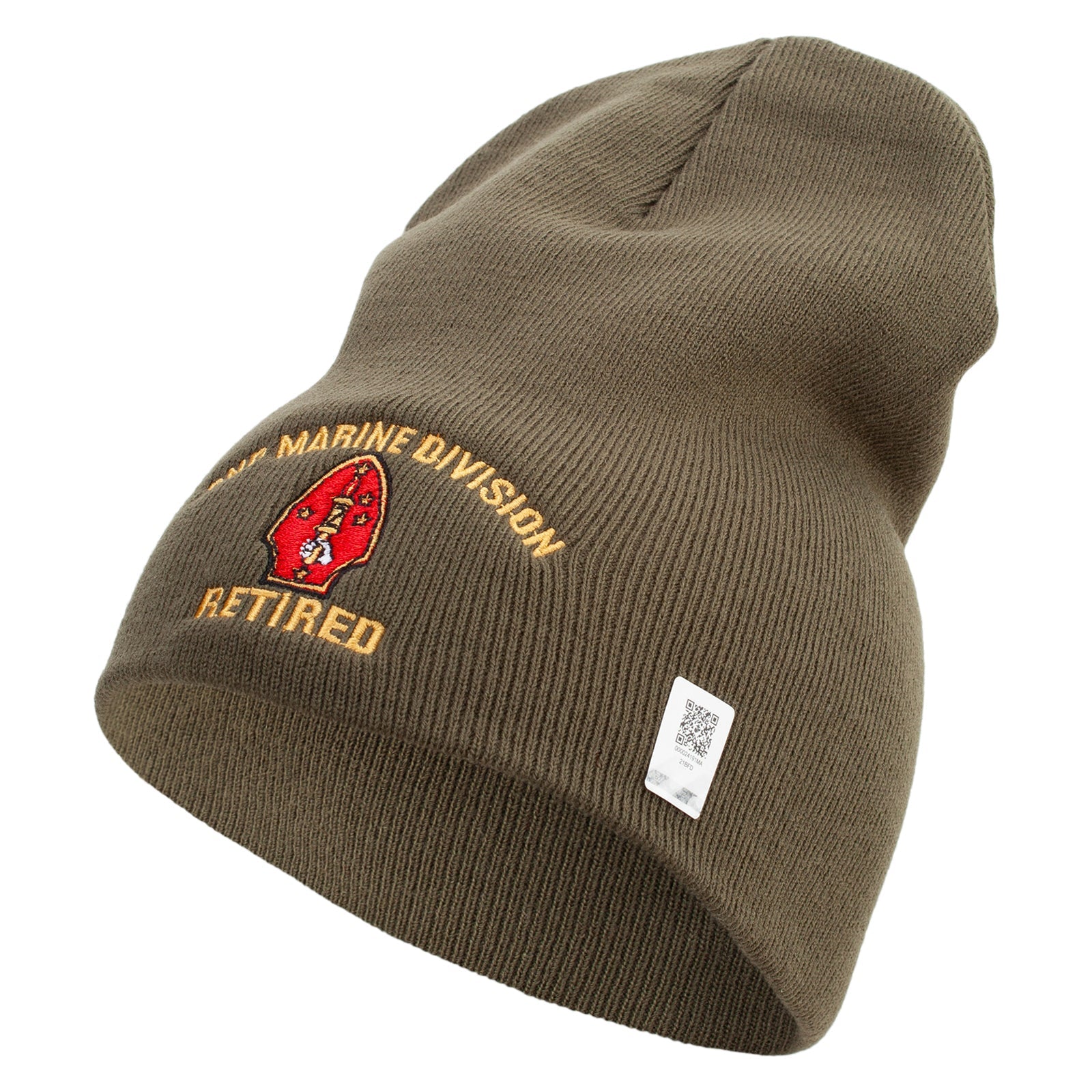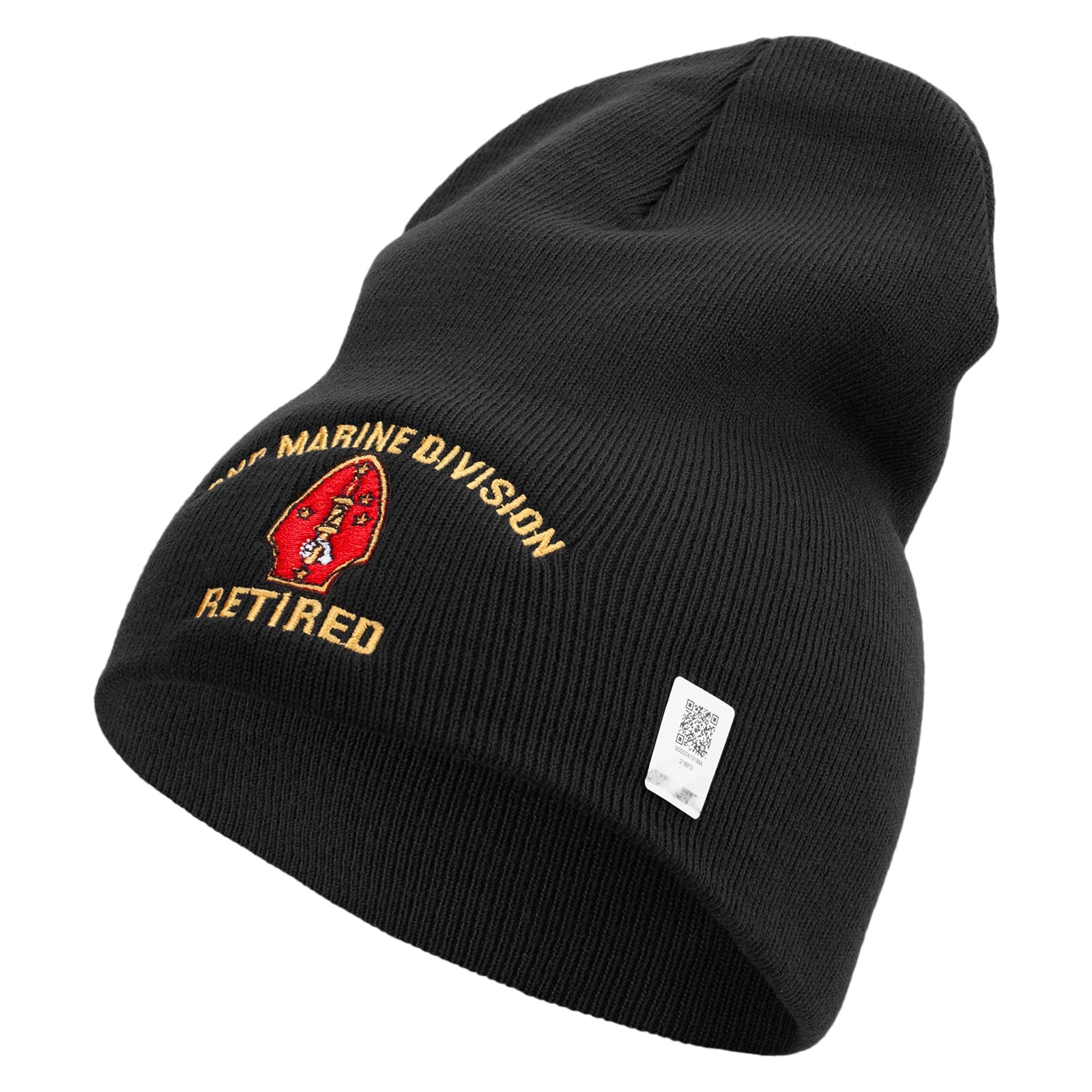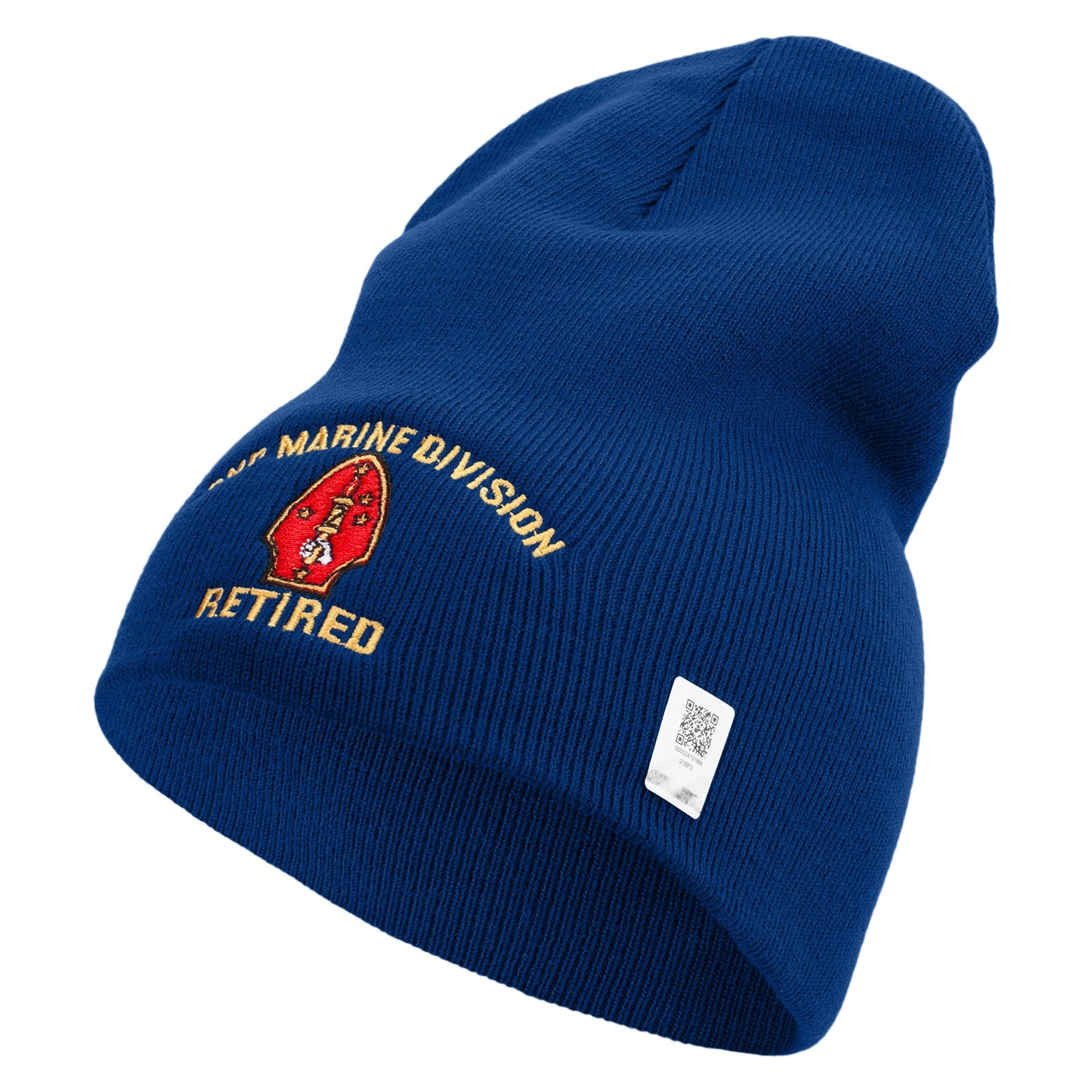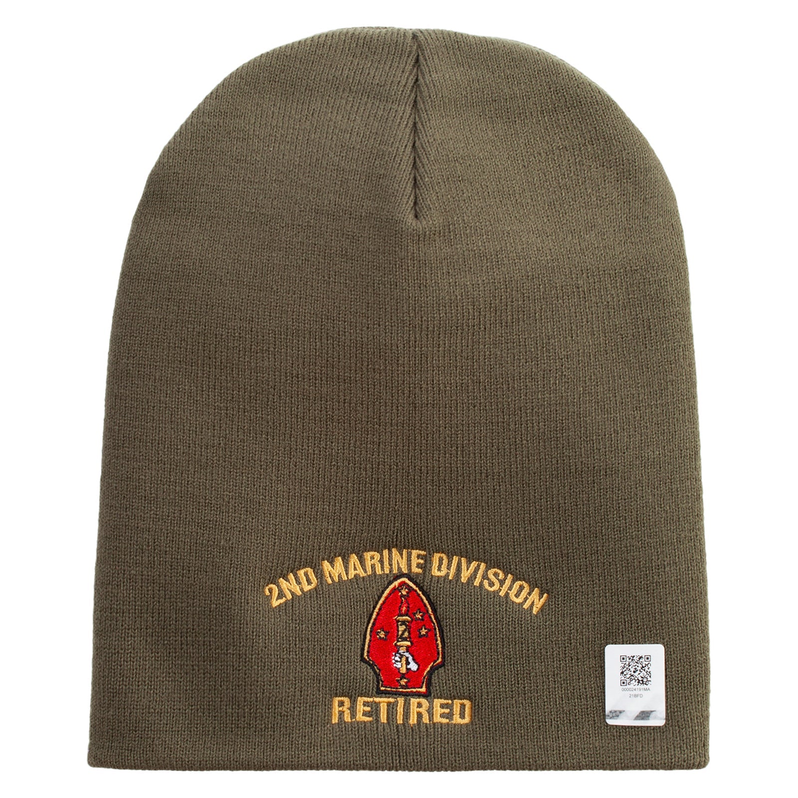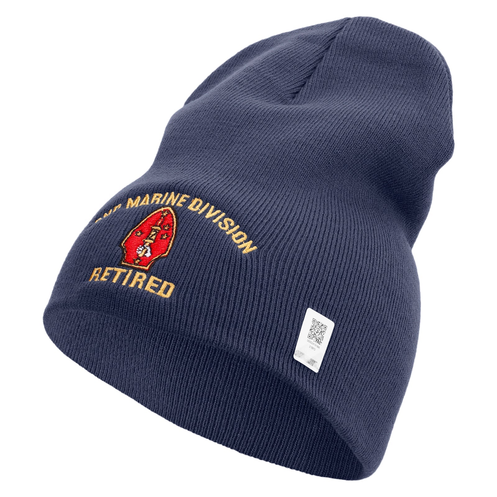 Title, 2nd Marine Division Retired Symbol Embroidered 8 Inch Solid Knit Short Beanie Made in USA