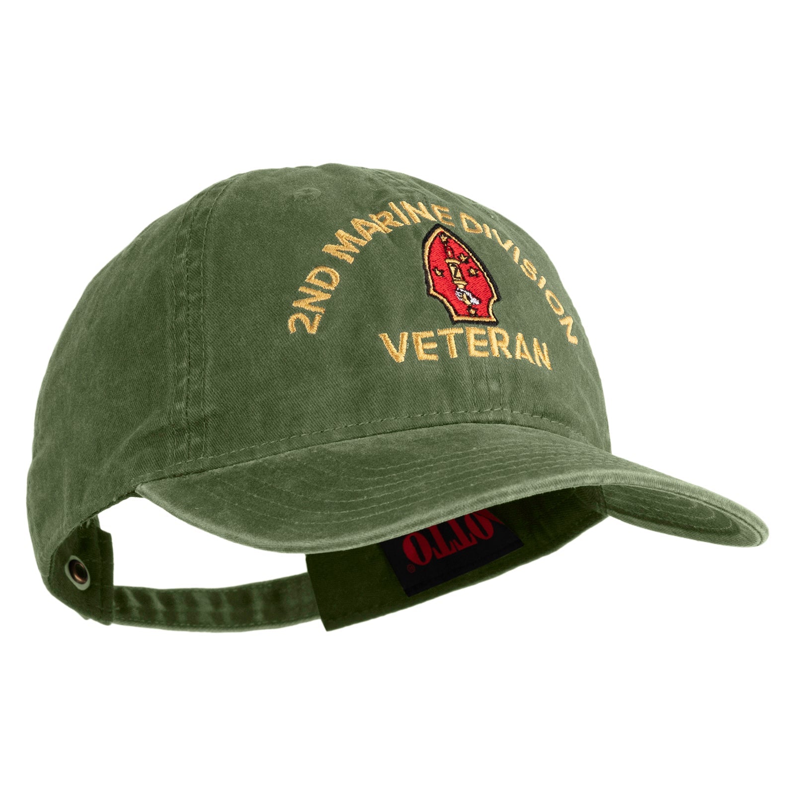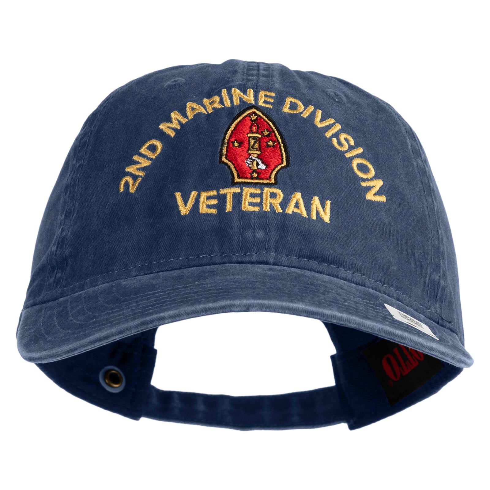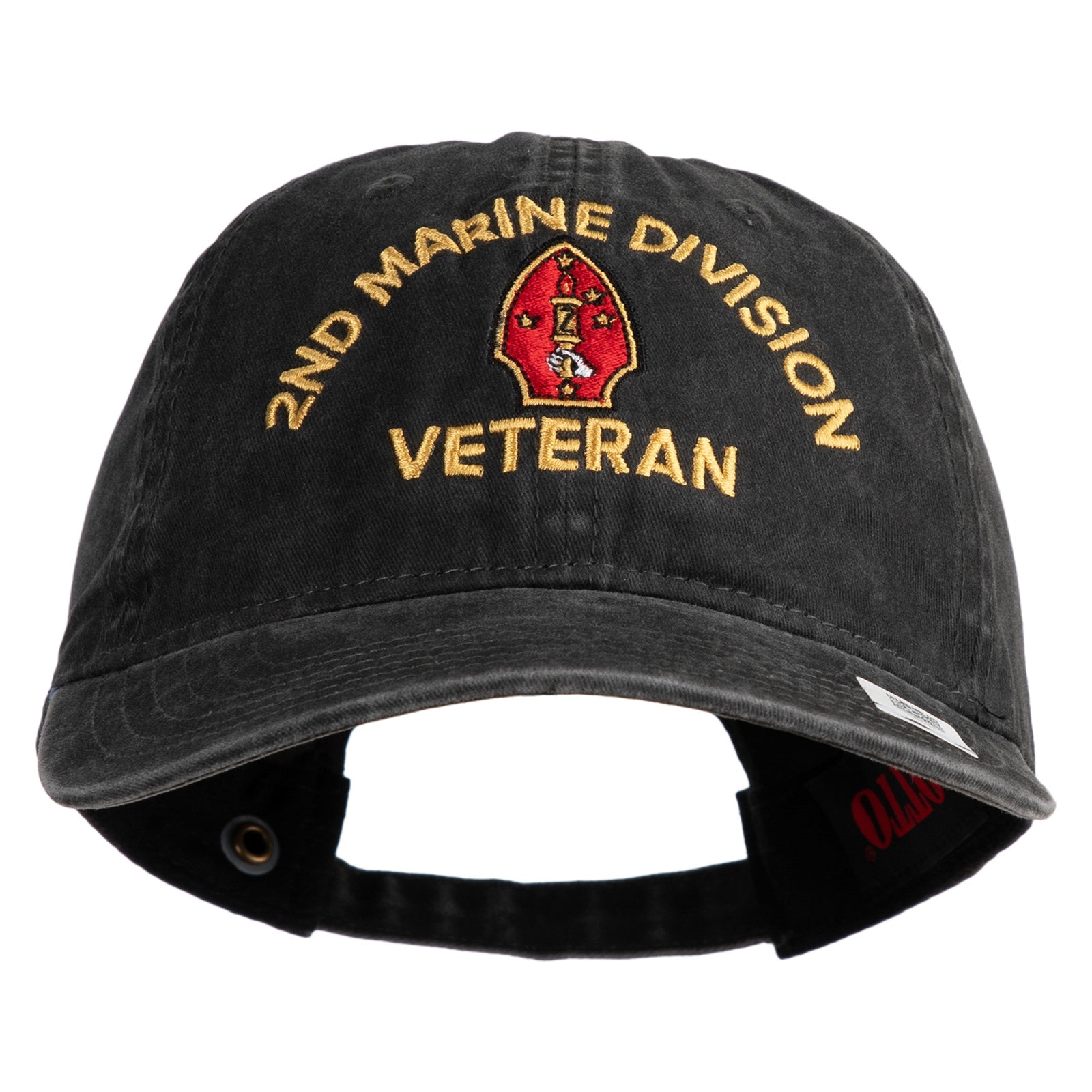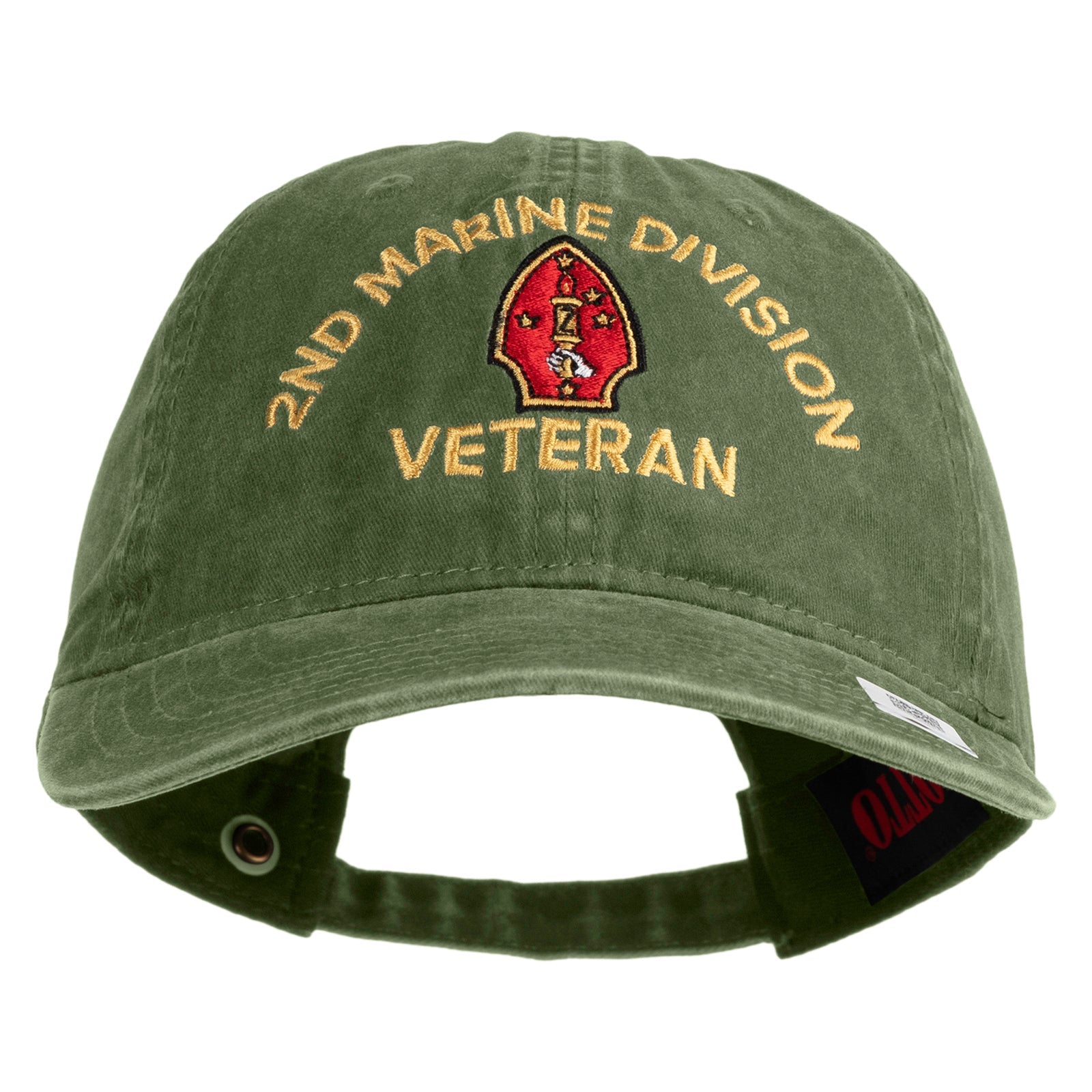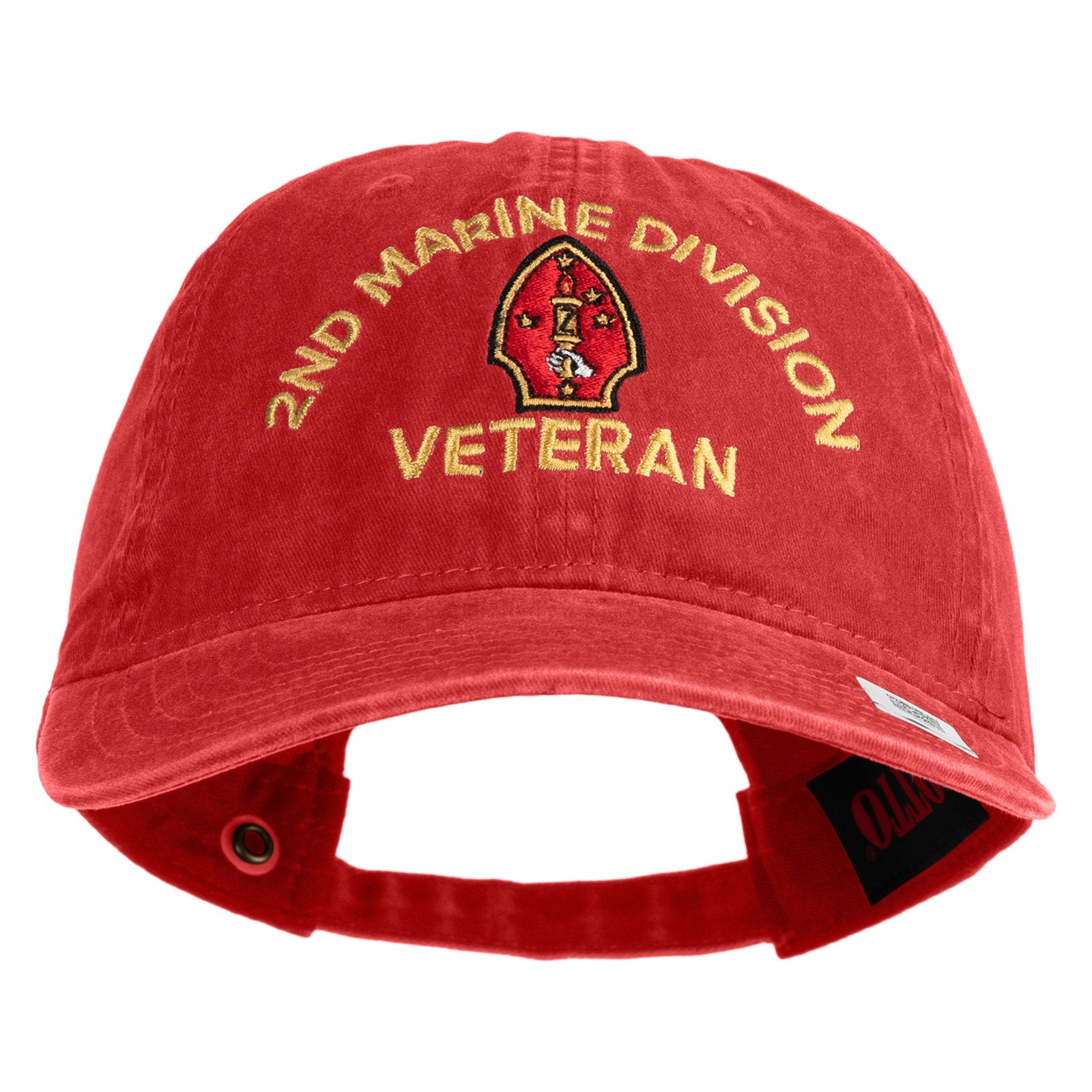 2nd Marine Division Veteran Embroidered Washed Solid Pigment Dyed Cotton Twill Brass Buckle Cap