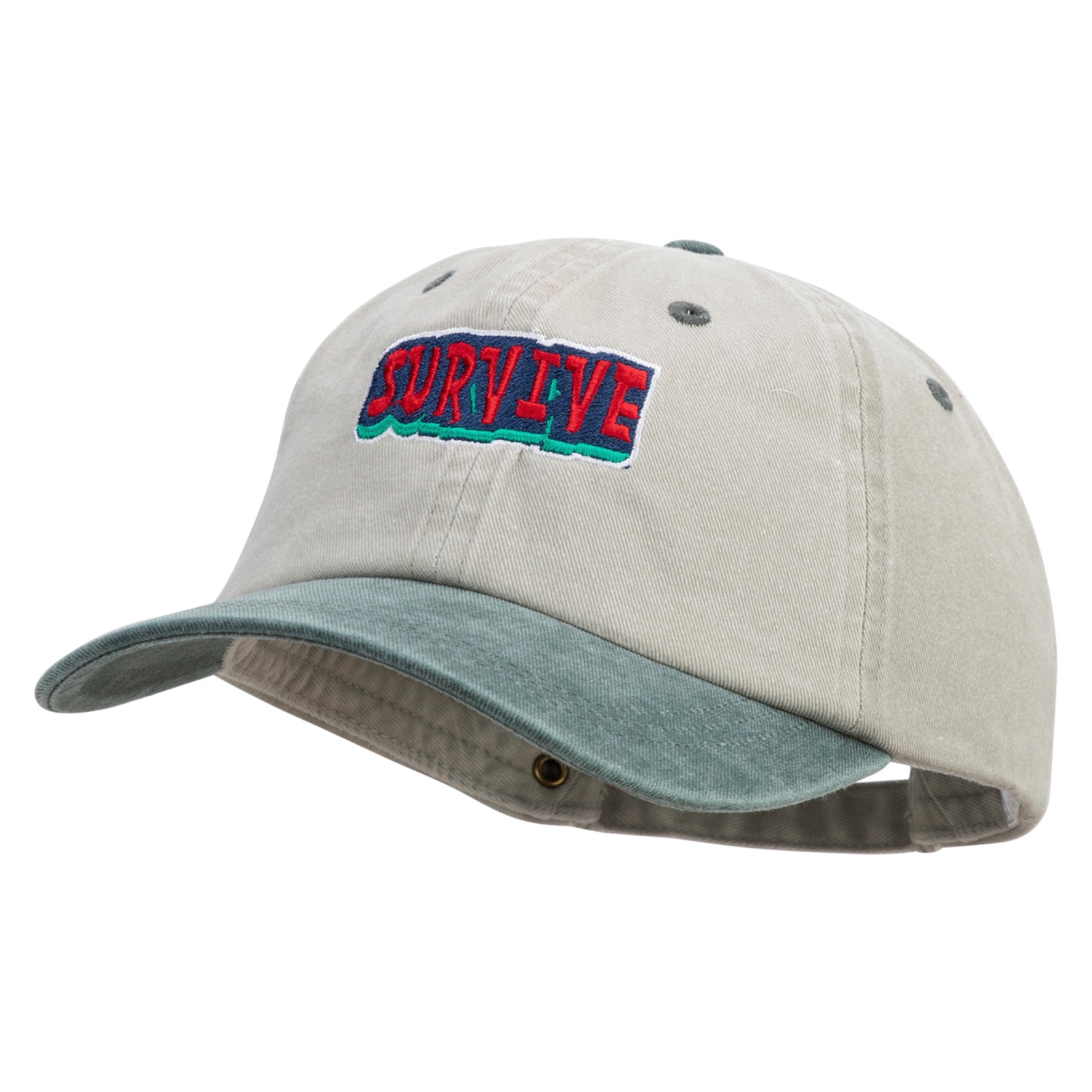 Title, 3D Survive Text Embroidered Pigment Dyed Wash Cap
