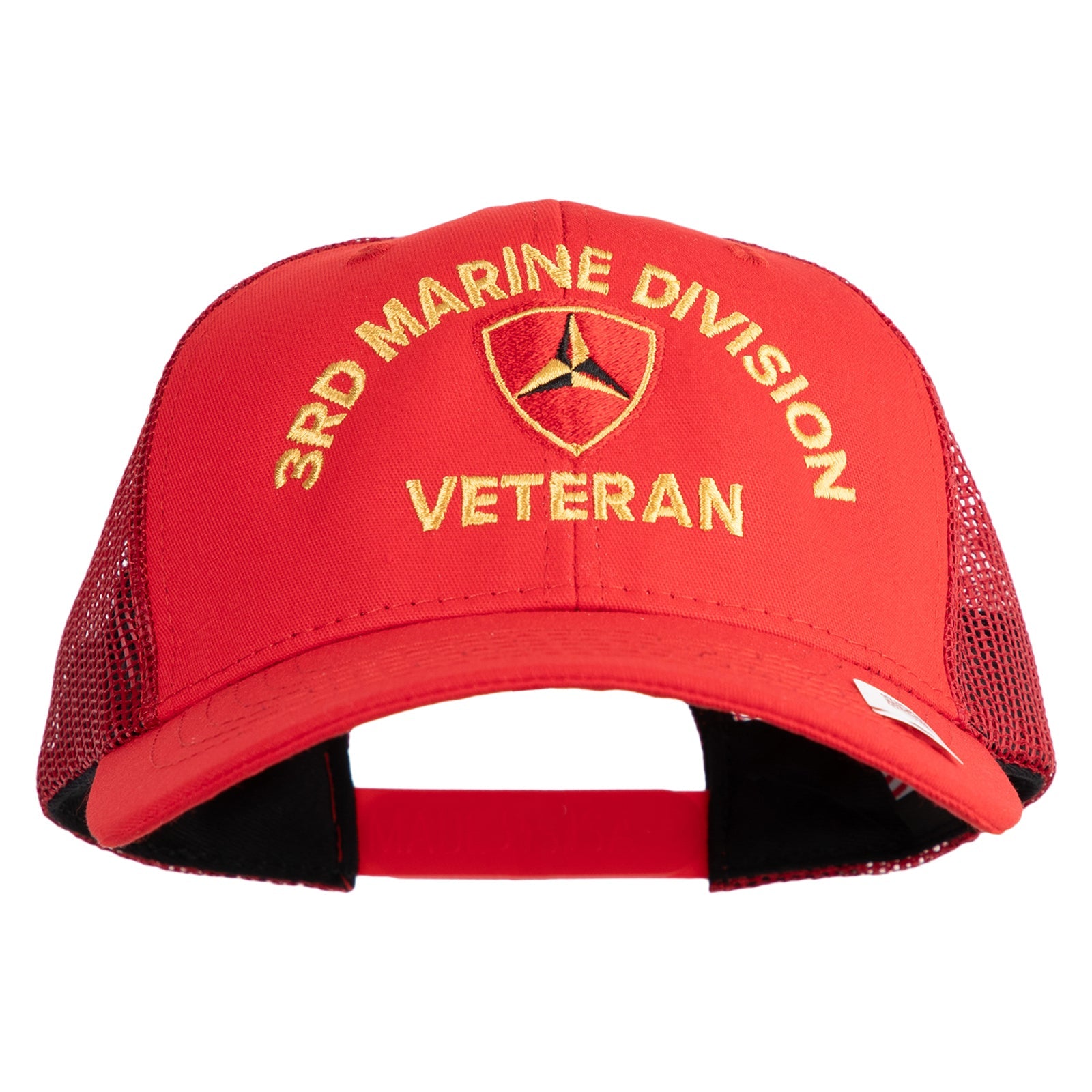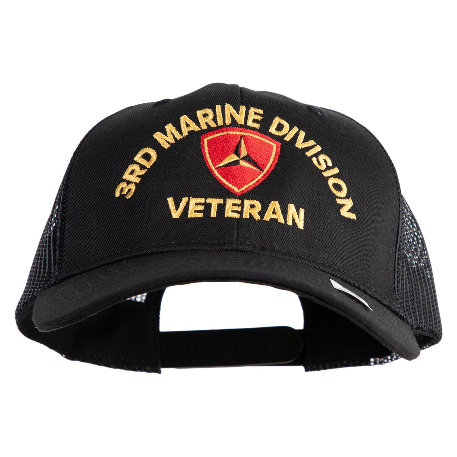 Title, 3rd Marine Division Veteran Embroidered 6 Panel Structured Cotton Twill Mesh Cap Made in USA