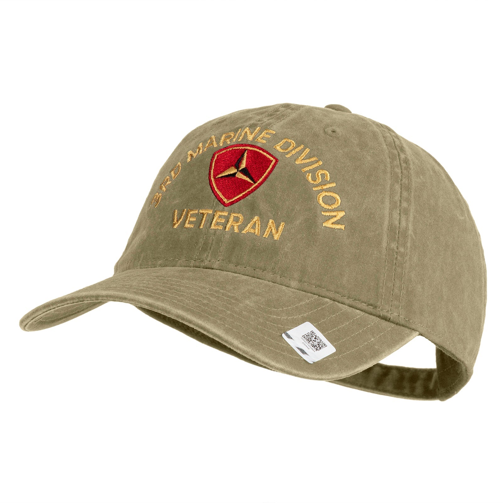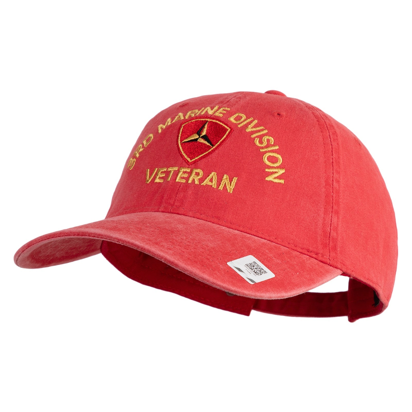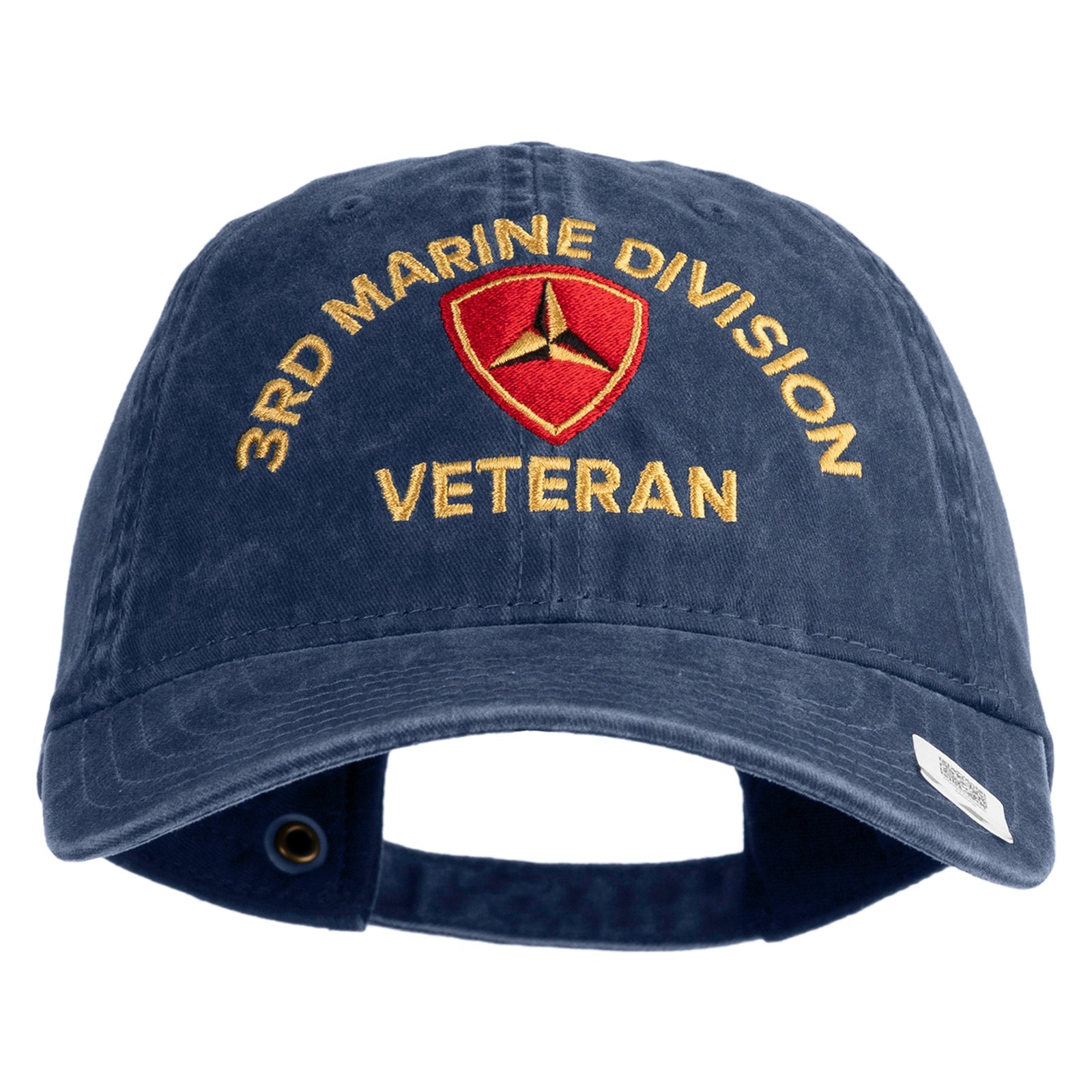 3rd Marine Division Veteran Embroidered Washed Solid Pigment Dyed Cotton Twill Brass Buckle Cap