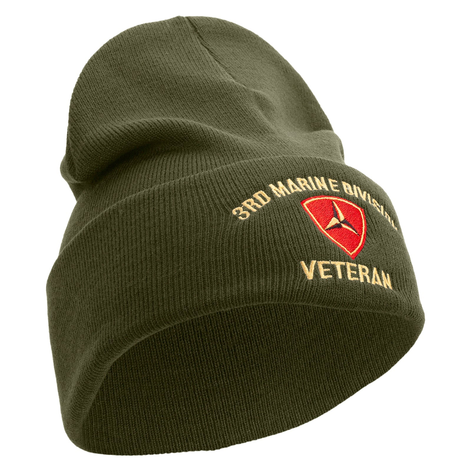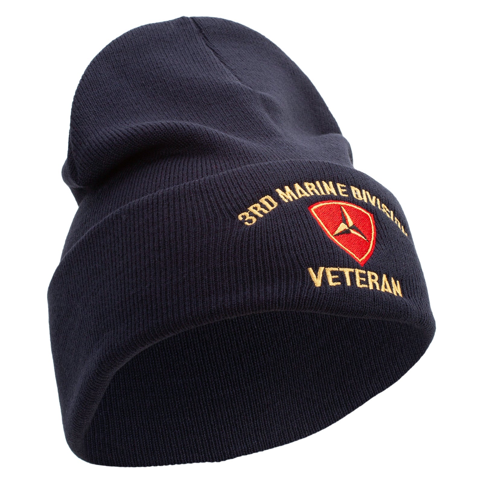 Title, 3rd Marine Division Veteran Logo Embroidered 12 Inch Solid Knit Cuff Long Beanie Made in USA