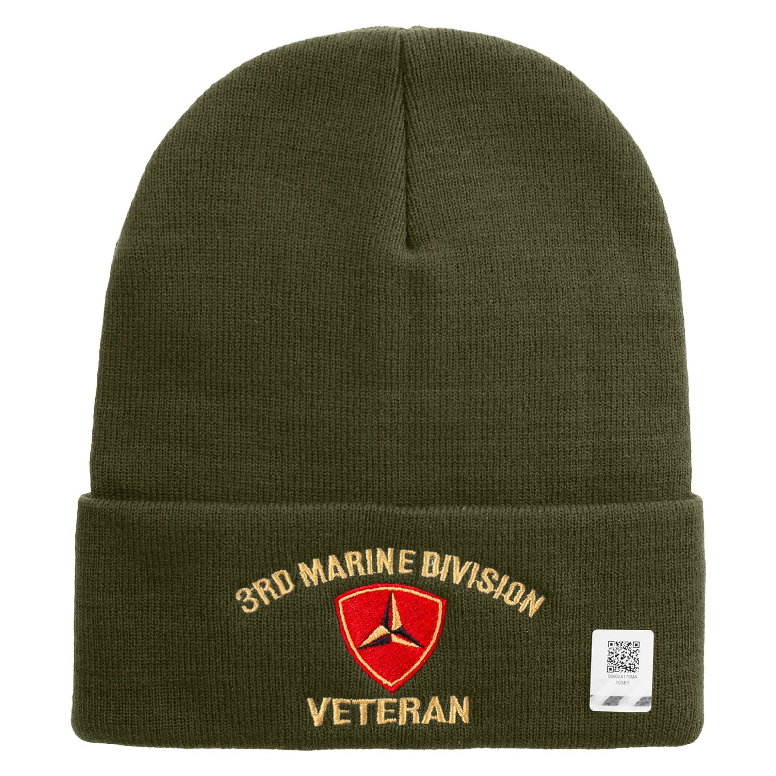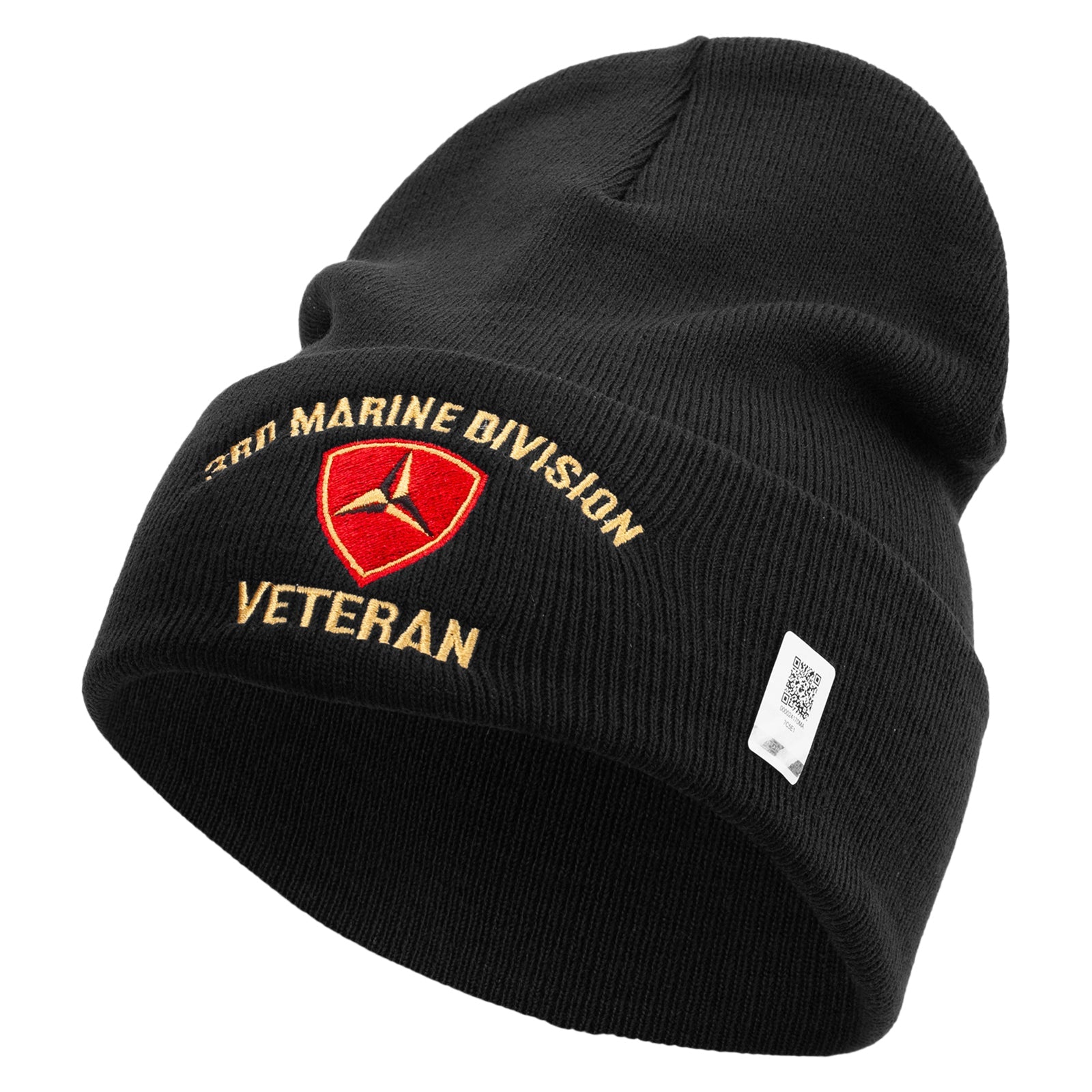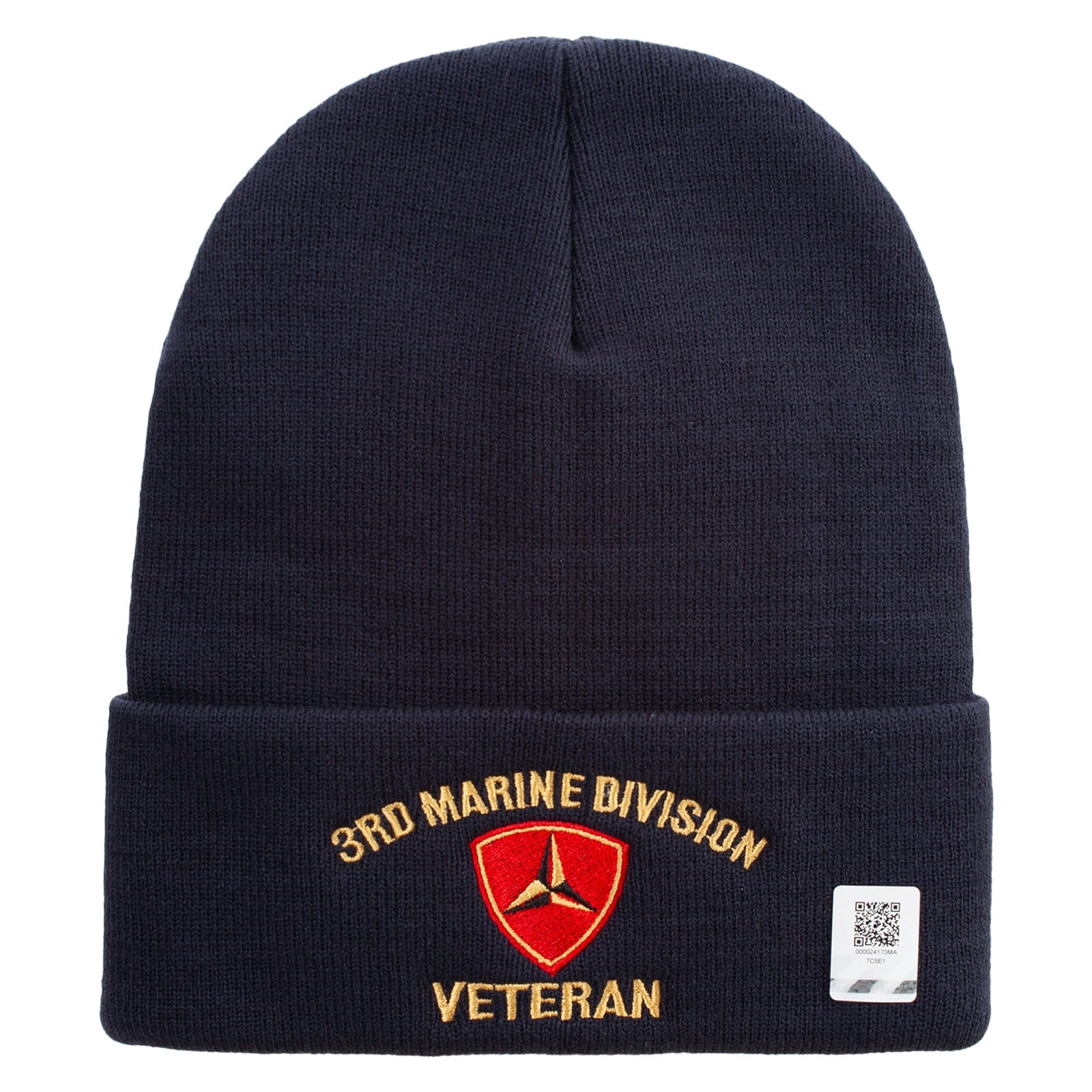 Service Pride, Proudly salute your service at veteran gatherings, parades, or everyday outings with this American-made knit beanie showcasing the 3rd Marine Division veteran emblem