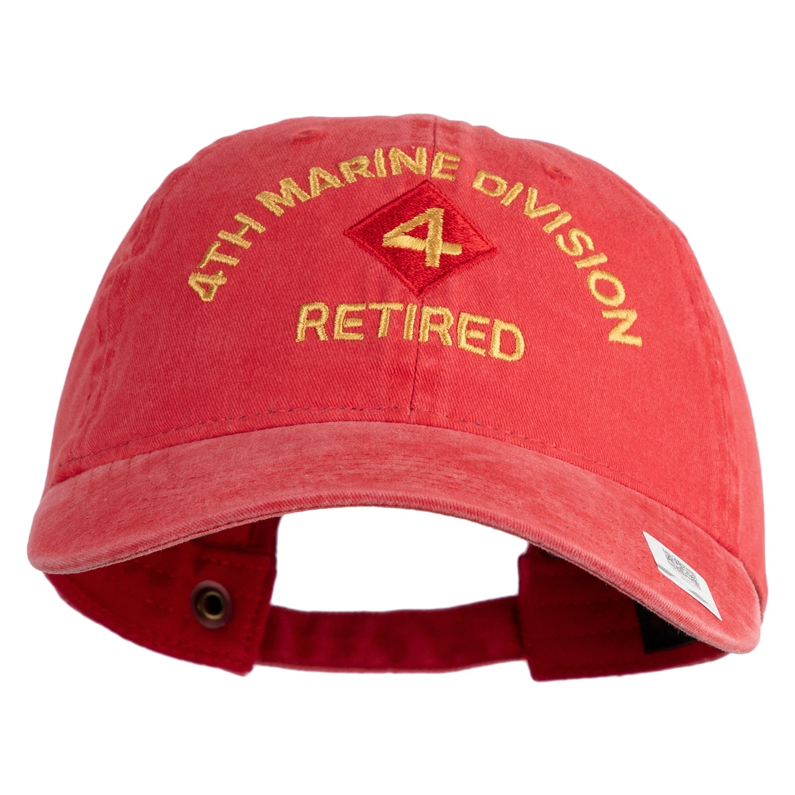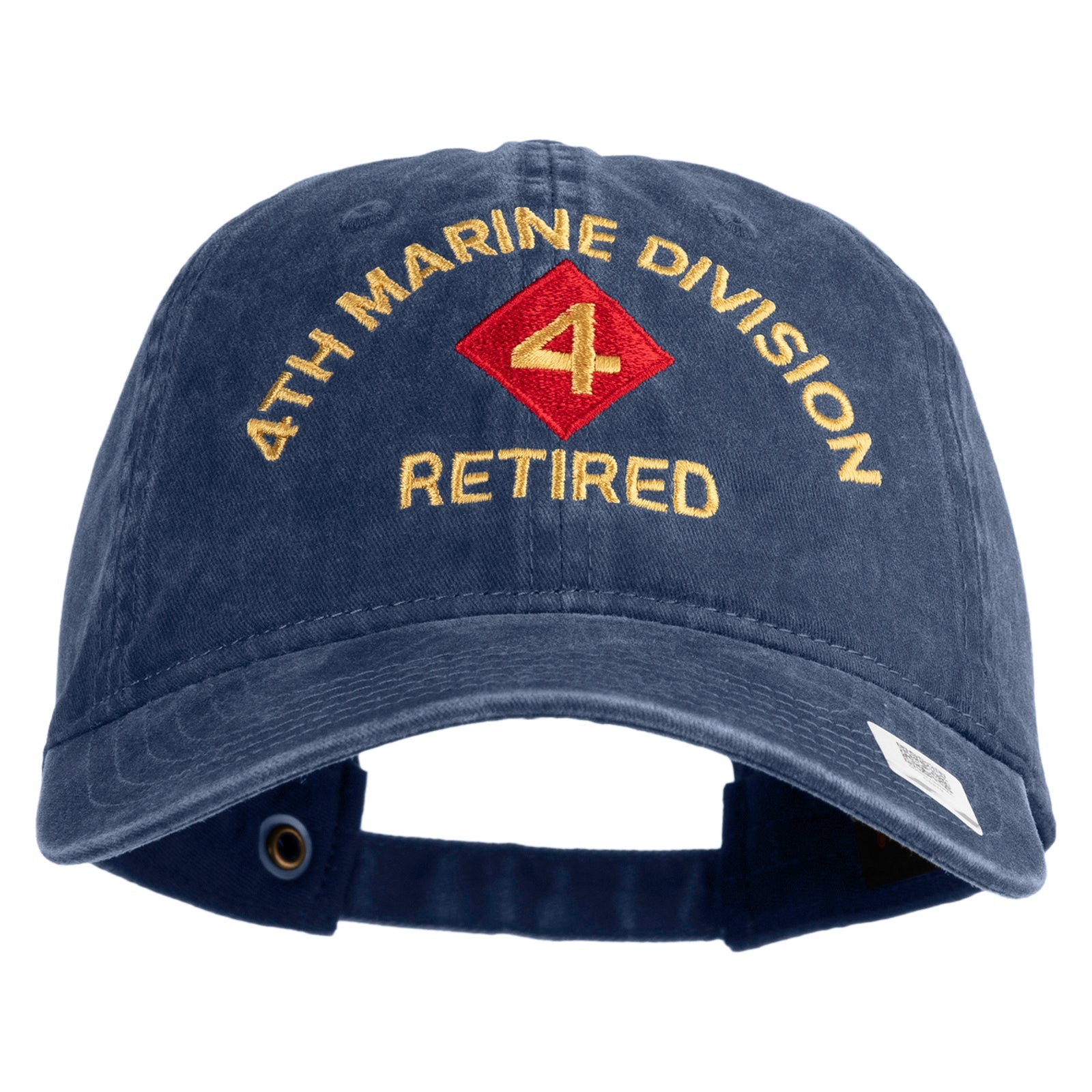 Title, 4th Marine Division Retired Embroidered Washed Solid Pigment Dyed Cotton Twill Brass Buckle Cap