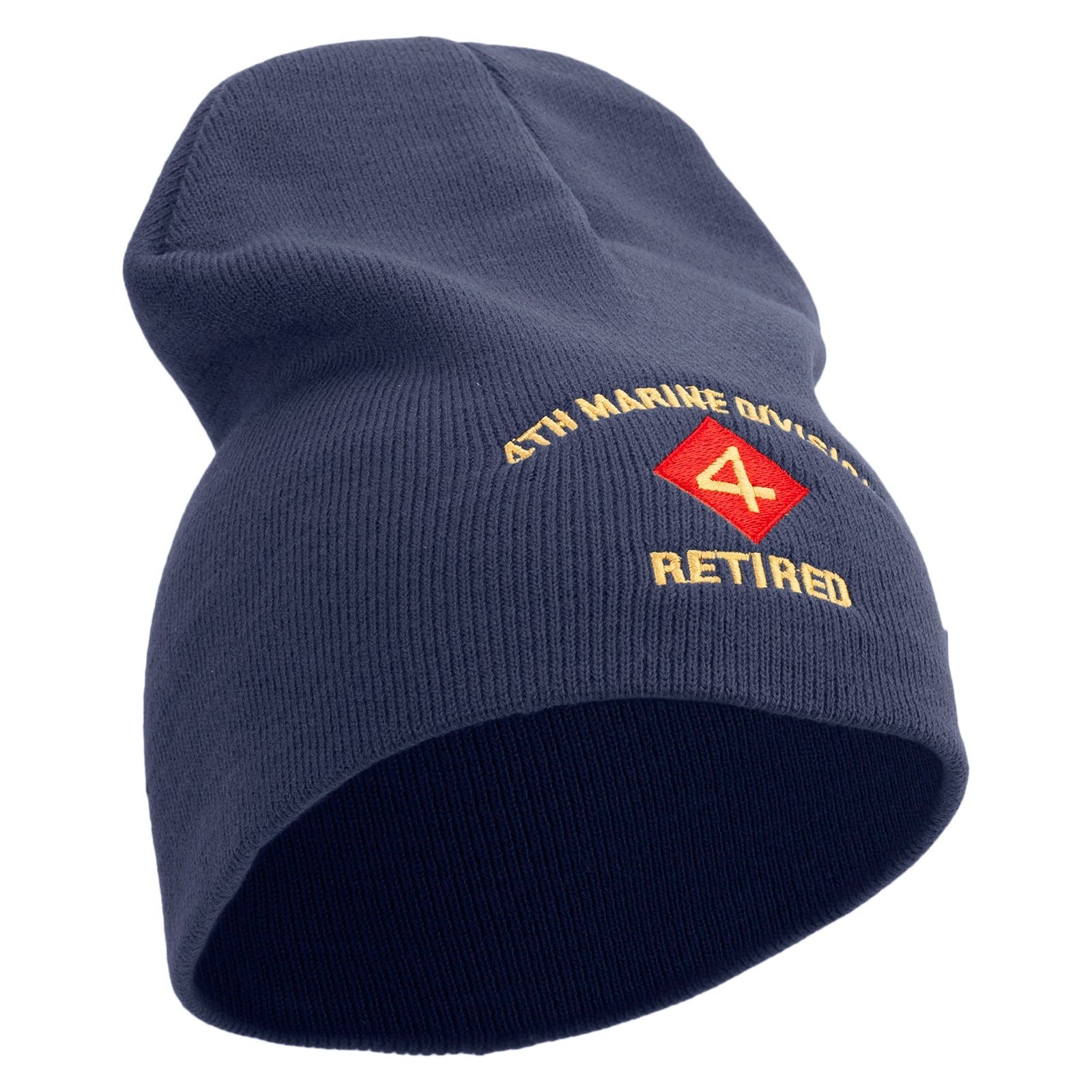 Title, 4th Marine Division Retired Symbol Embroidered 8 Inch Solid Knit Short Beanie Made in USA