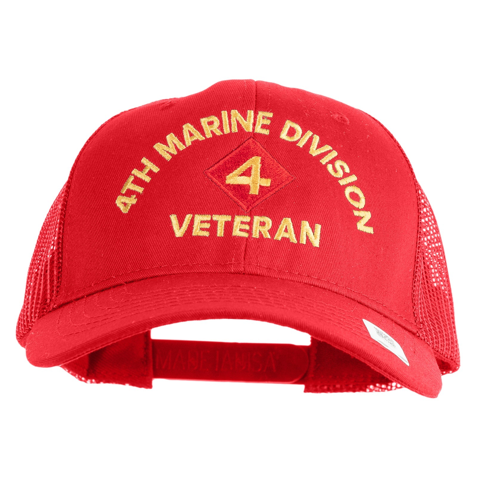 4th Marine Division Veteran Embroidered 6 Panel Structured Cotton Twill Mesh Cap Made in USA