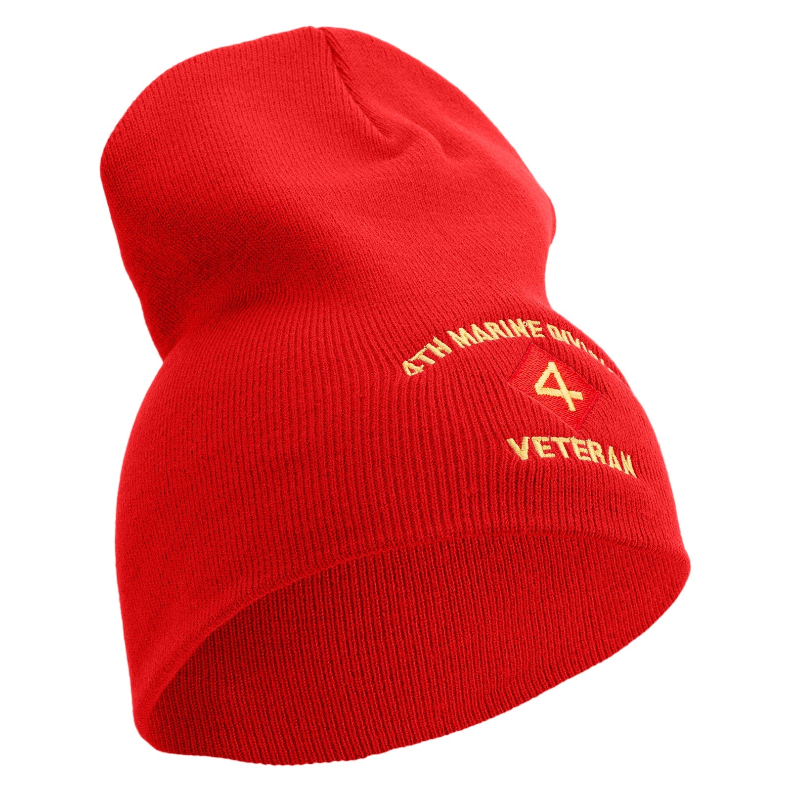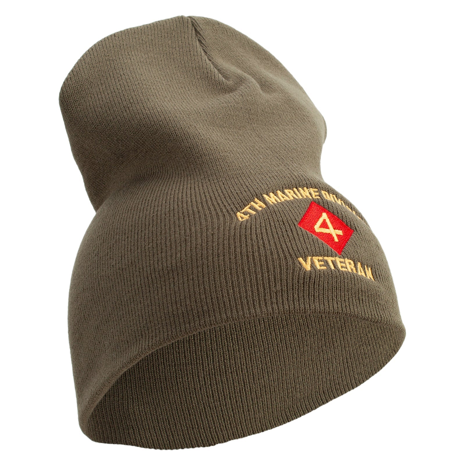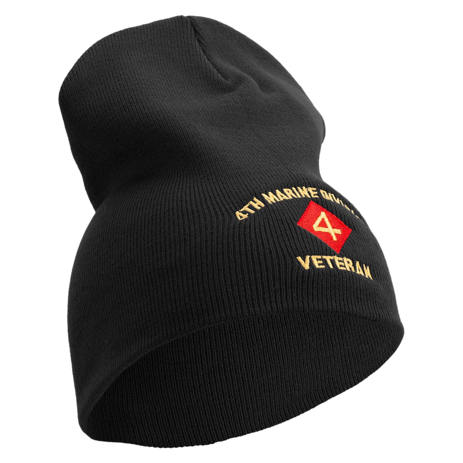 4th Marine Division Veteran Symbol Embroidered 8 Inch Solid Knit Short Beanie Made in USA