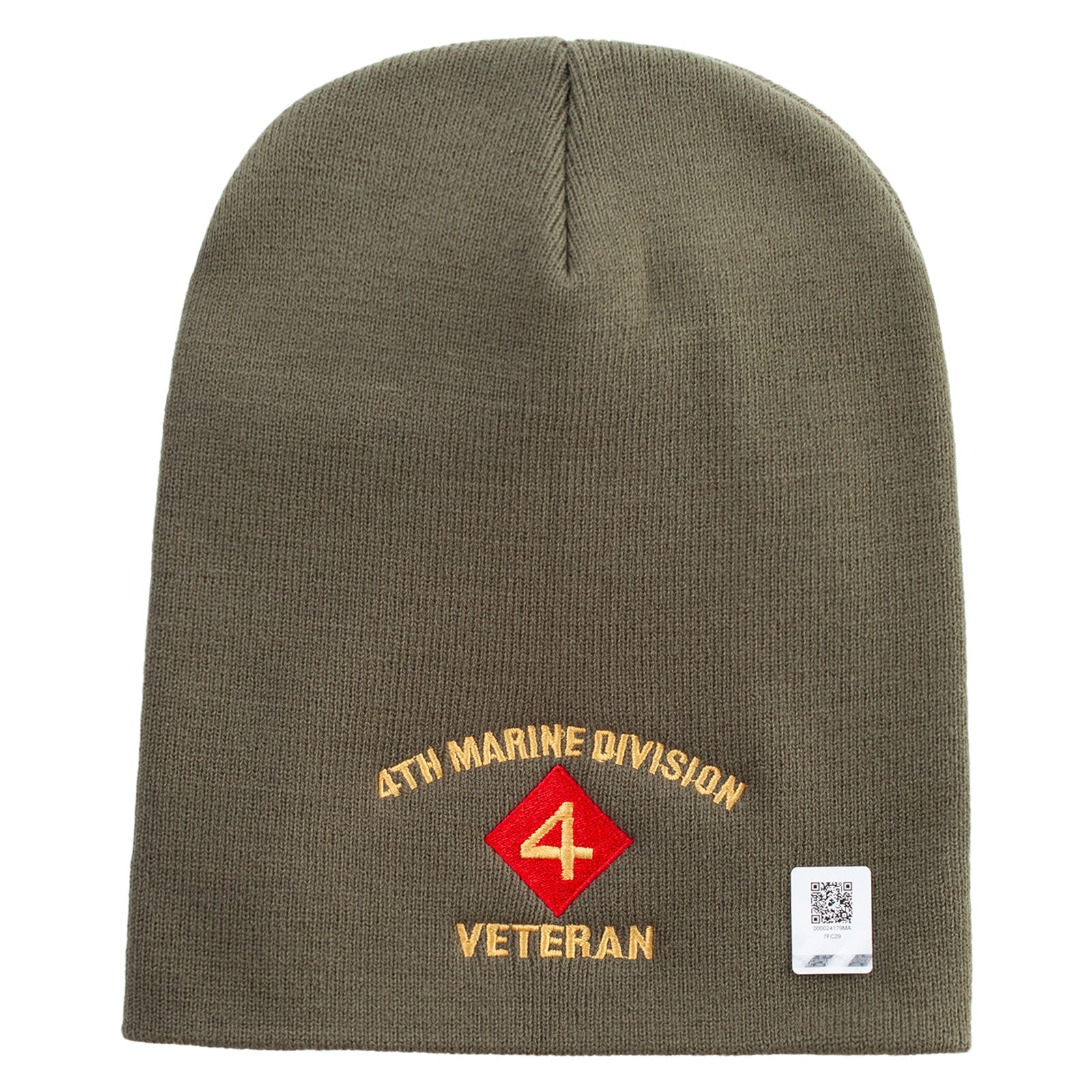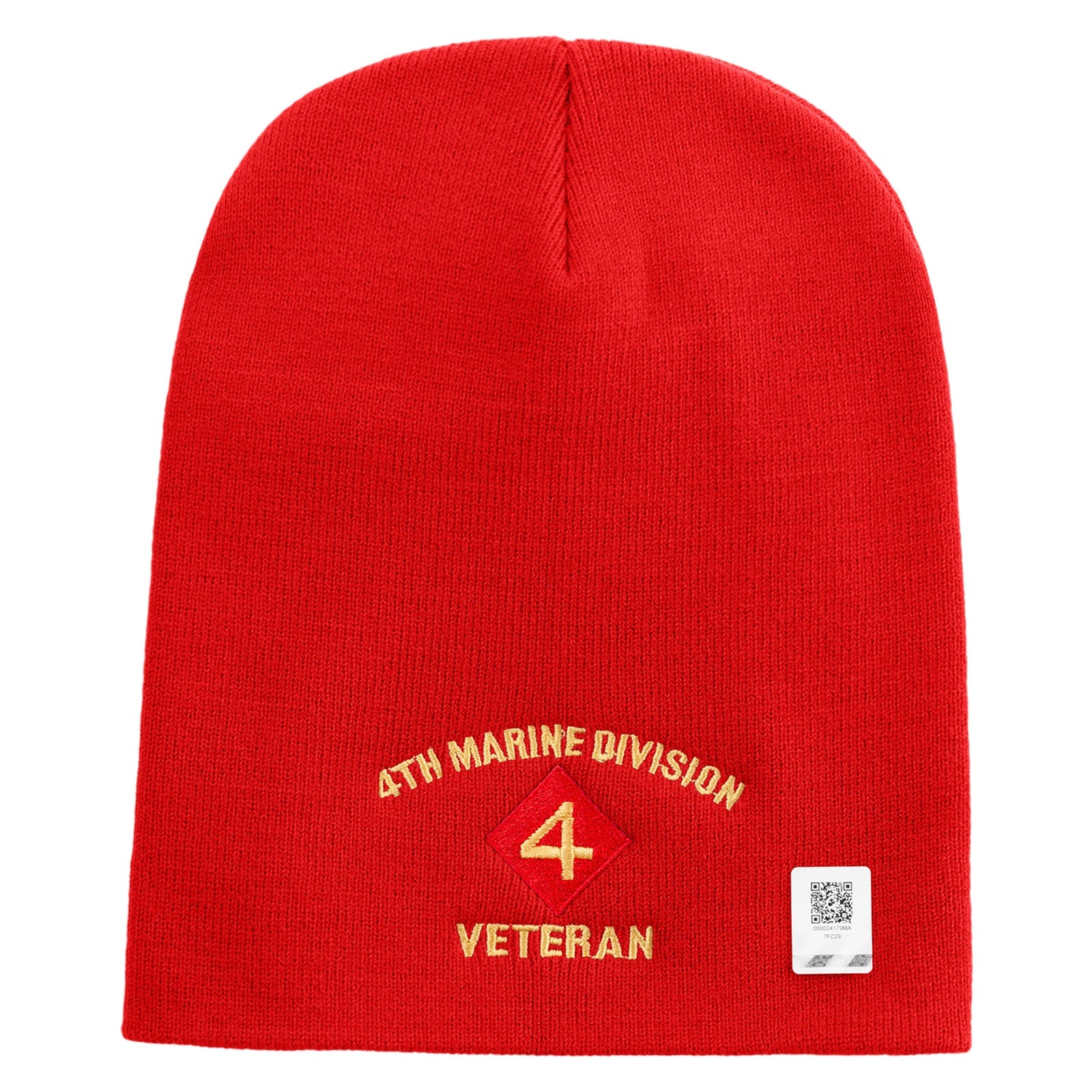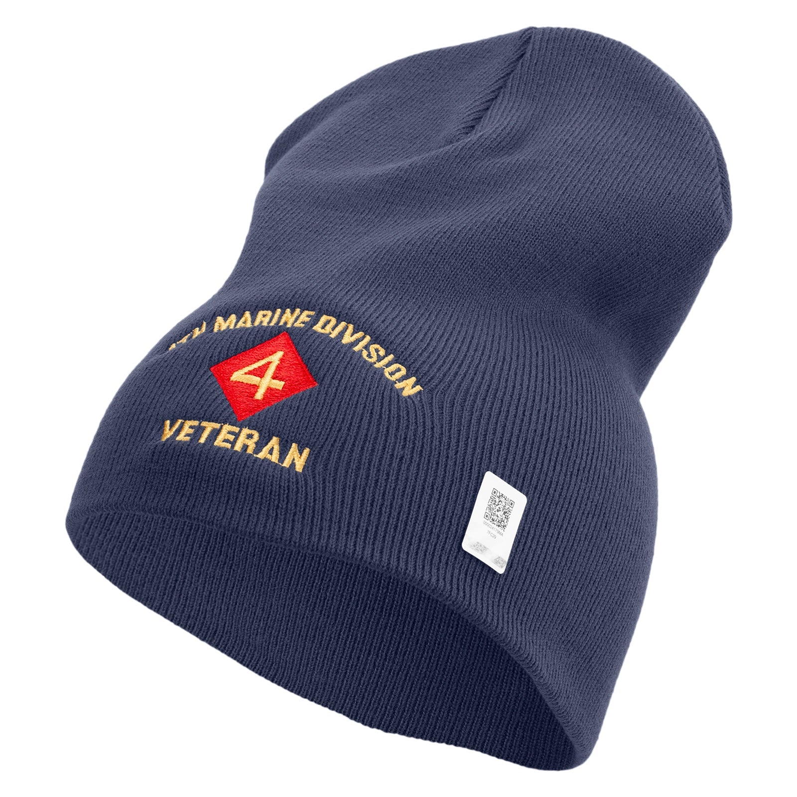 4th Marine Division Veteran Symbol Embroidered 8 Inch Solid Knit Short Beanie Made in USA
