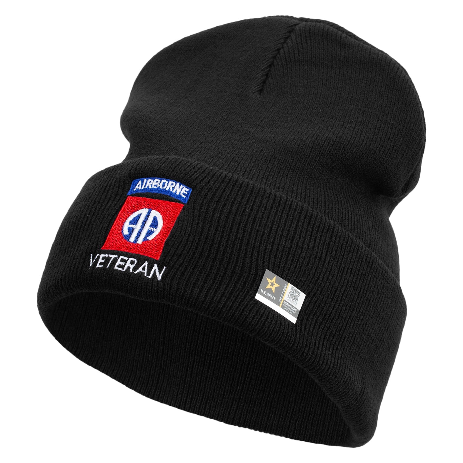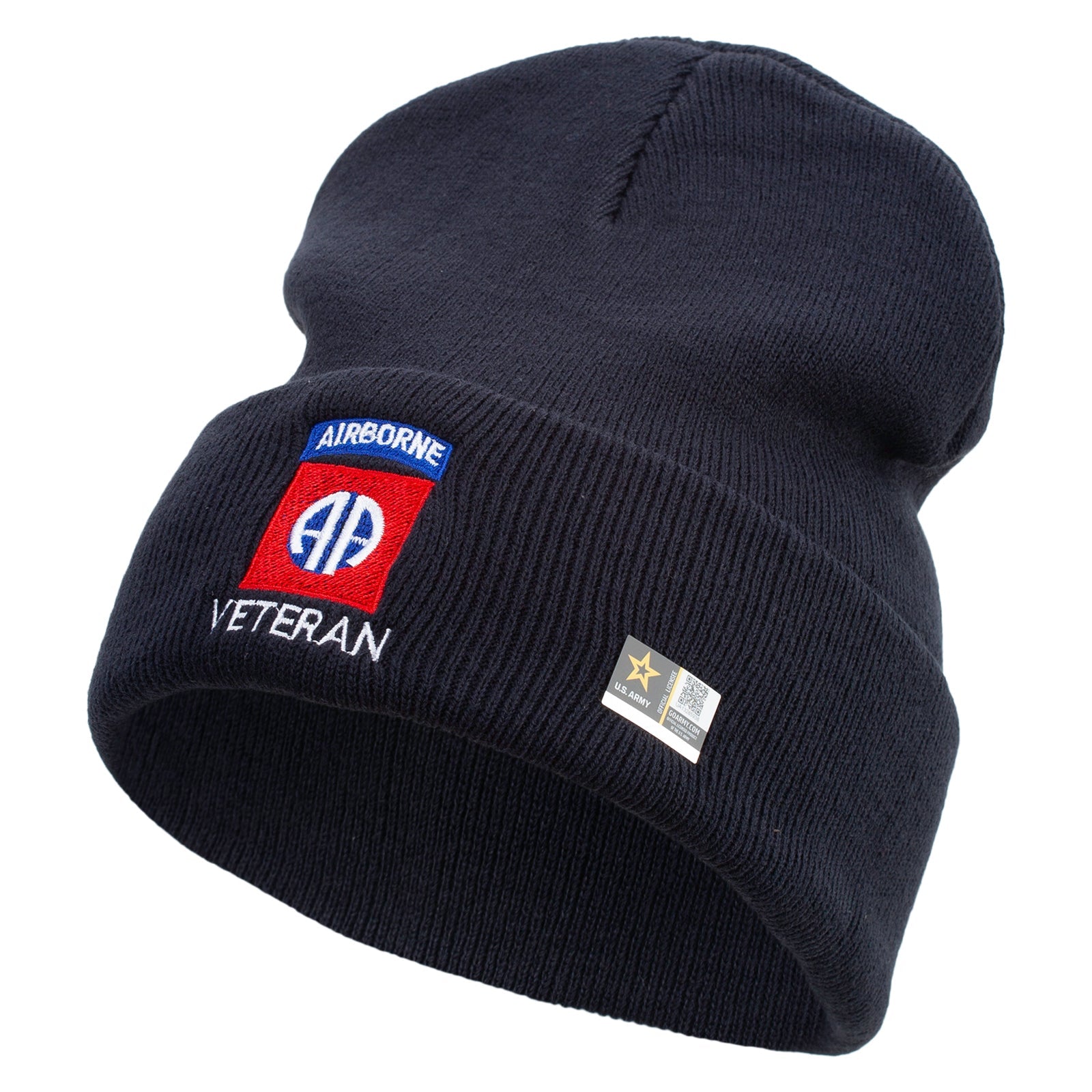 Title, Licensed 82nd Airborne Veteran Embroidered 12 Inch Long Knitted Beanie