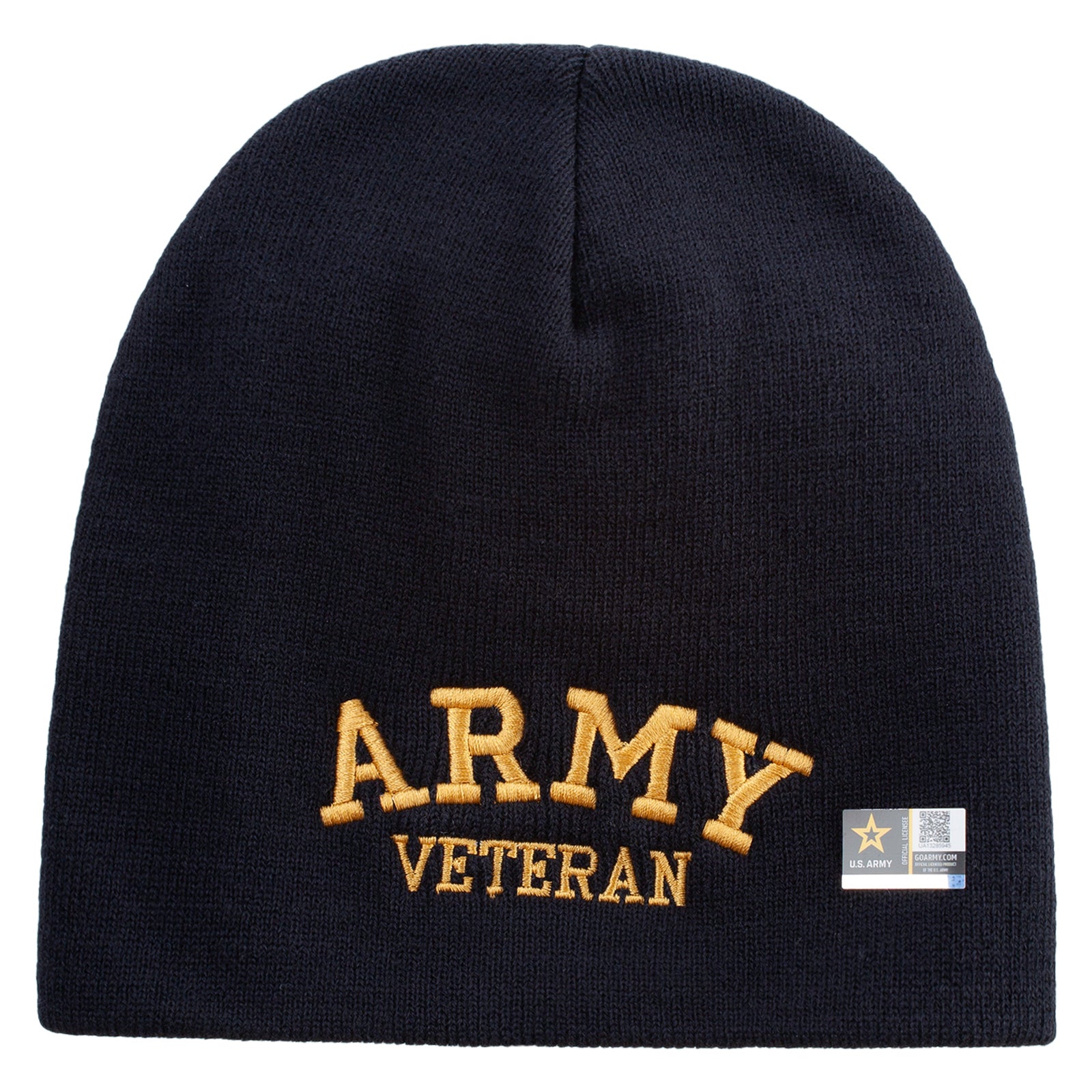 Title, Licensed Army Veteran Letters Embroidered 8 Inch Knitted Short Beanie