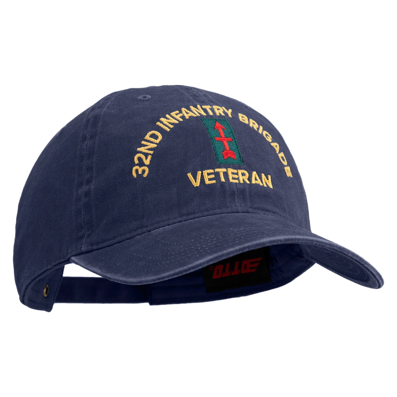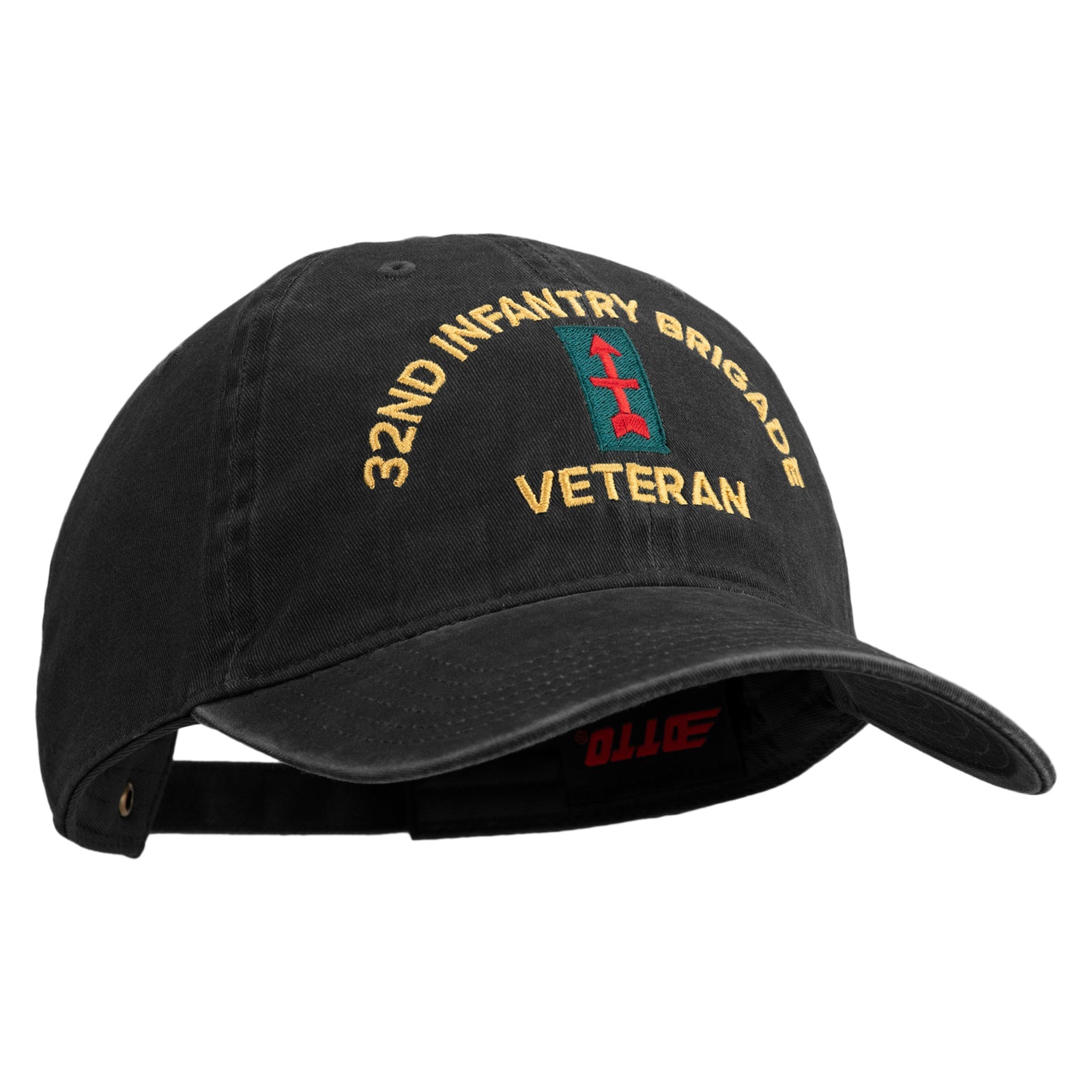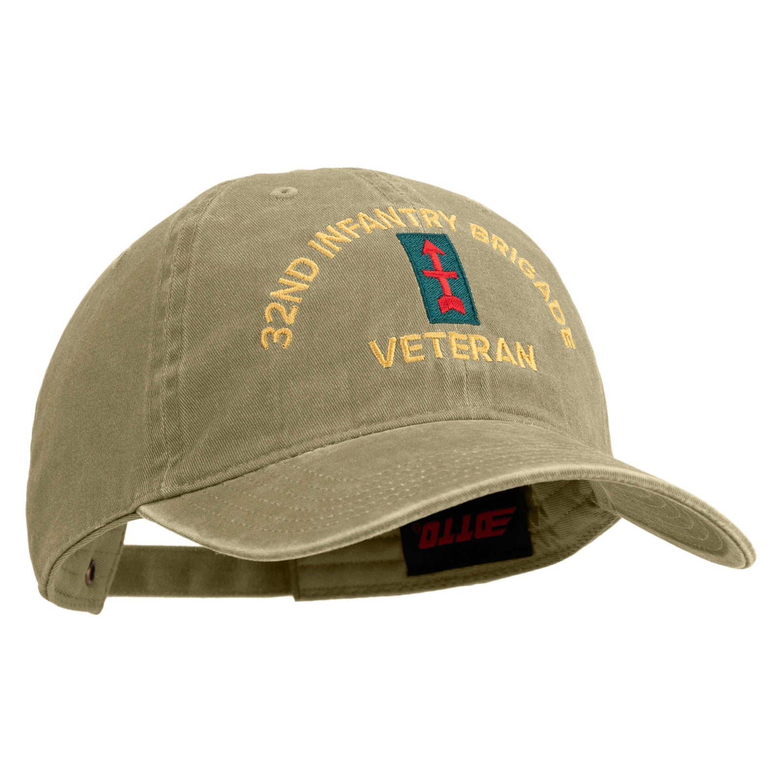 Title, U.S. Army 32nd Infantry Brigade Embroidered Washed Solid Pigment Dyed Cotton Twill Brass Buckle Cap