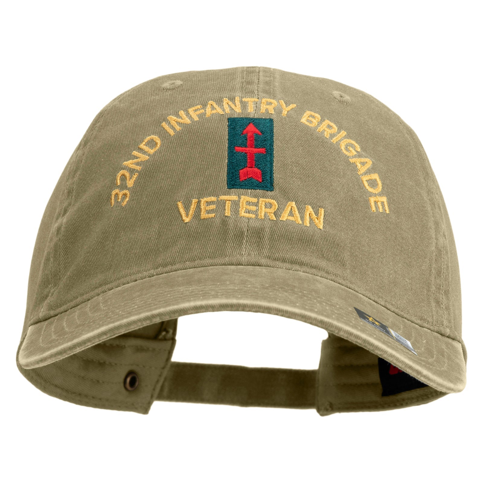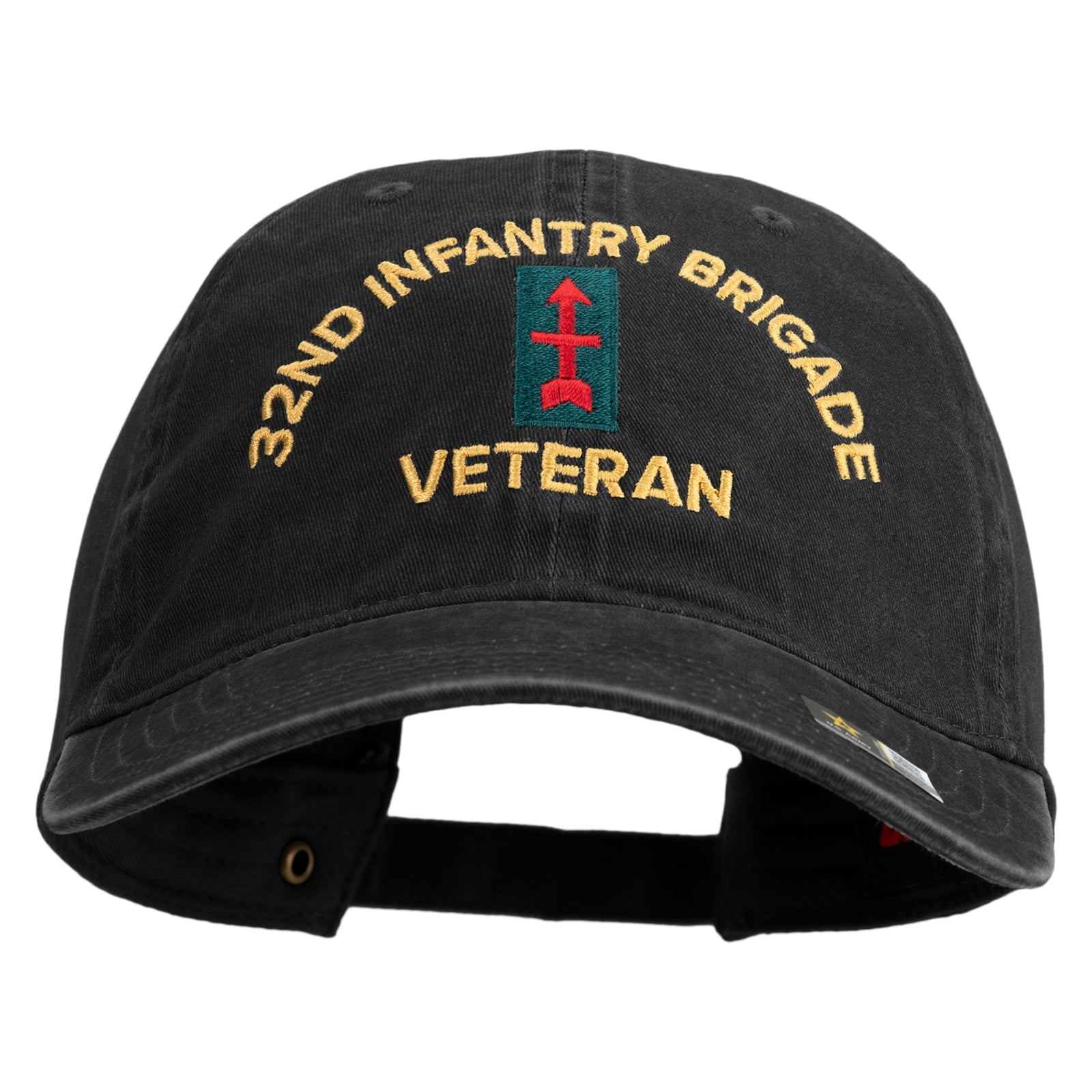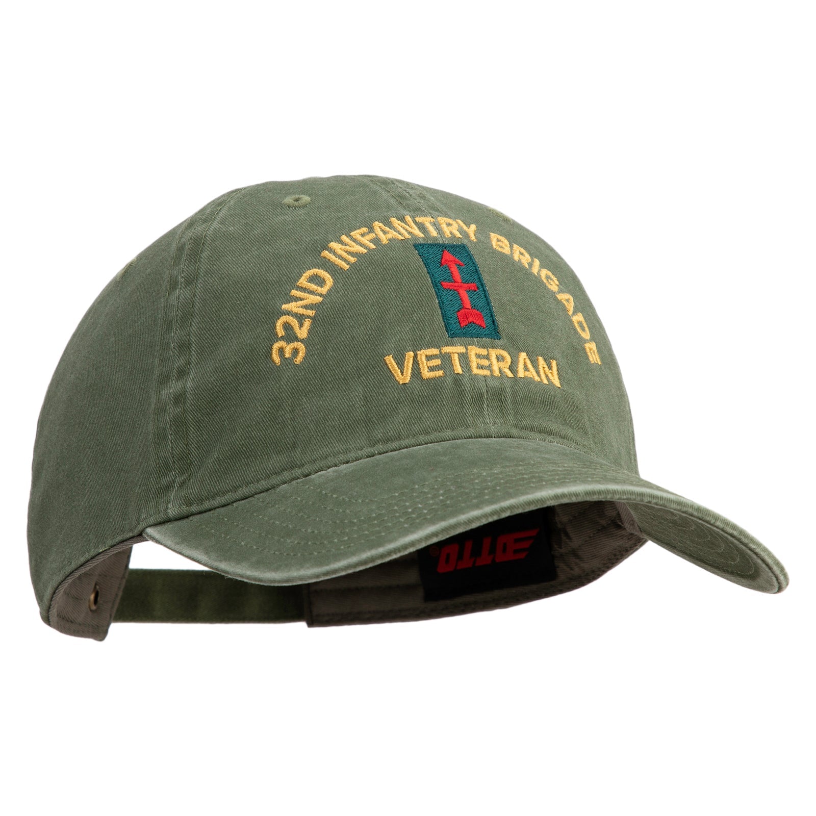 Title, U.S. Army 32nd Infantry Brigade Embroidered Washed Solid Pigment Dyed Cotton Twill Brass Buckle Cap