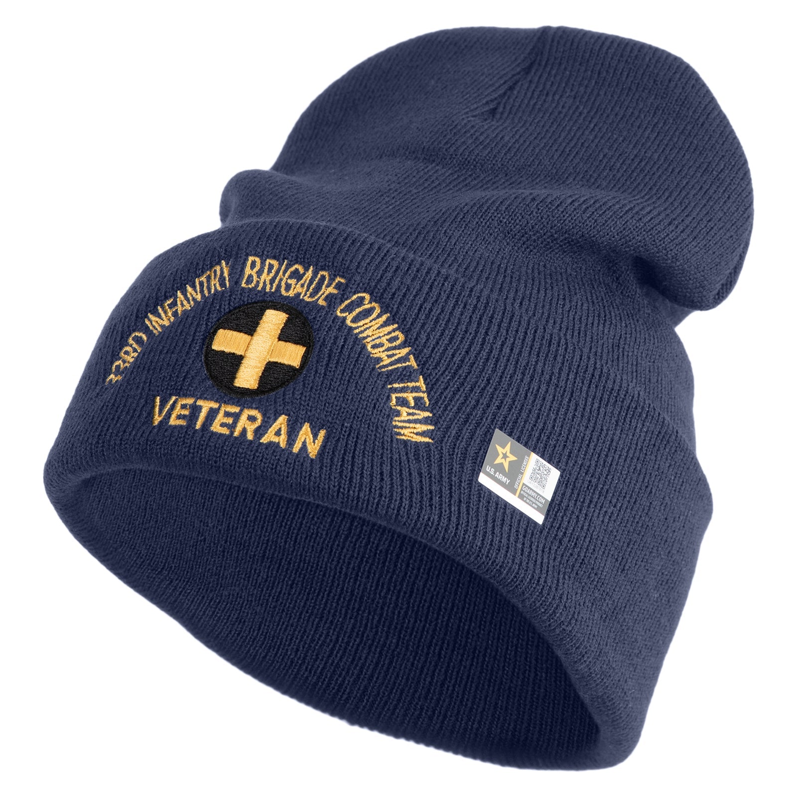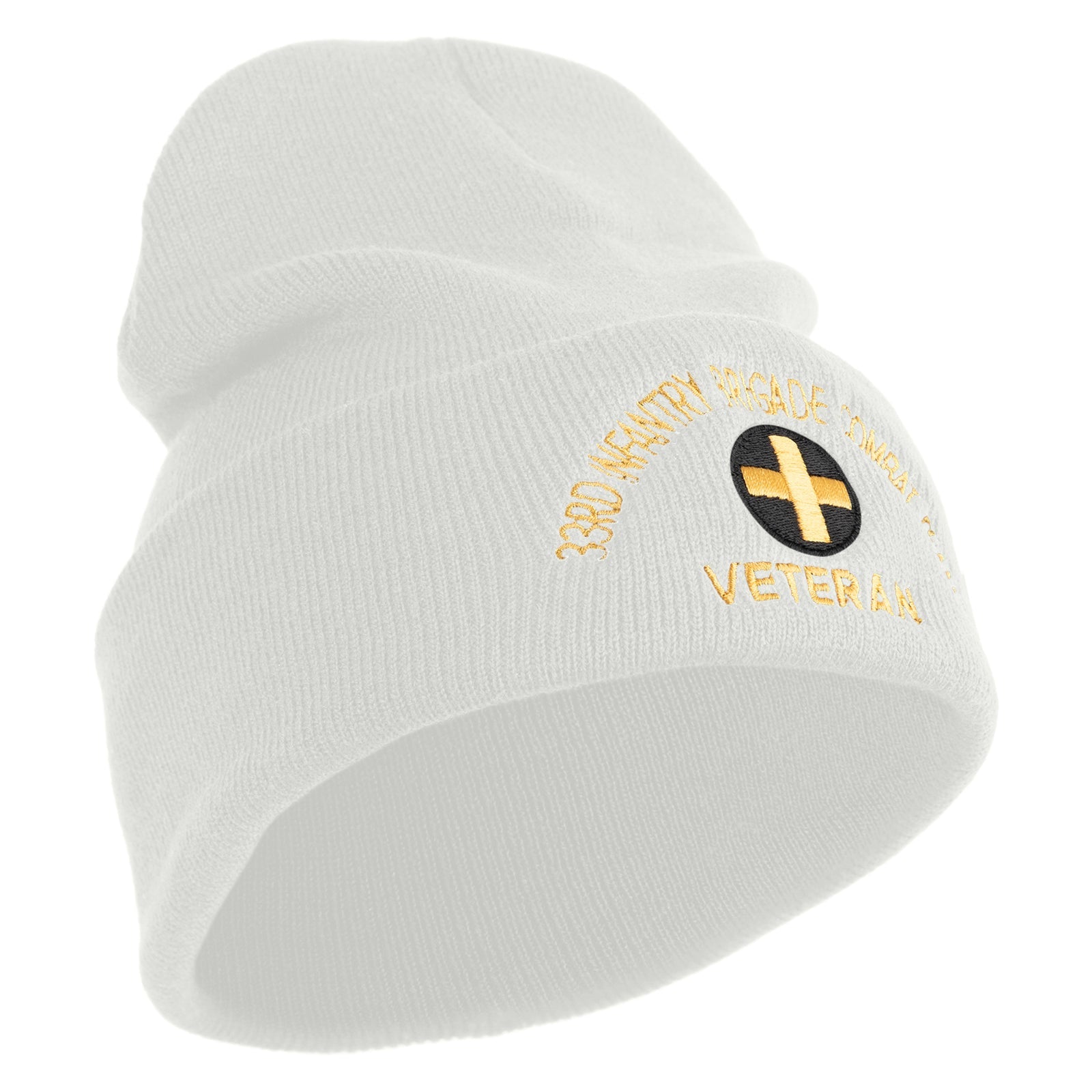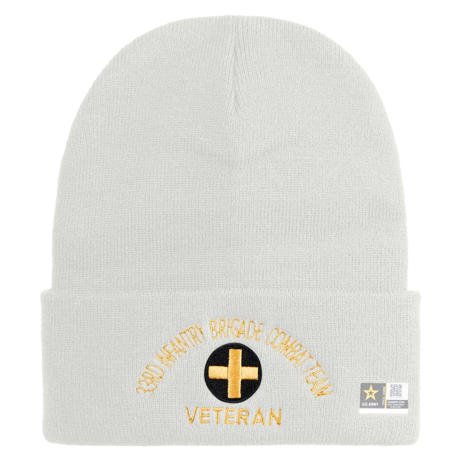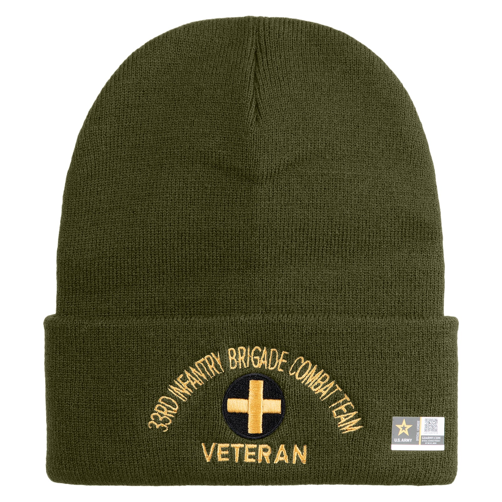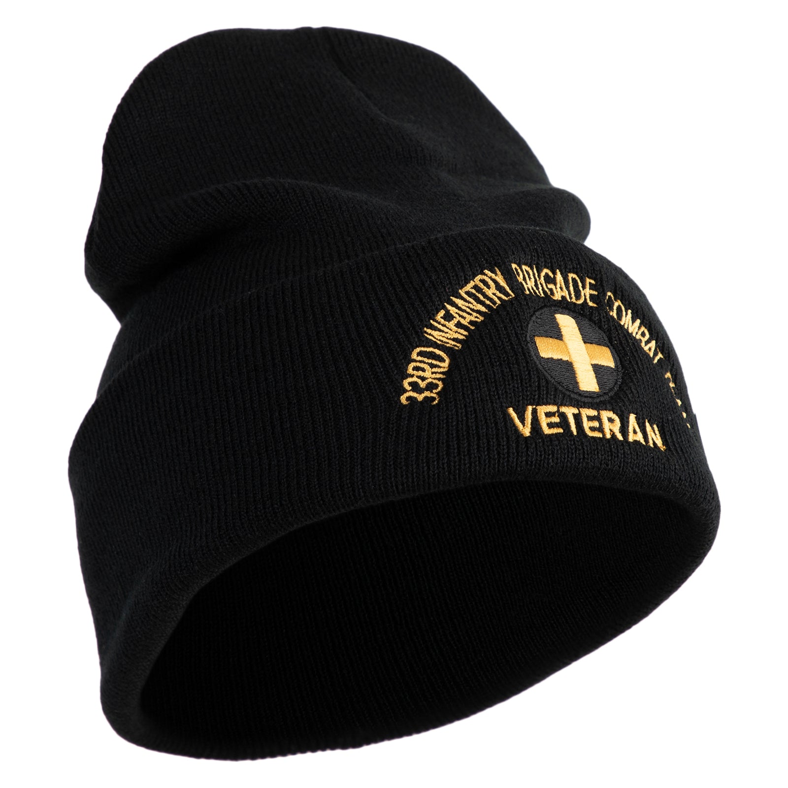 Title, U.S. Army 33rd Infantry Brigade Combat Team Logo Embroidered 12 Inch Solid Knit Cuff Long Beanie Made in USA