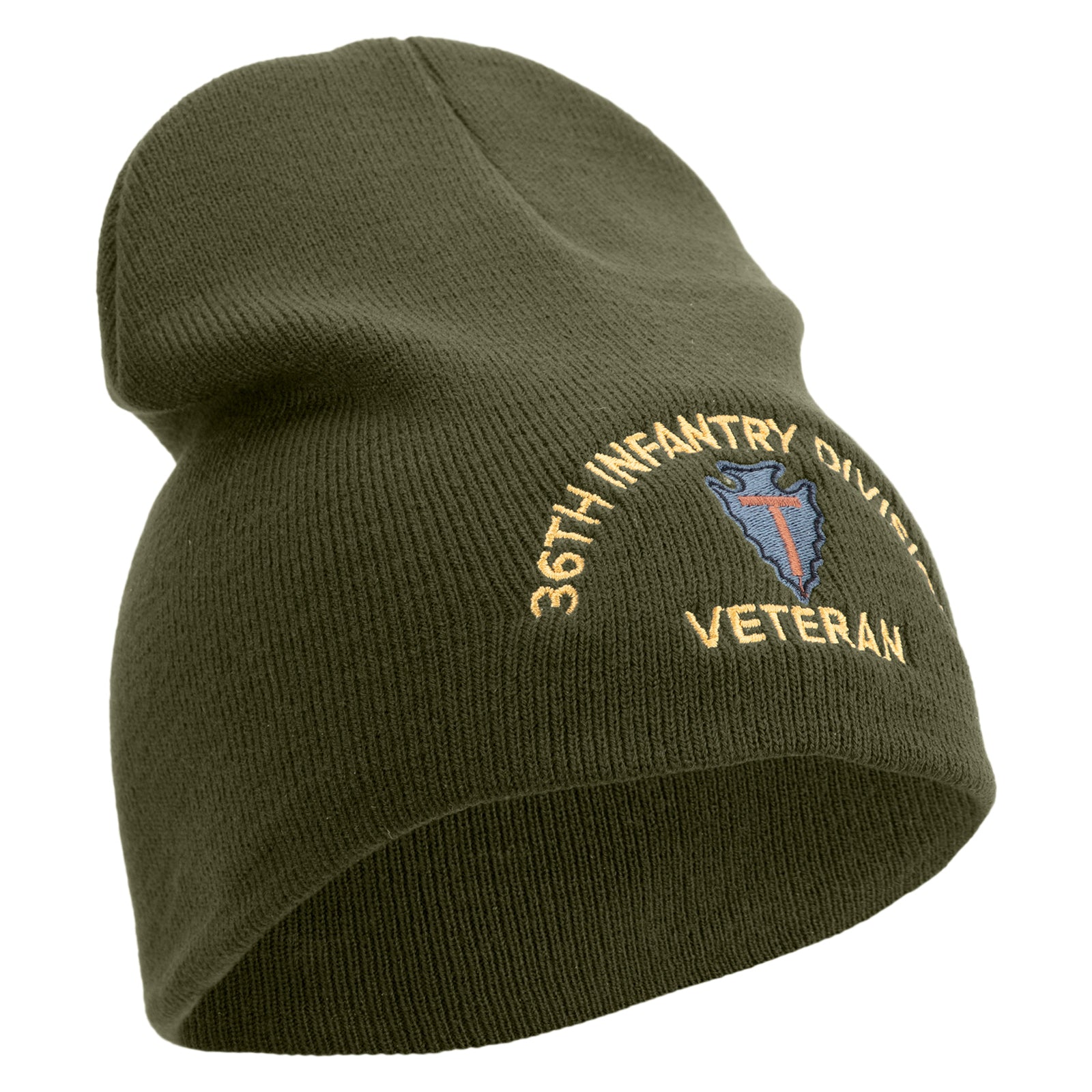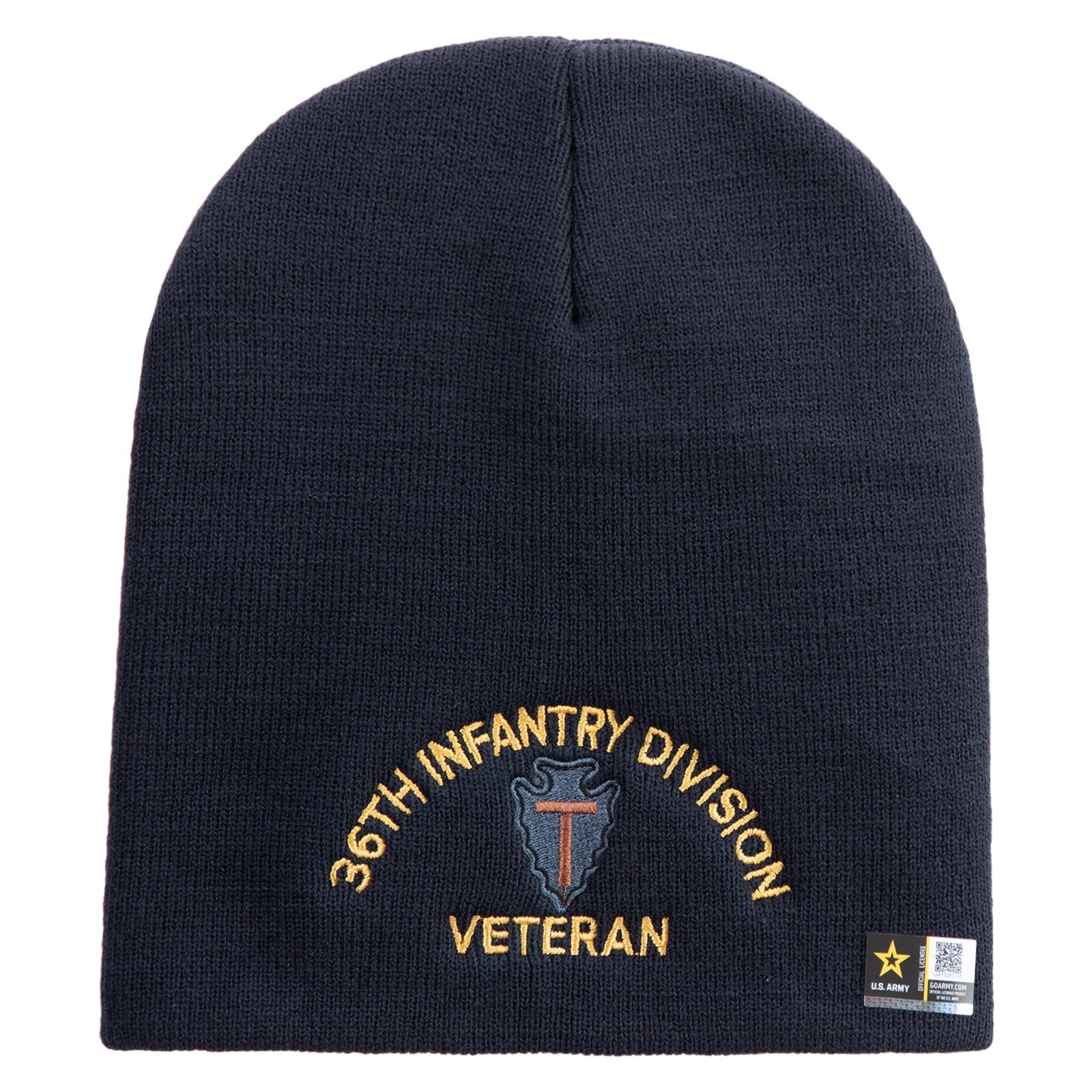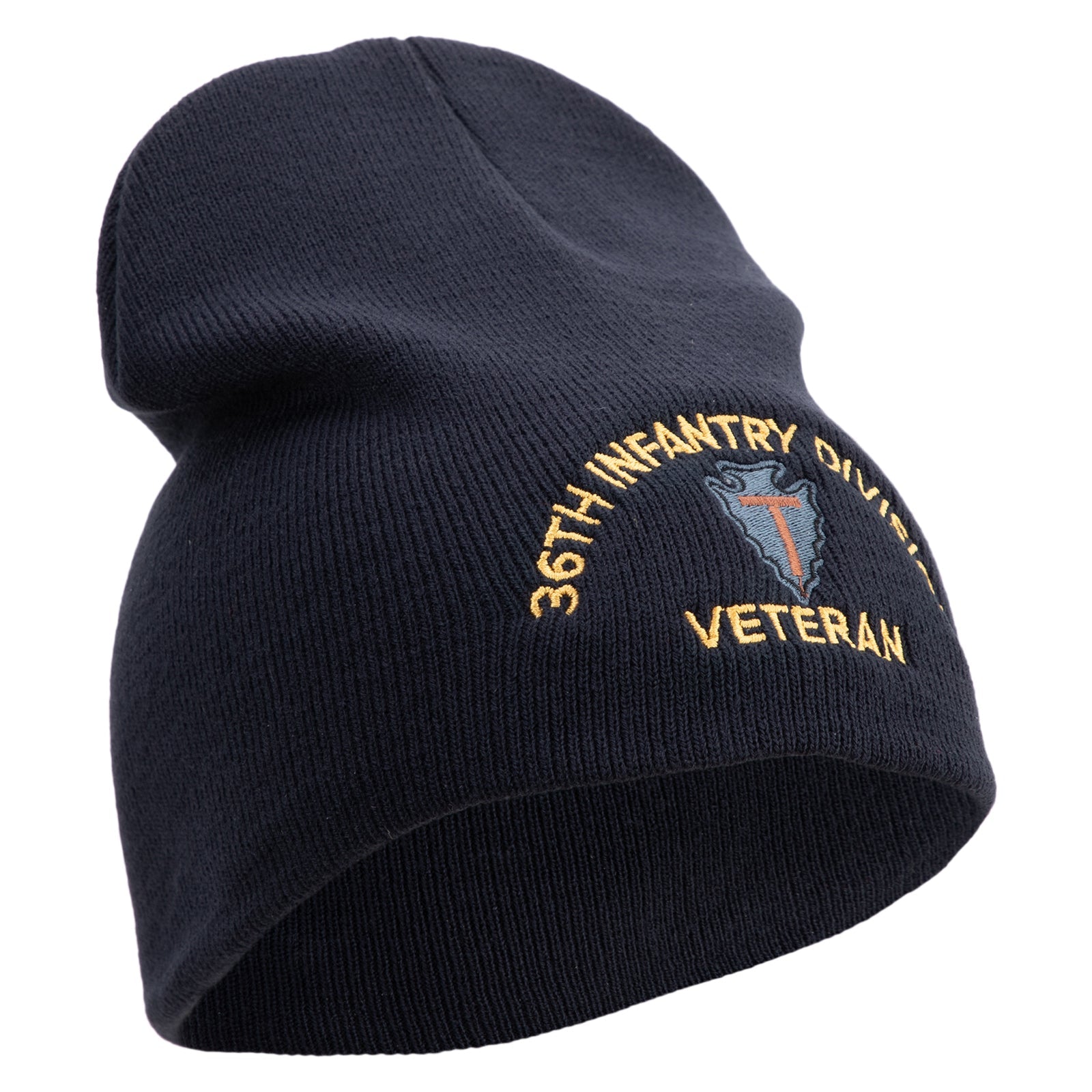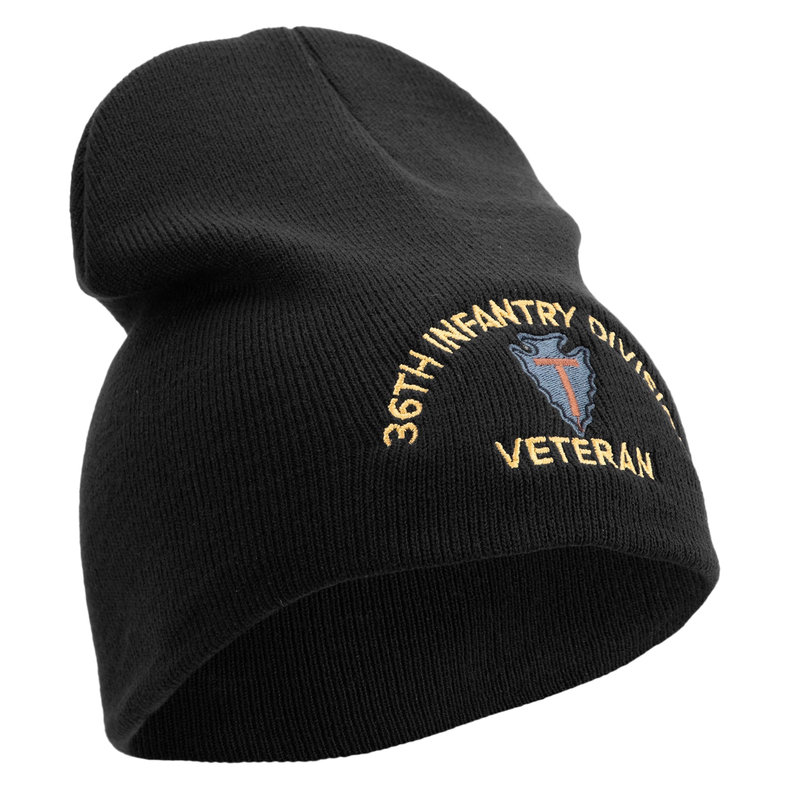 Title, U.S. Army 36th Infantry Division Symbol Embroidered 8 Inch Solid Knit Short Beanie Made in USA