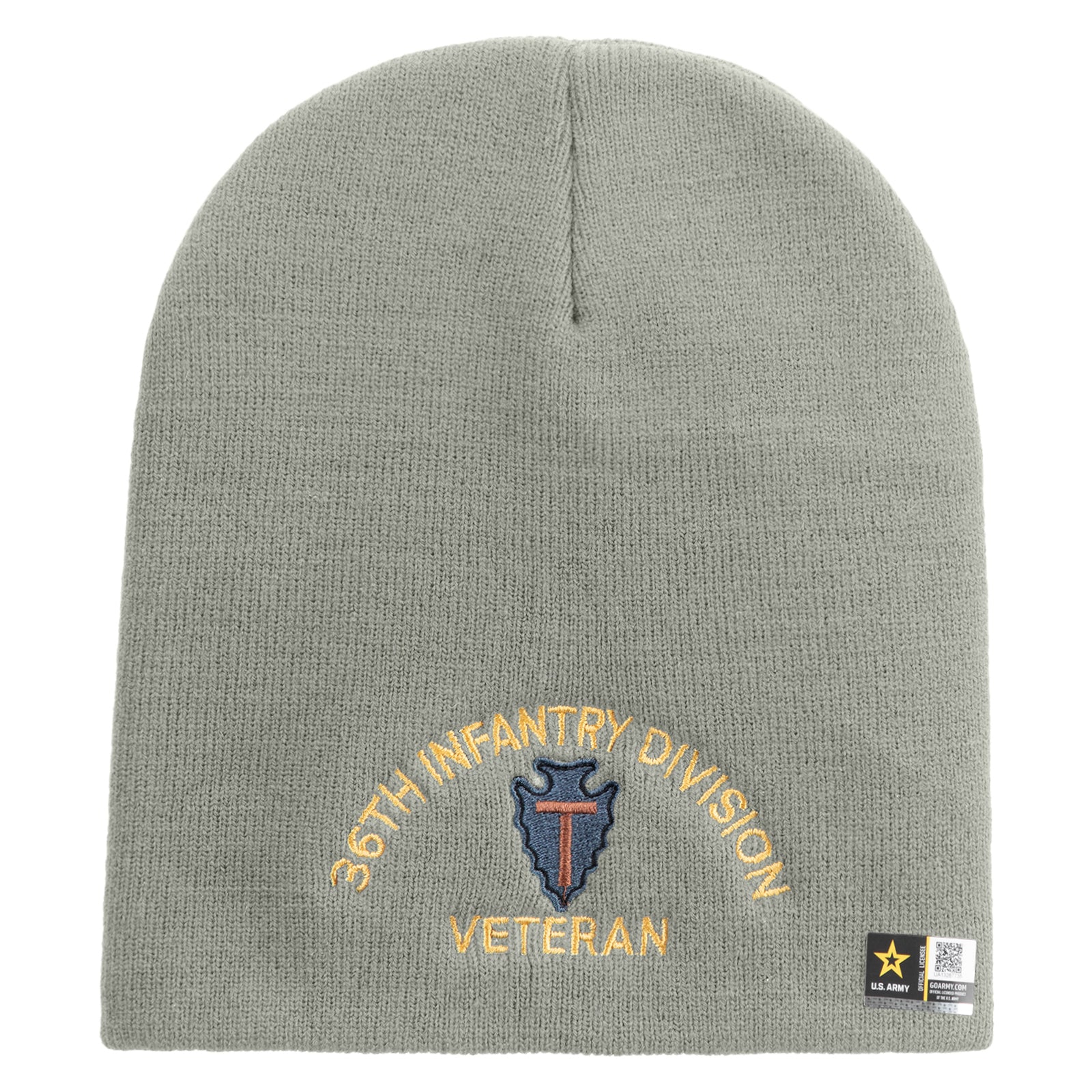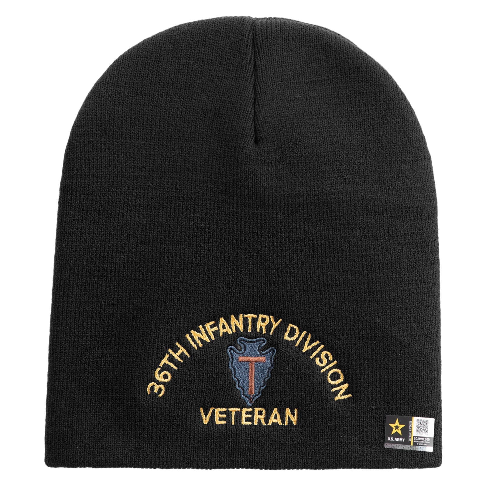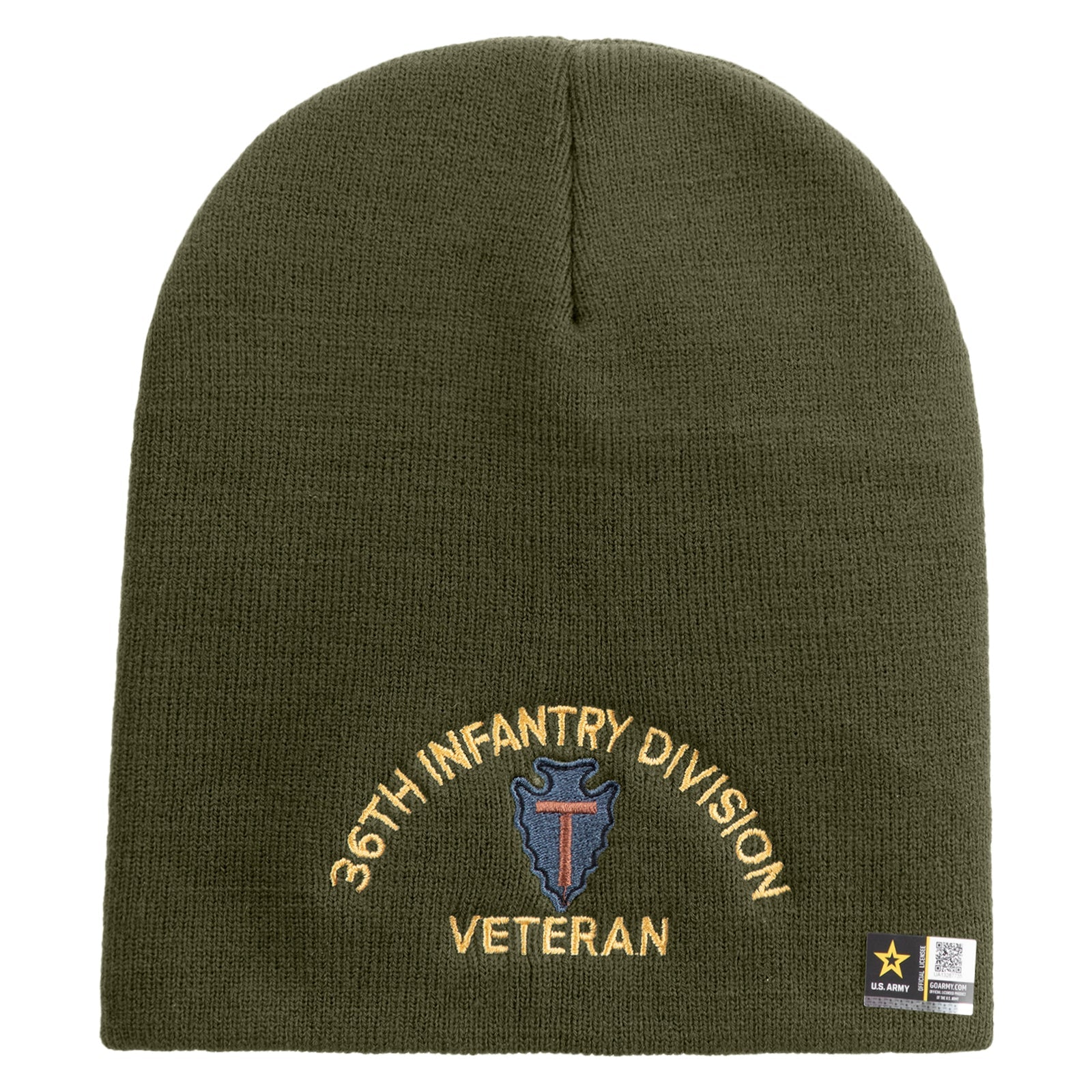 Title, U.S. Army 36th Infantry Division Symbol Embroidered 8 Inch Solid Knit Short Beanie Made in USA