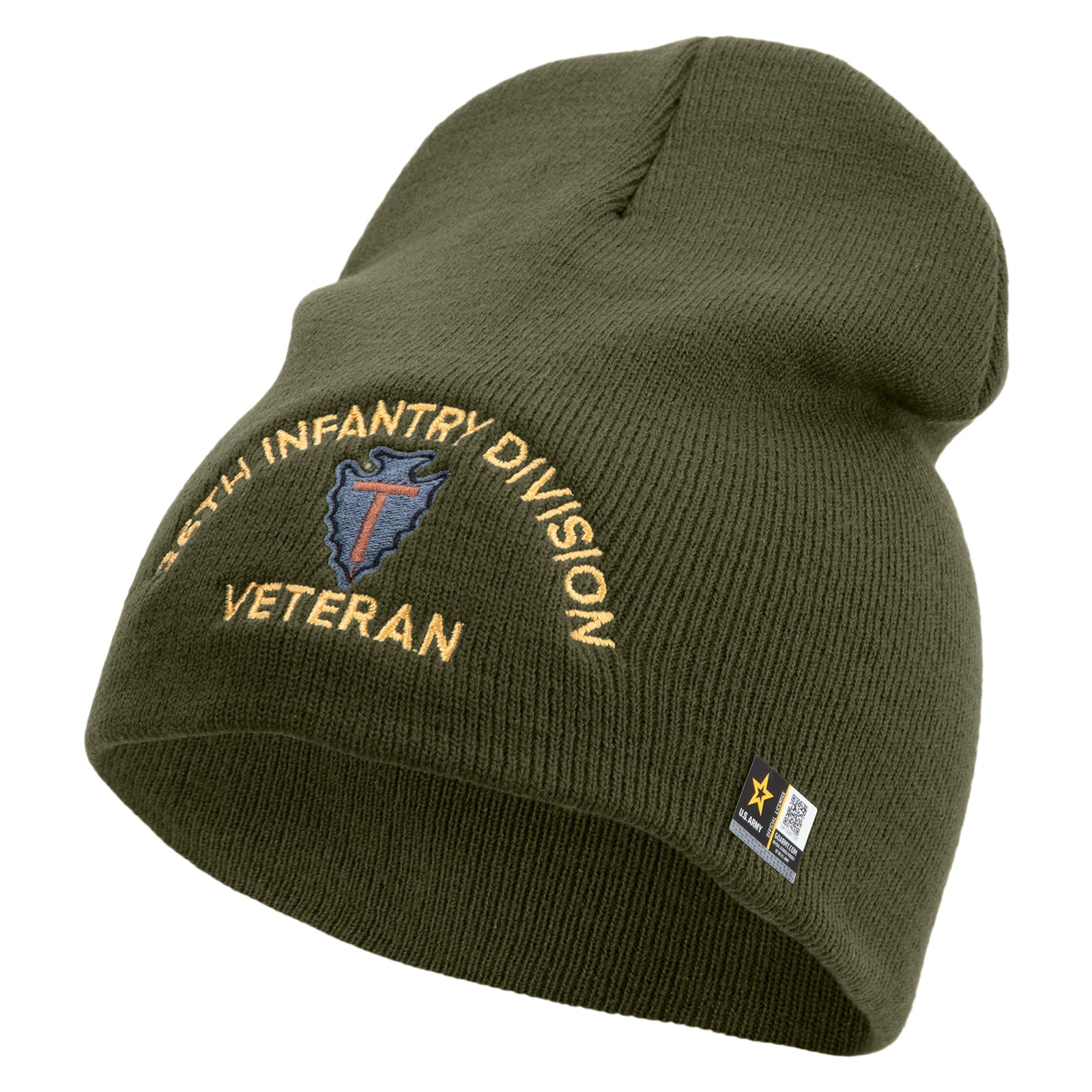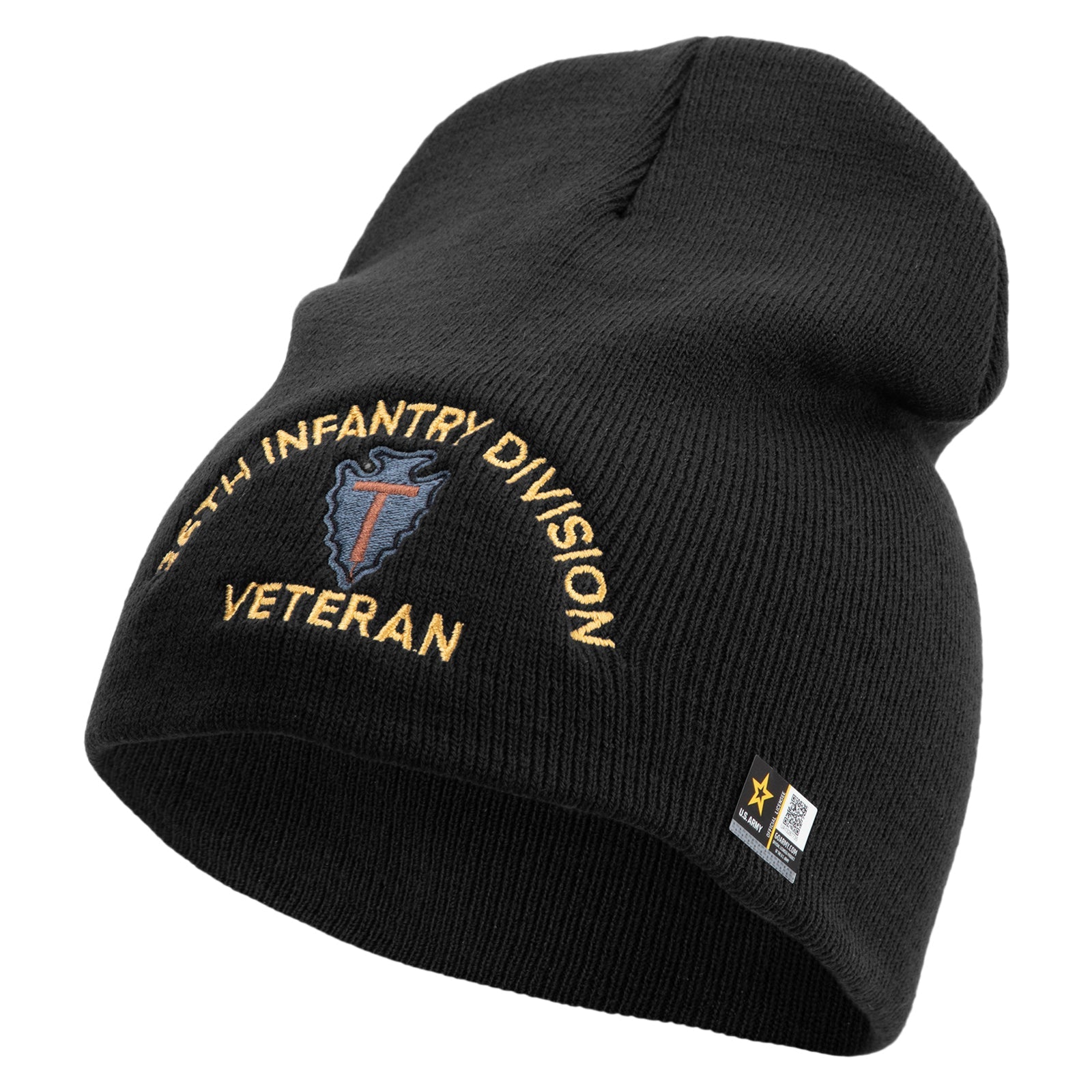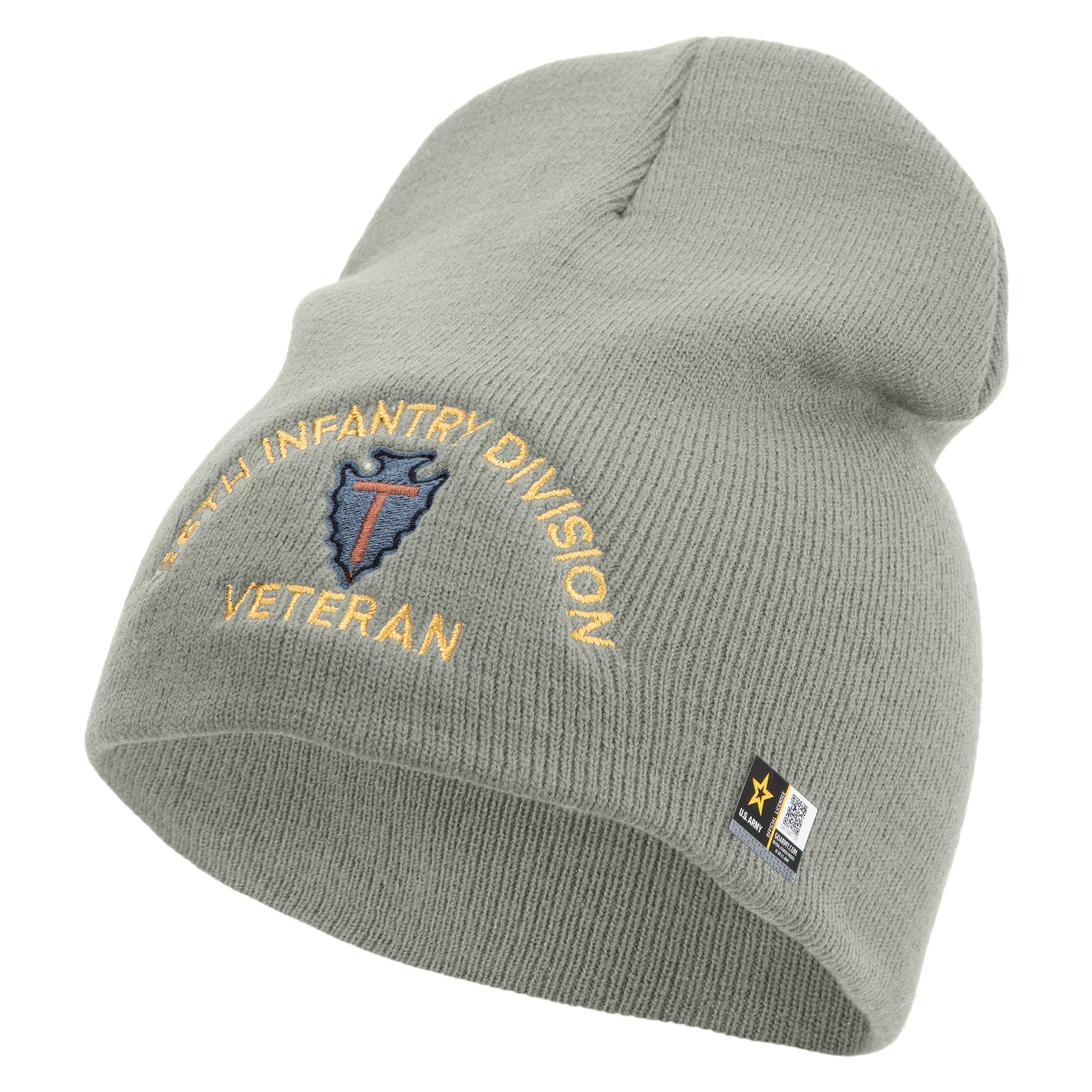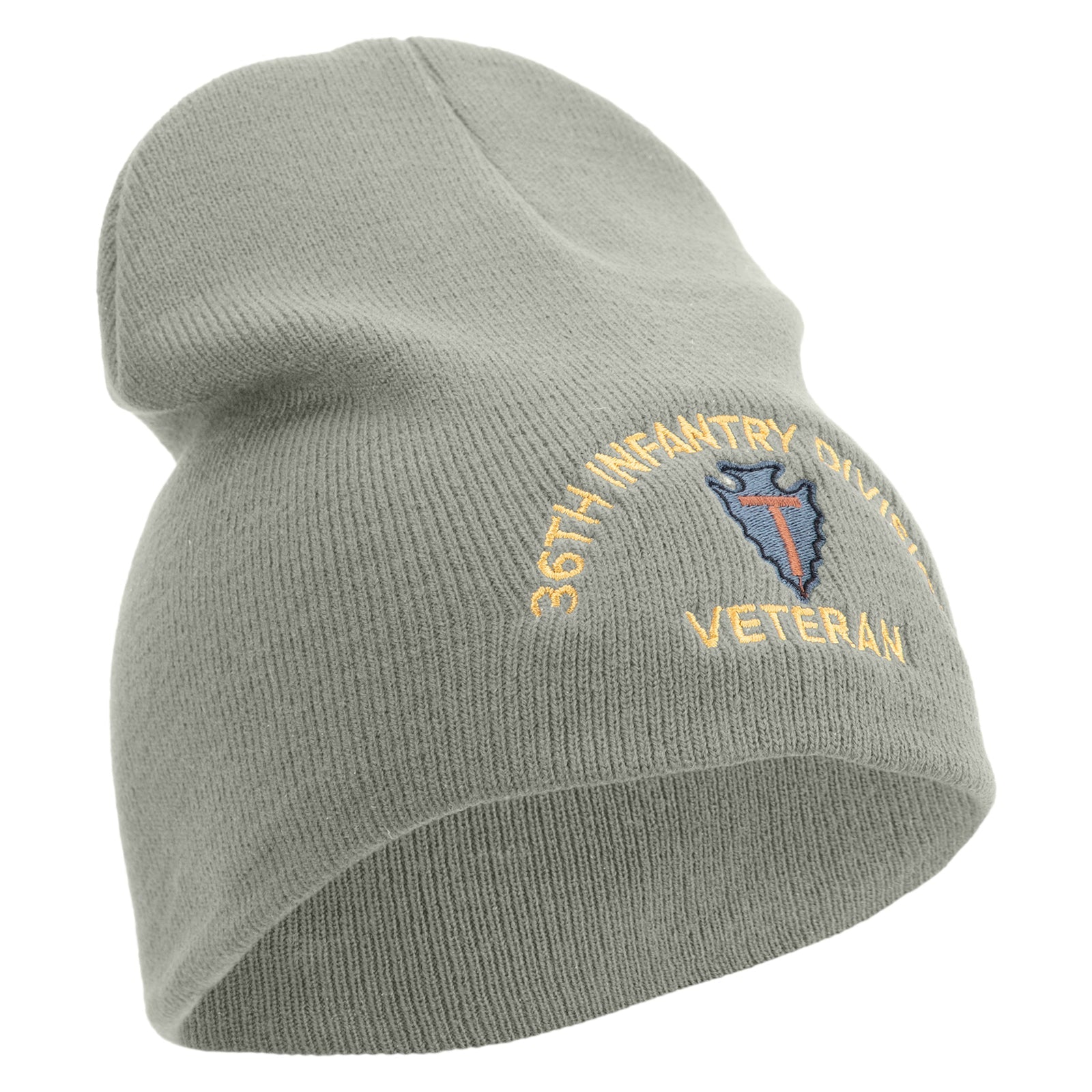 Title, U.S. Army 36th Infantry Division Symbol Embroidered 8 Inch Solid Knit Short Beanie Made in USA