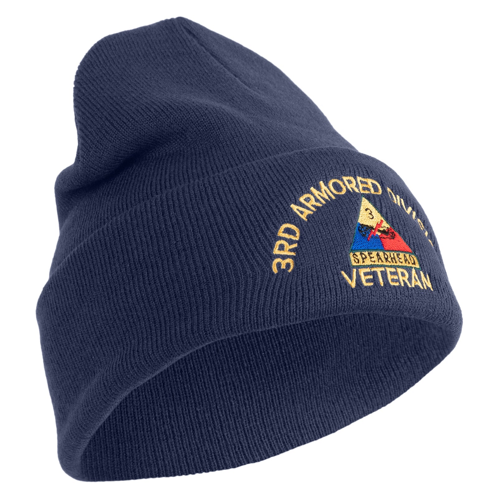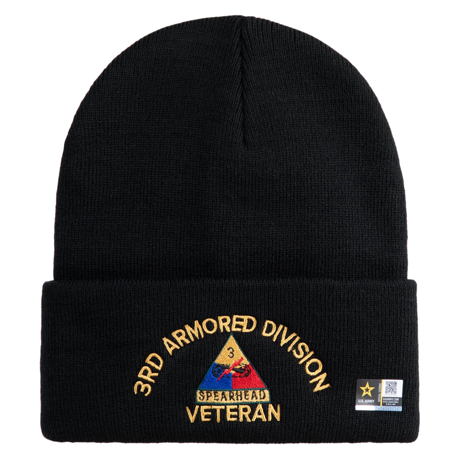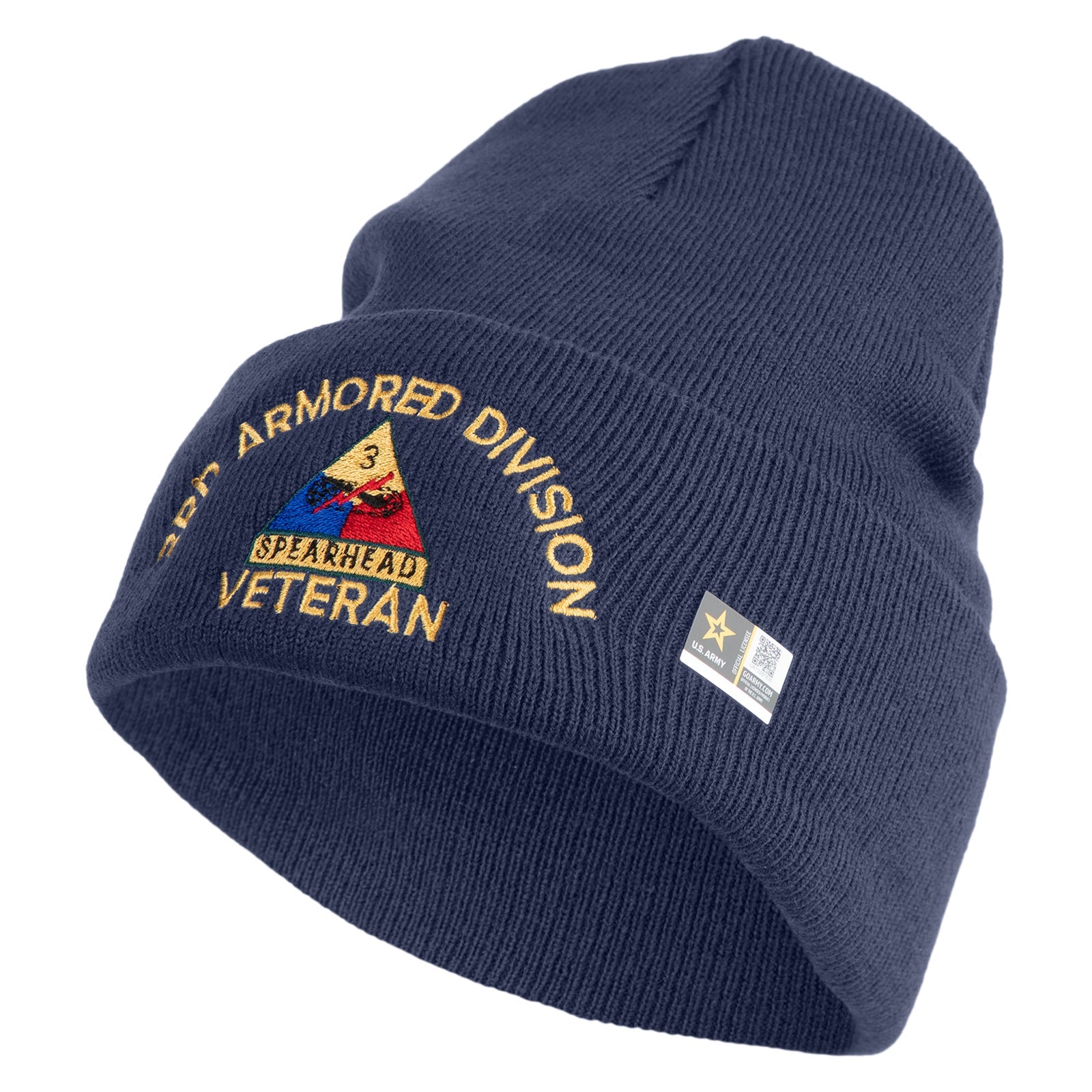 Title, U.S. Army 3rd Armored Division Logo Embroidered 12 Inch Solid Knit Cuff Long Beanie Made in USA