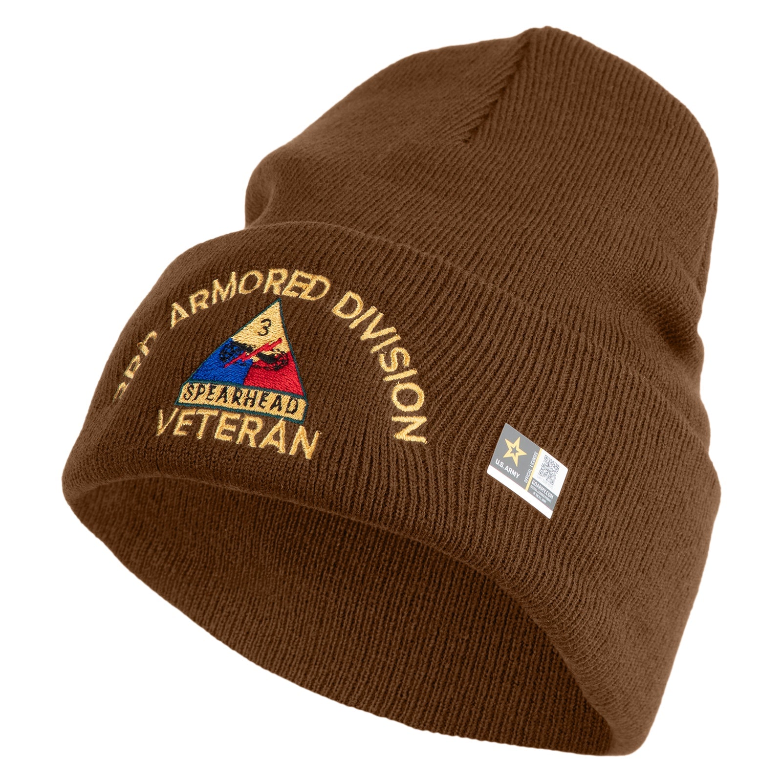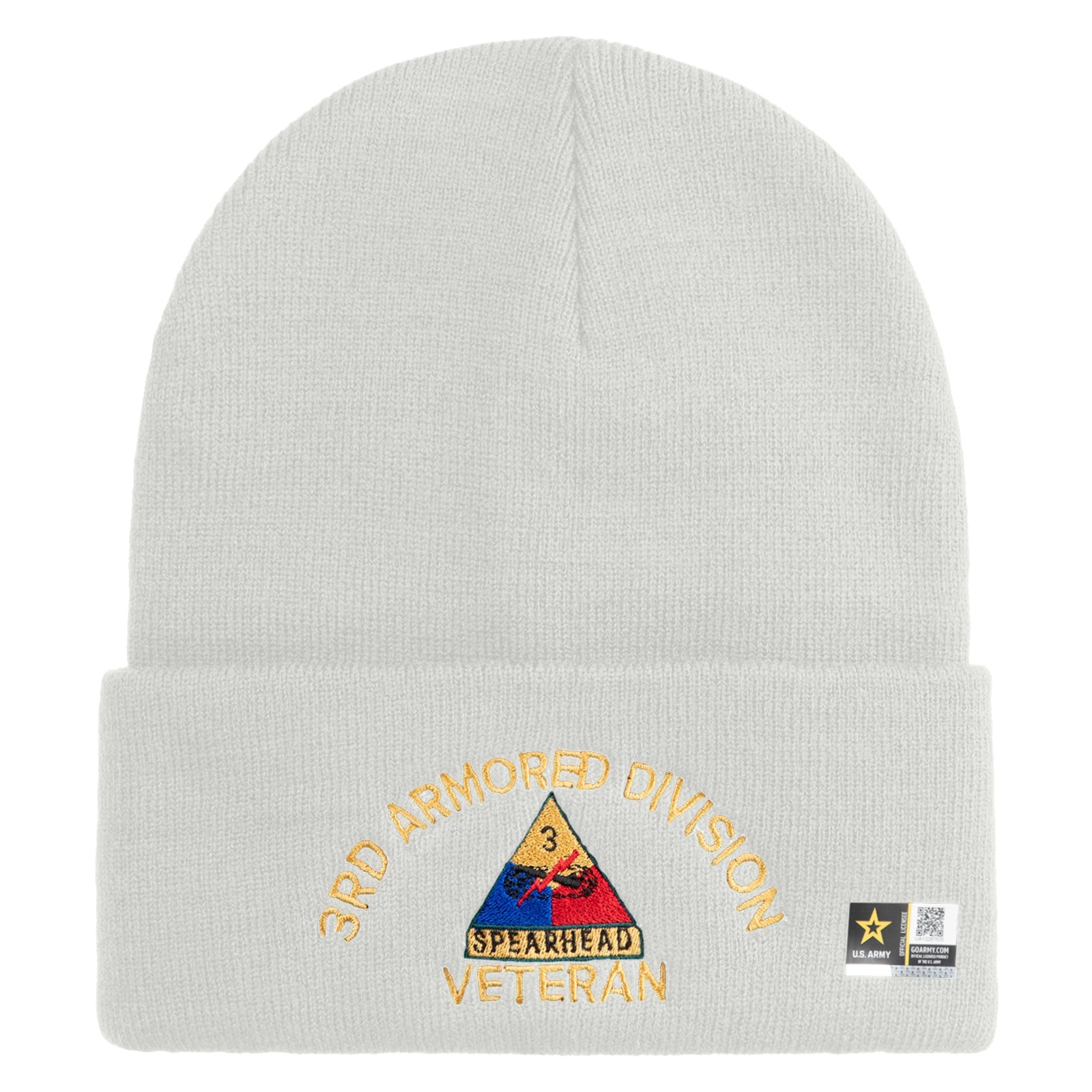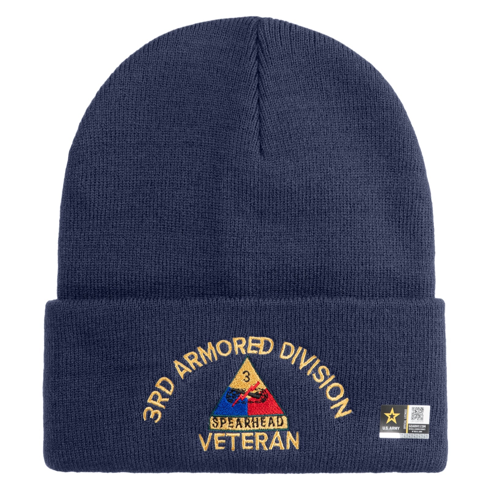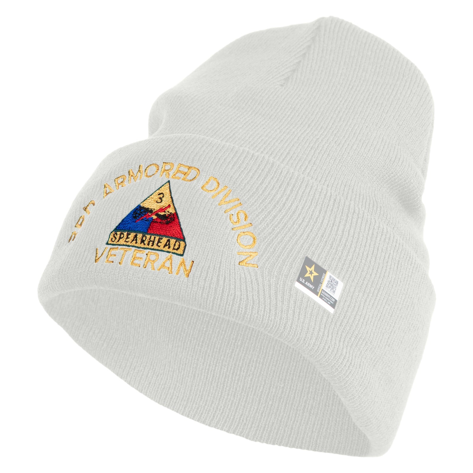 Title, U.S. Army 3rd Armored Division Logo Embroidered 12 Inch Solid Knit Cuff Long Beanie Made in USA