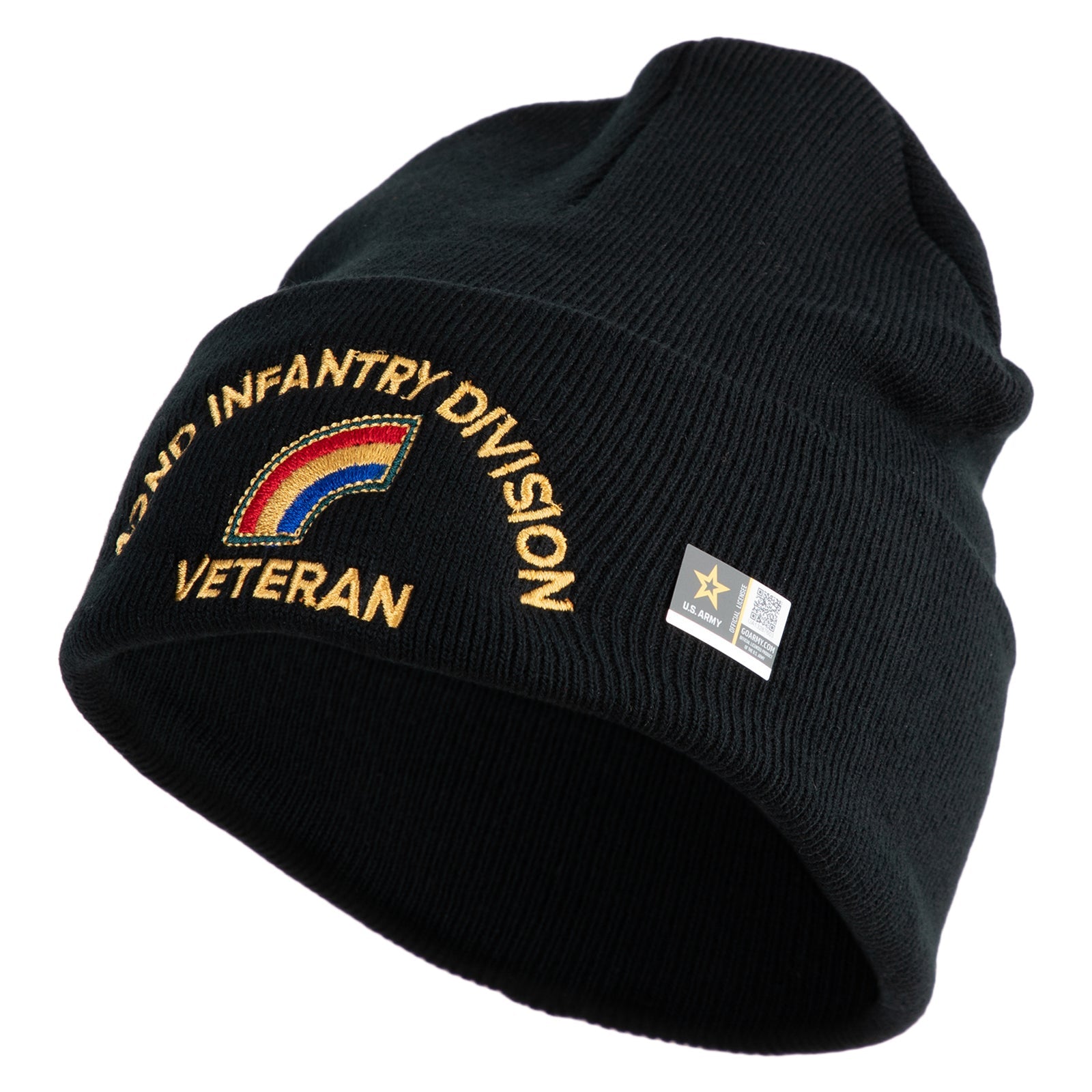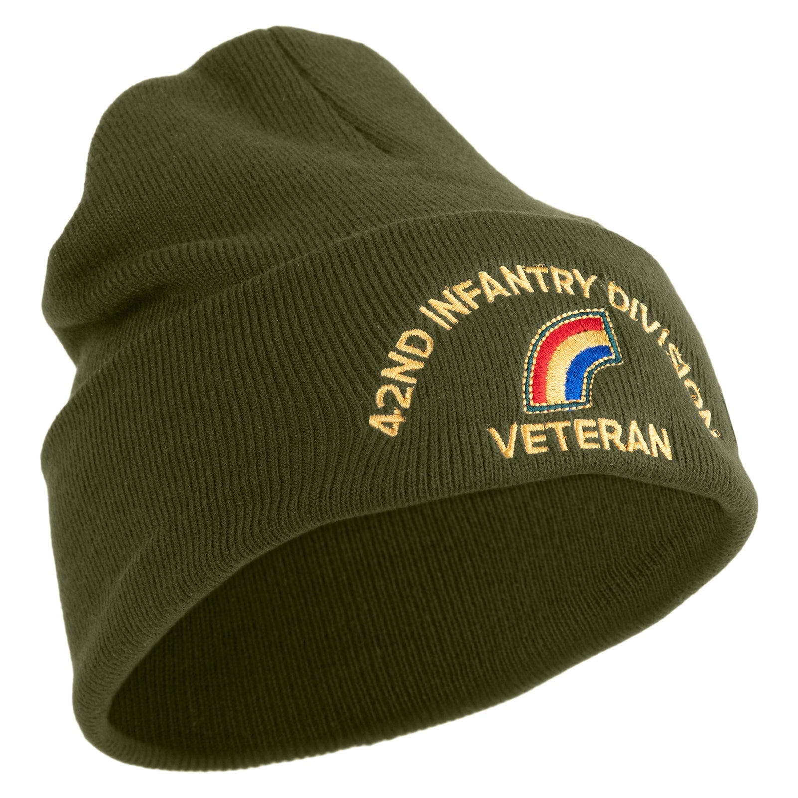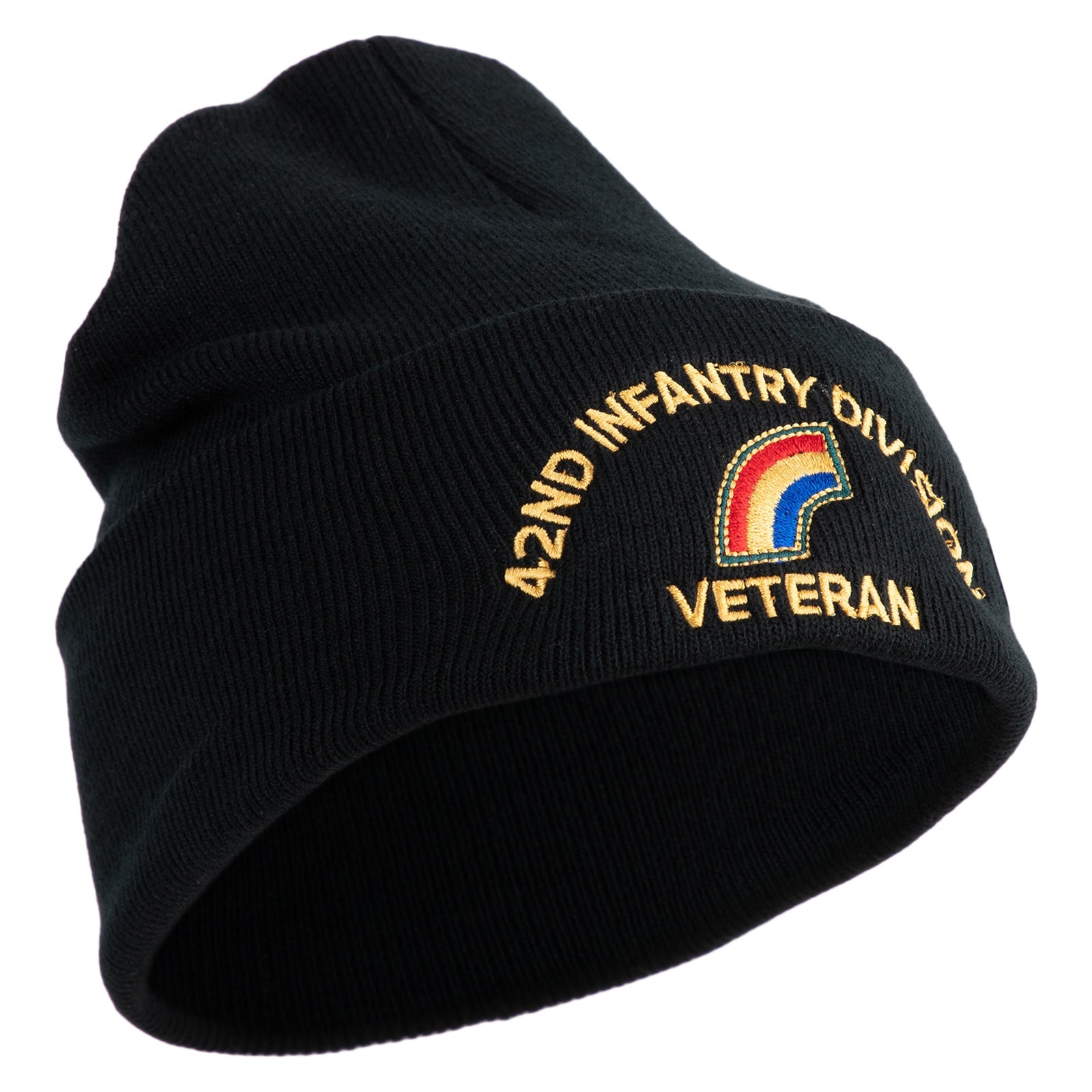 U.S. Army 42nd Infantry Division Logo Embroidered 12 Inch Solid Knit Cuff Long Beanie Made in USA
