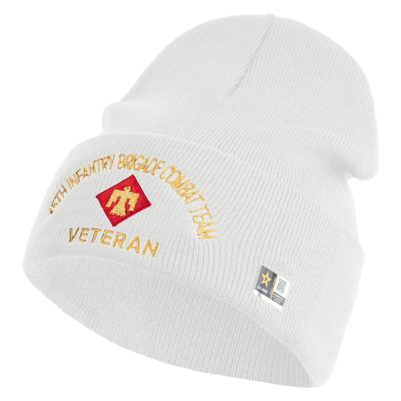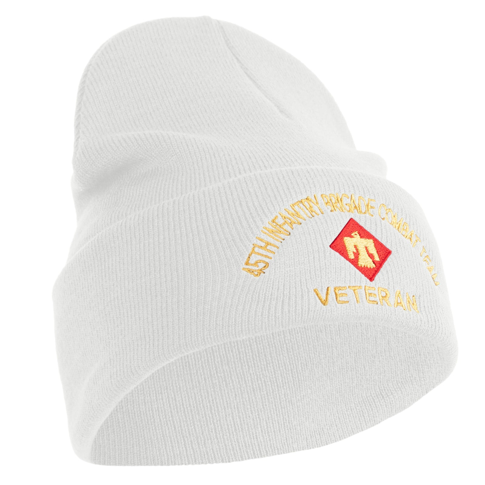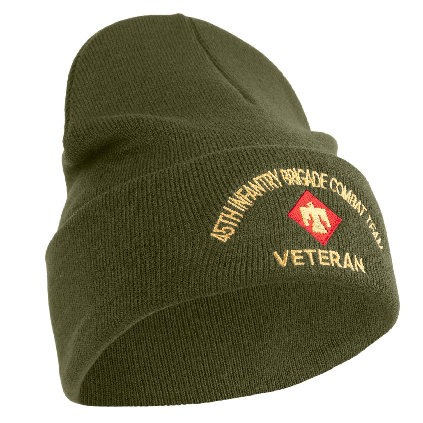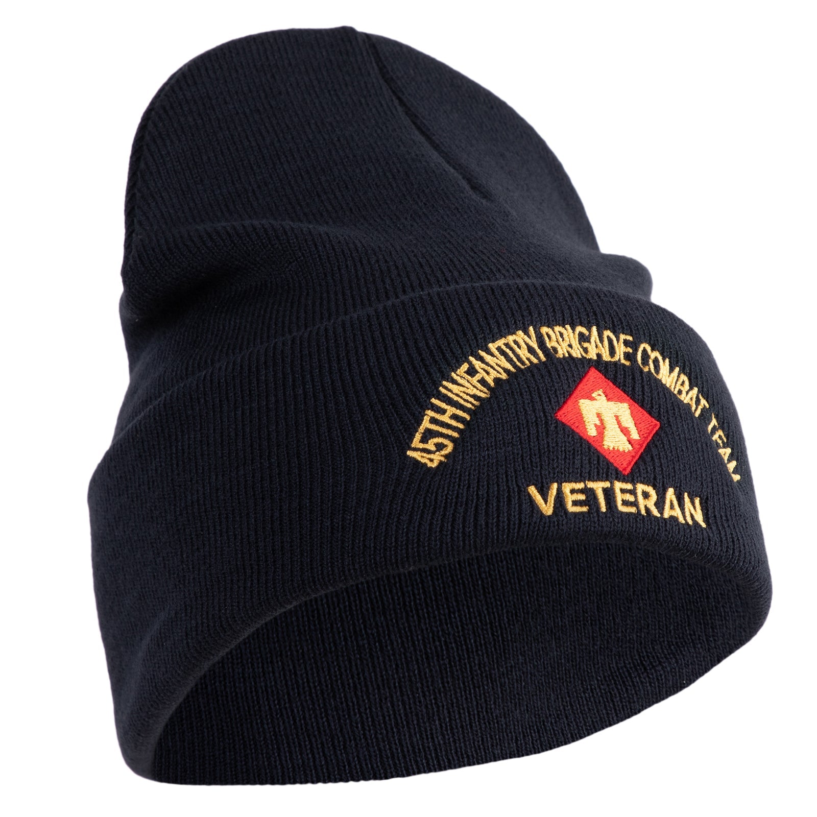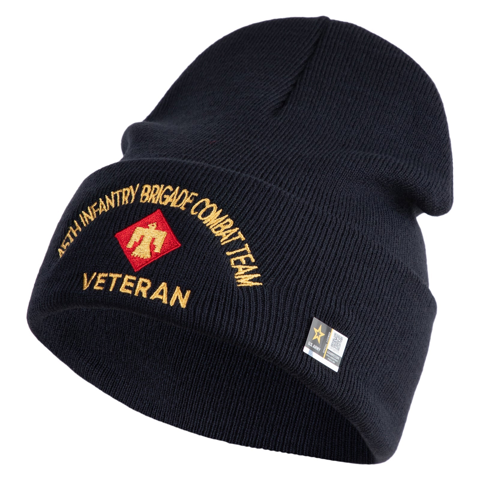 Title, U.S. Army 45th Infantry Brigade Combat Team Logo Embroidered 12 Inch Solid Knit Cuff Long Beanie Made in USA