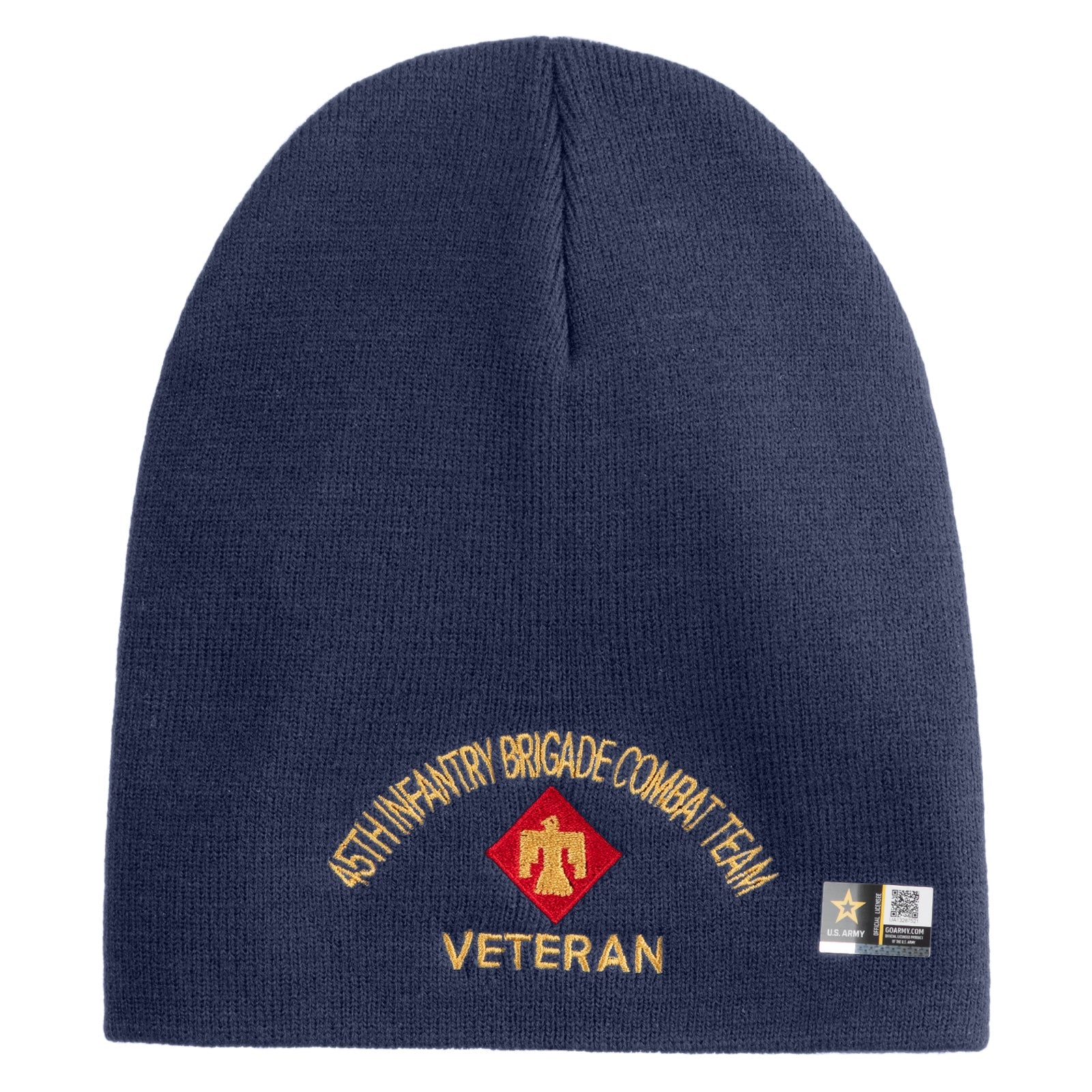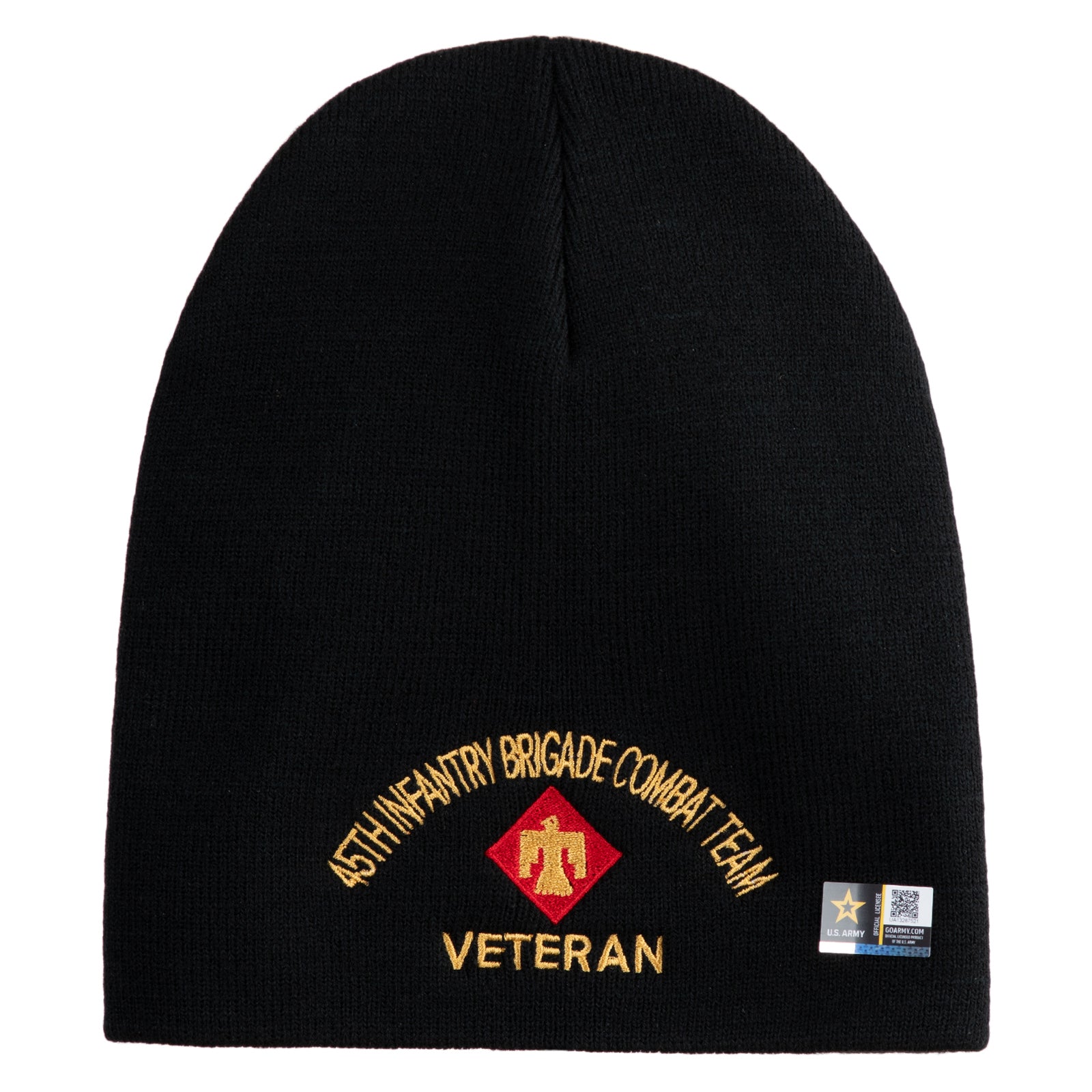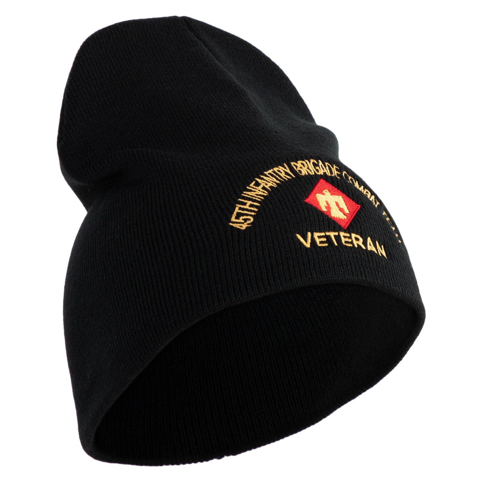 U.S. Army 45th Infantry Brigade Combat Team Symbol Embroidered 8 Inch Solid Knit Short Beanie Made in USA