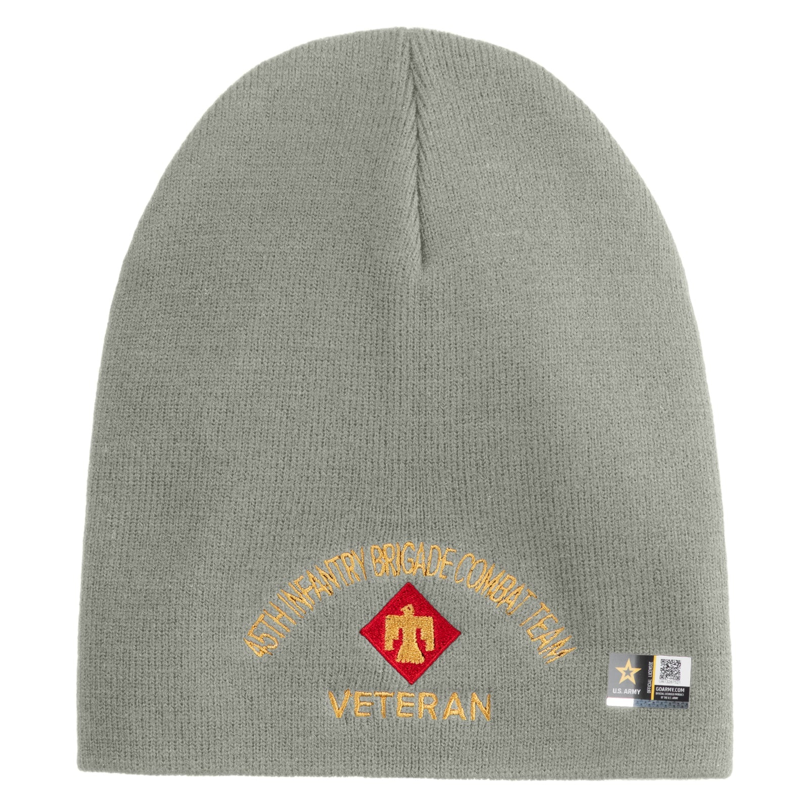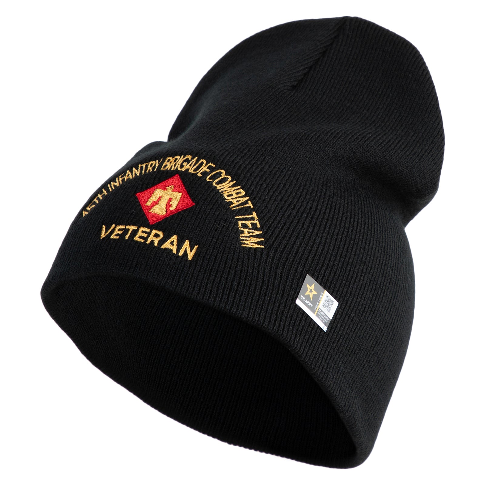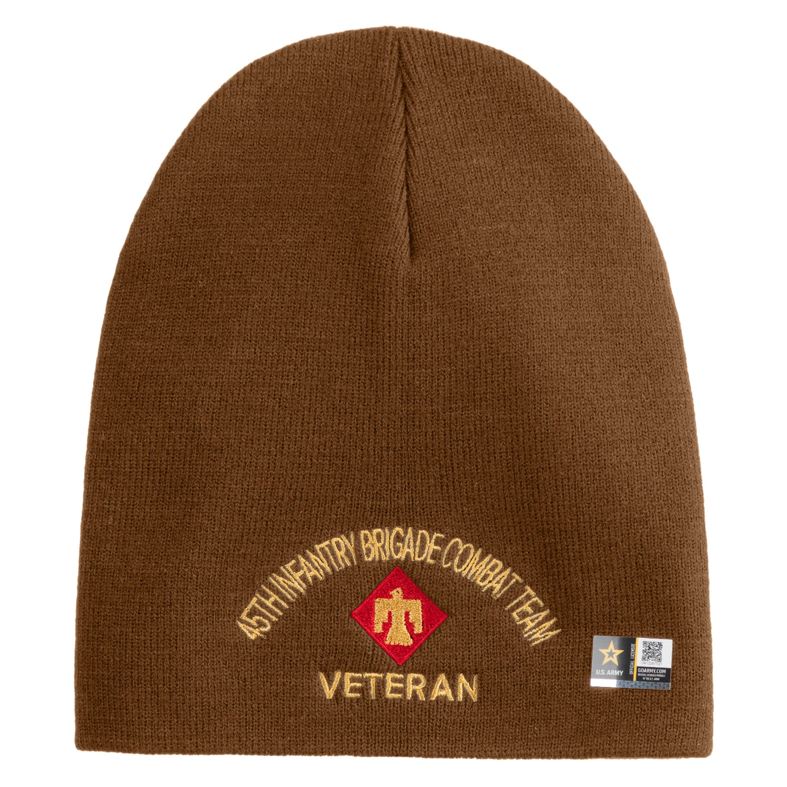 U.S. Army 45th Infantry Brigade Combat Team Symbol Embroidered 8 Inch Solid Knit Short Beanie Made in USA