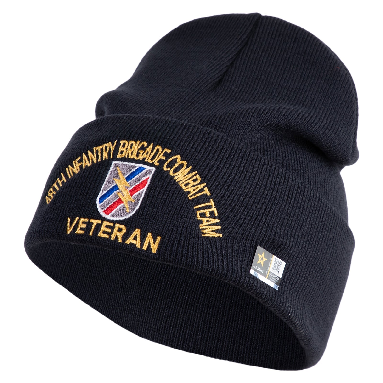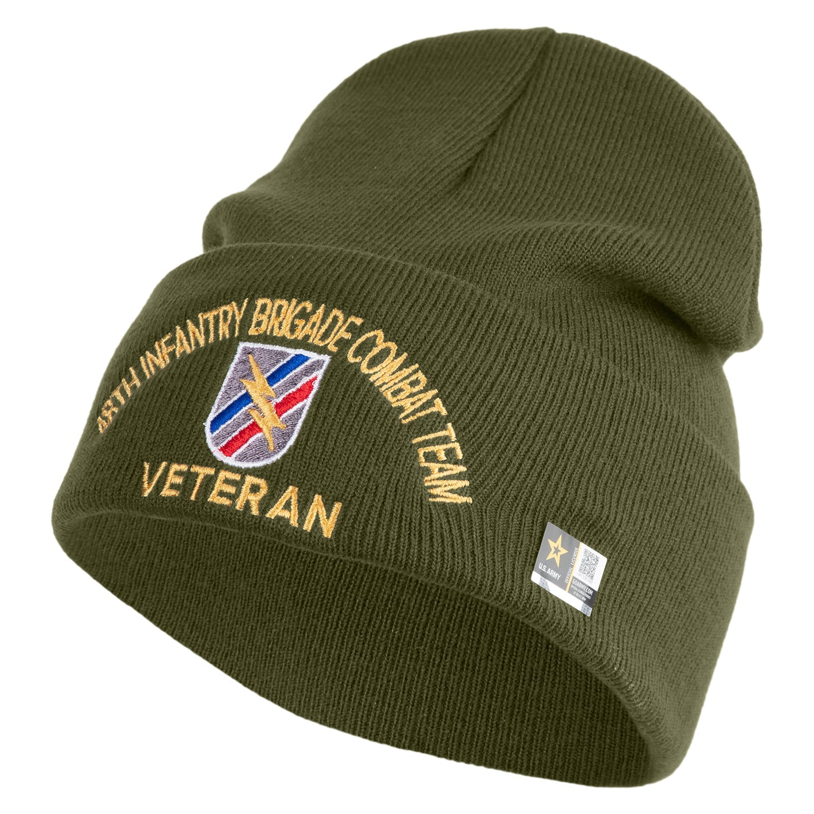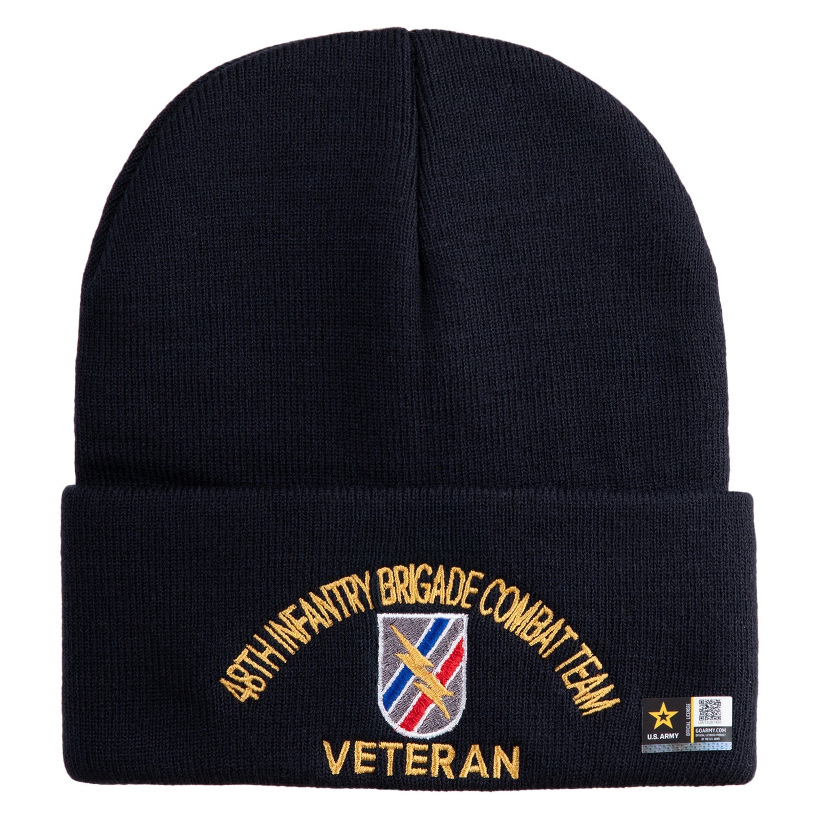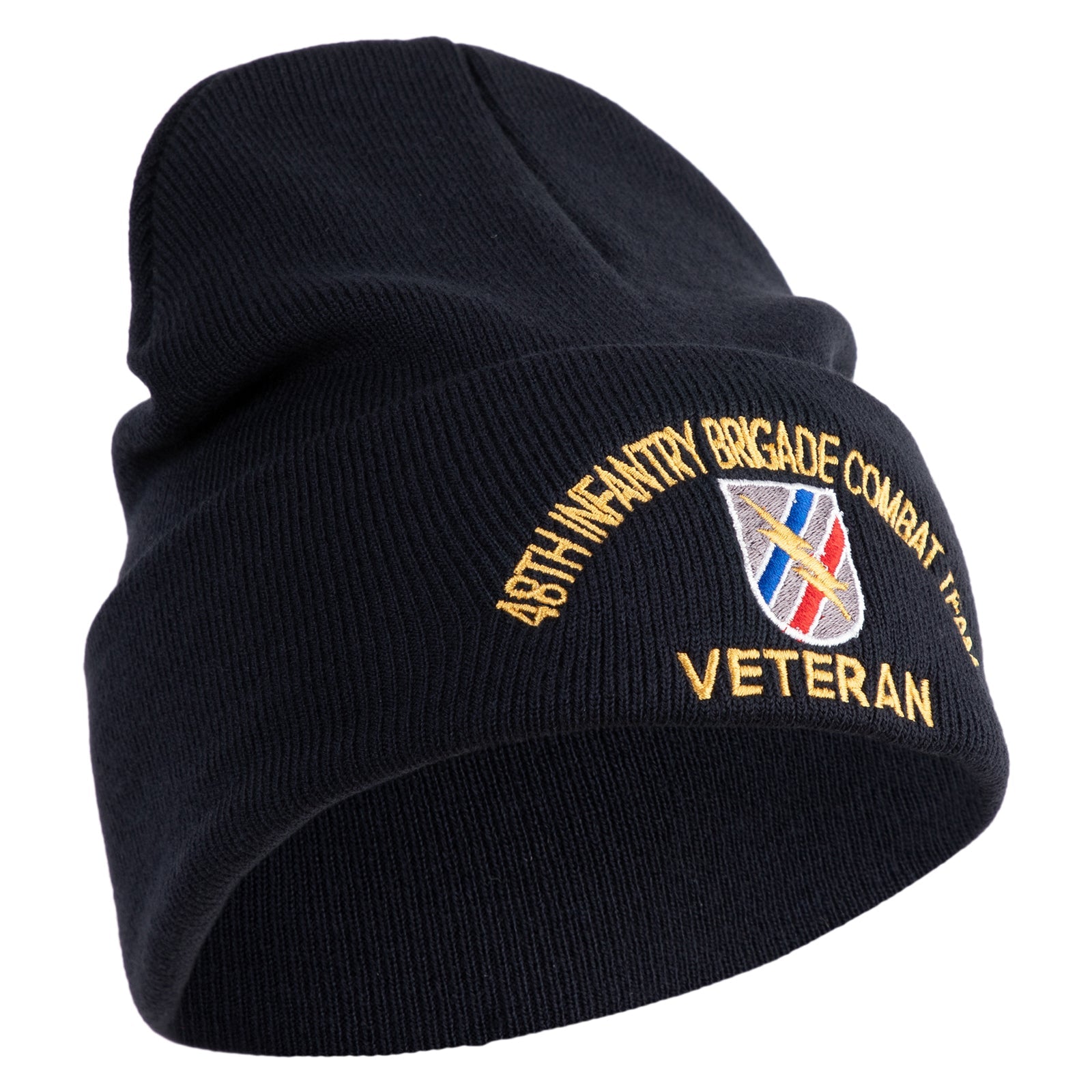 U.S. Army 48th Infantry Brigade Combat Team Logo Embroidered 12 Inch Solid Knit Cuff Long Beanie Made in USA
