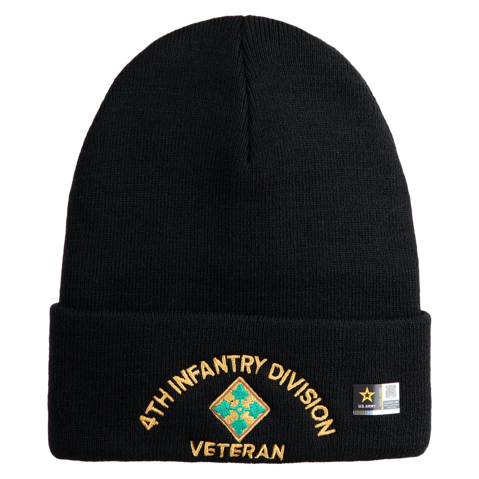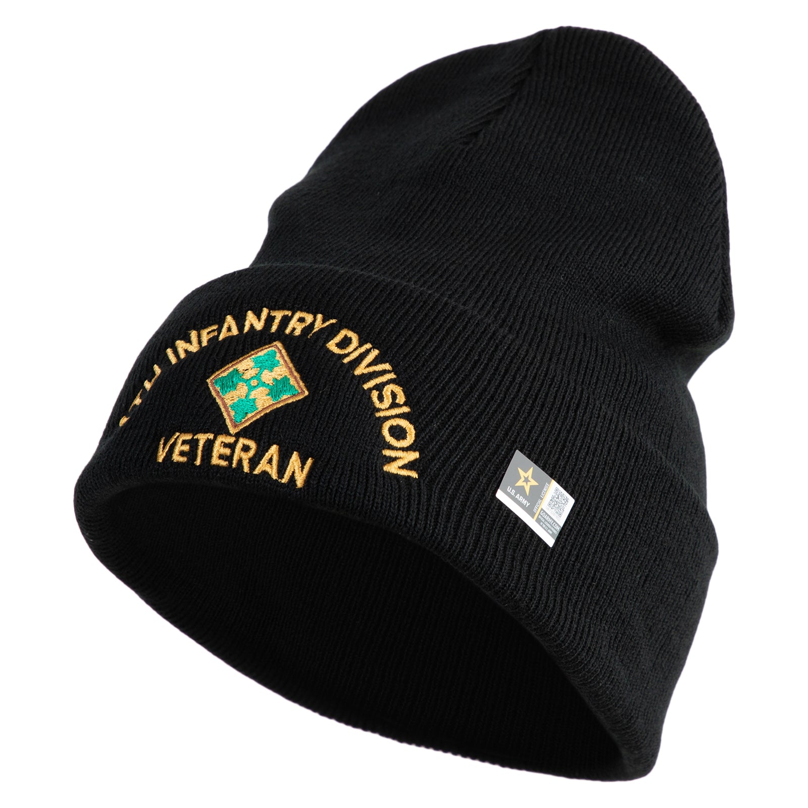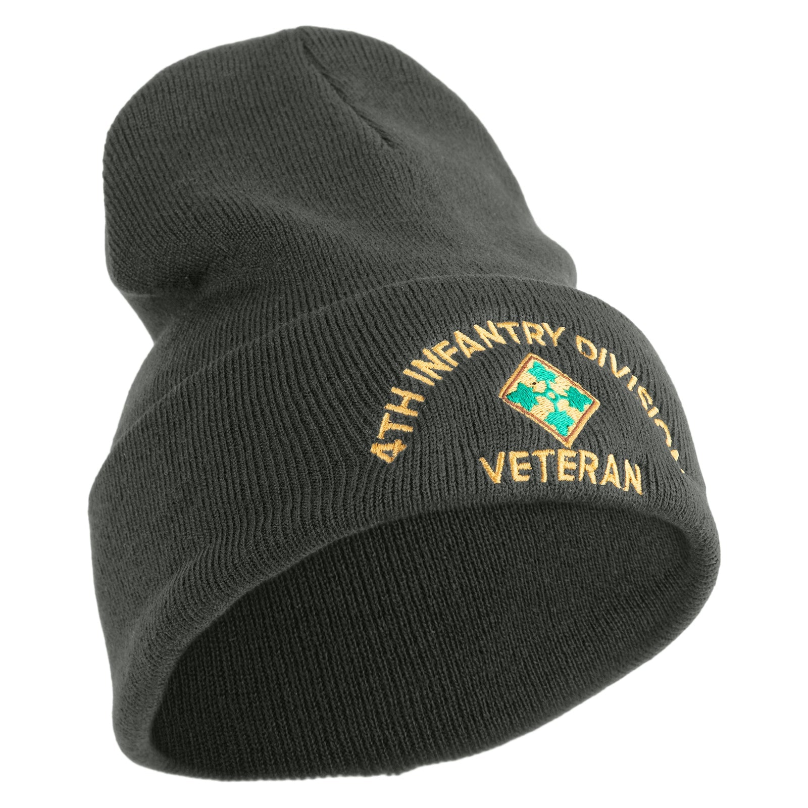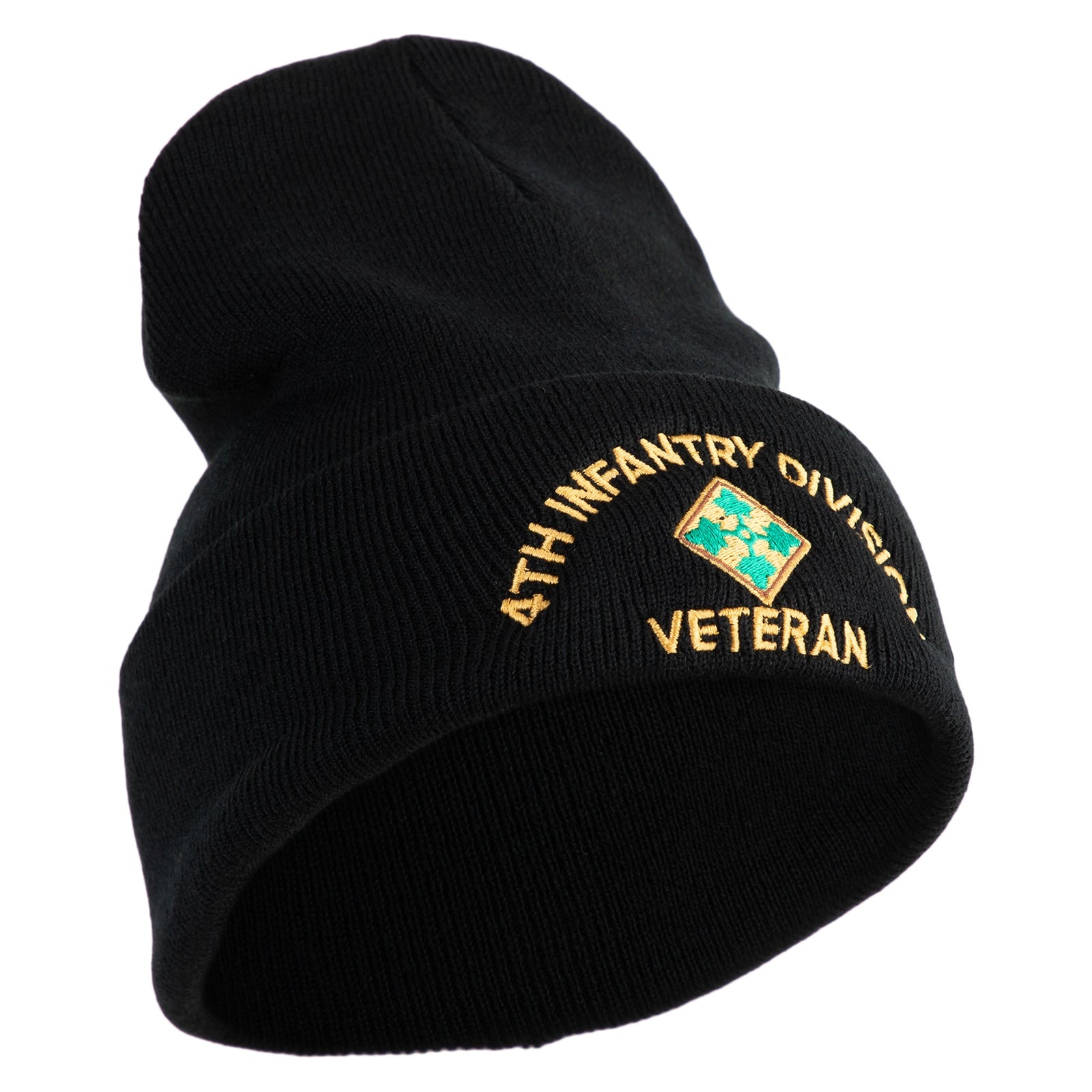 Title, U.S. Army 4th Infantry Division Logo Embroidered 12 Inch Solid Knit Cuff Long Beanie Made in USA