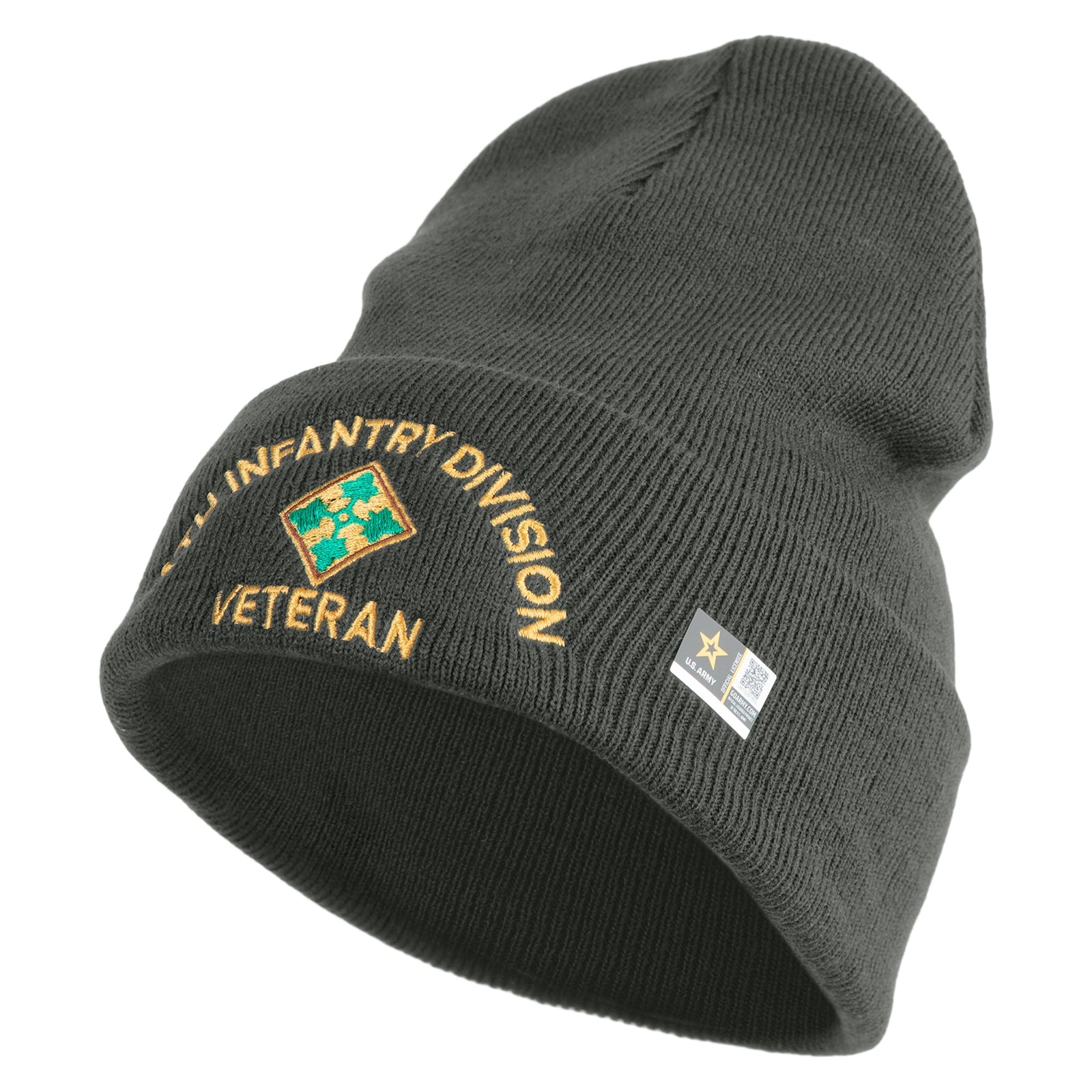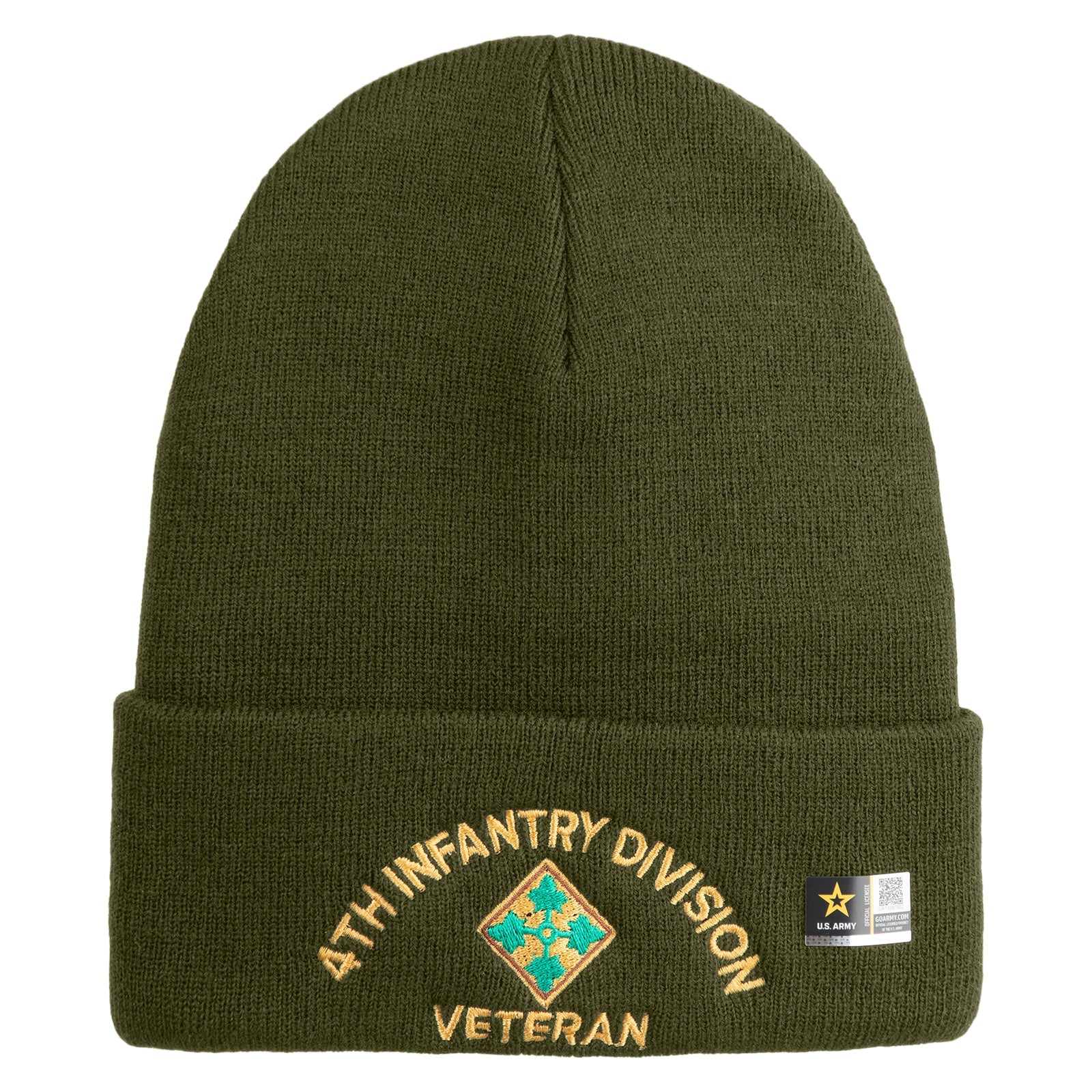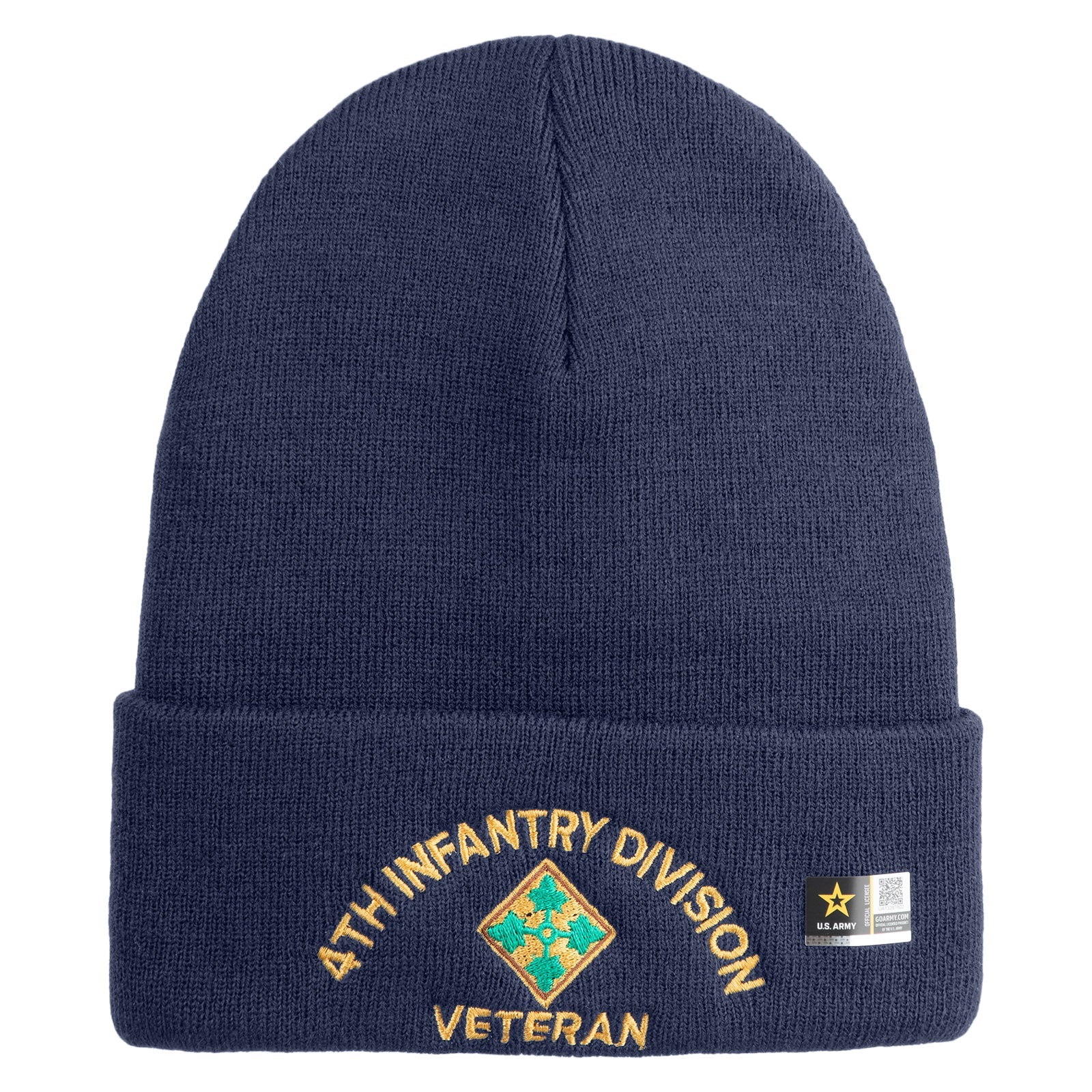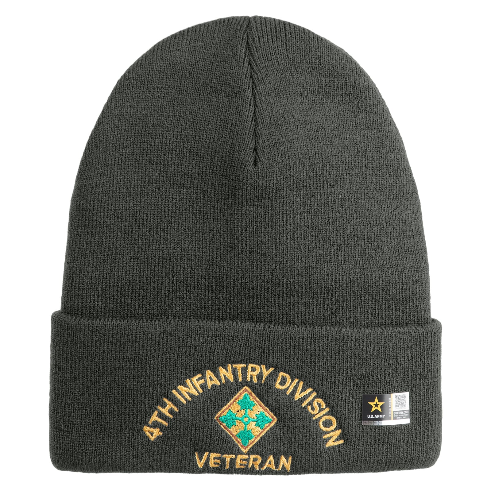 Title, U.S. Army 4th Infantry Division Logo Embroidered 12 Inch Solid Knit Cuff Long Beanie Made in USA