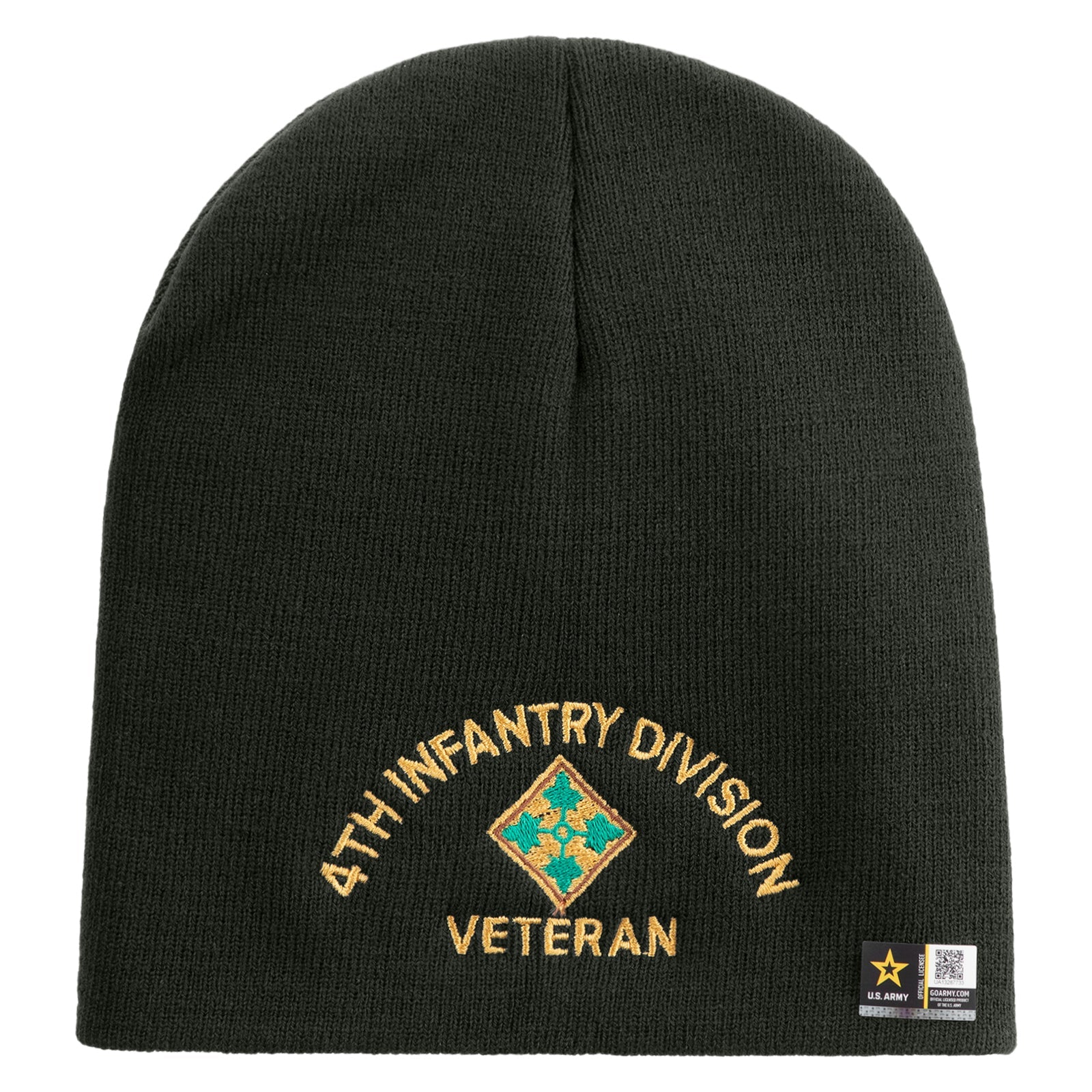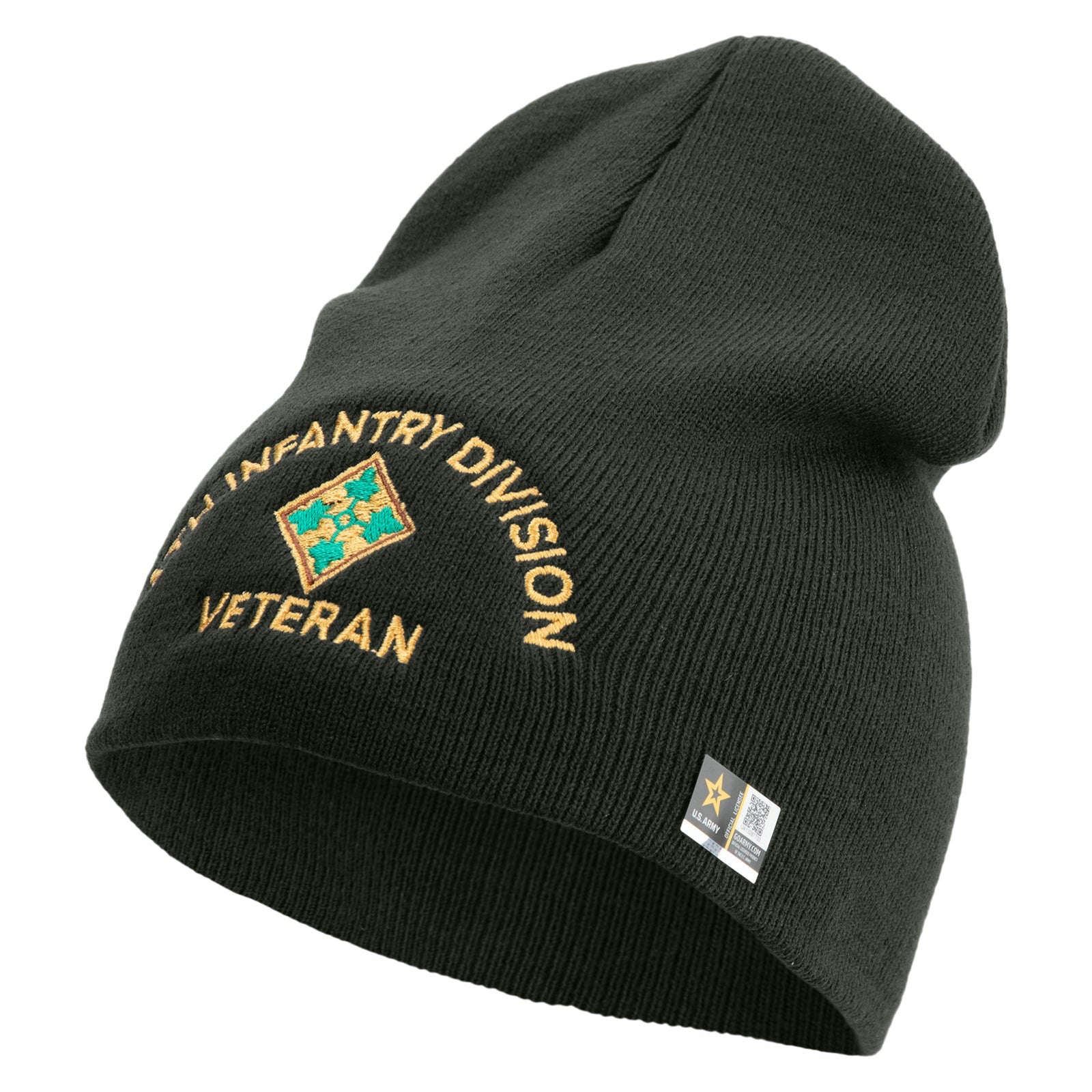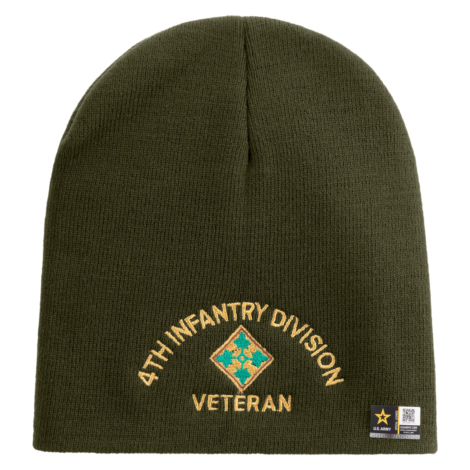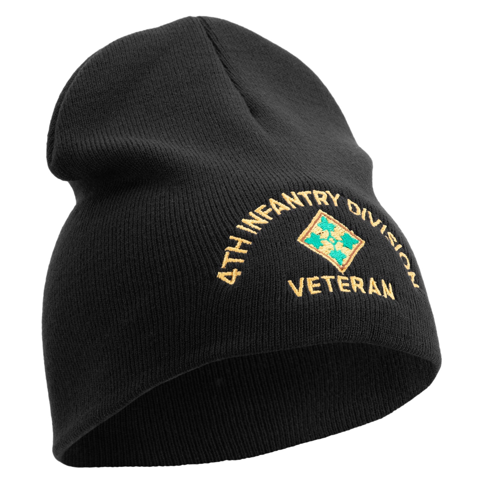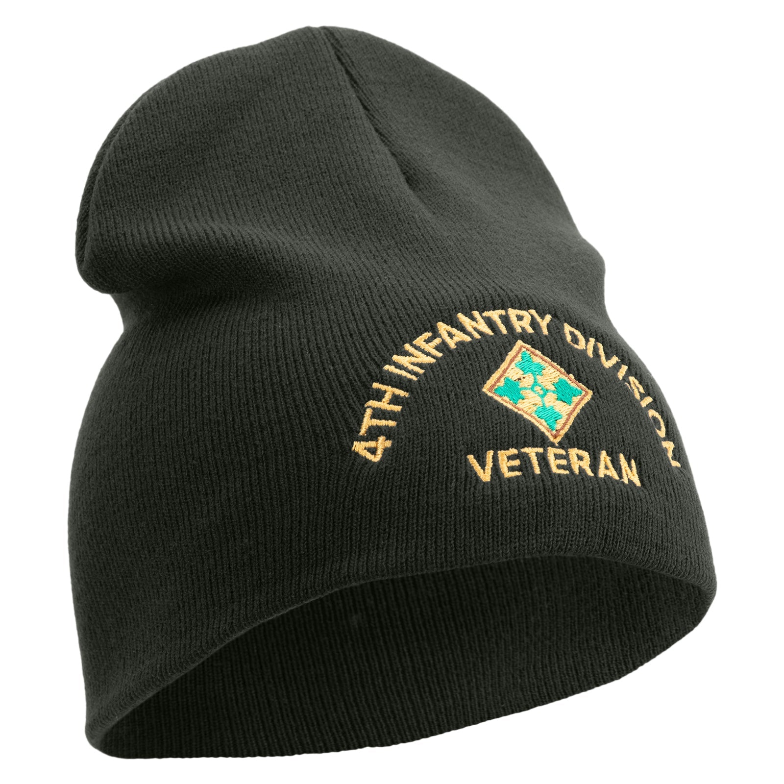 U.S. Army 4th Infantry Division Symbol Embroidered 8 Inch Solid Knit Short Beanie Made in USA