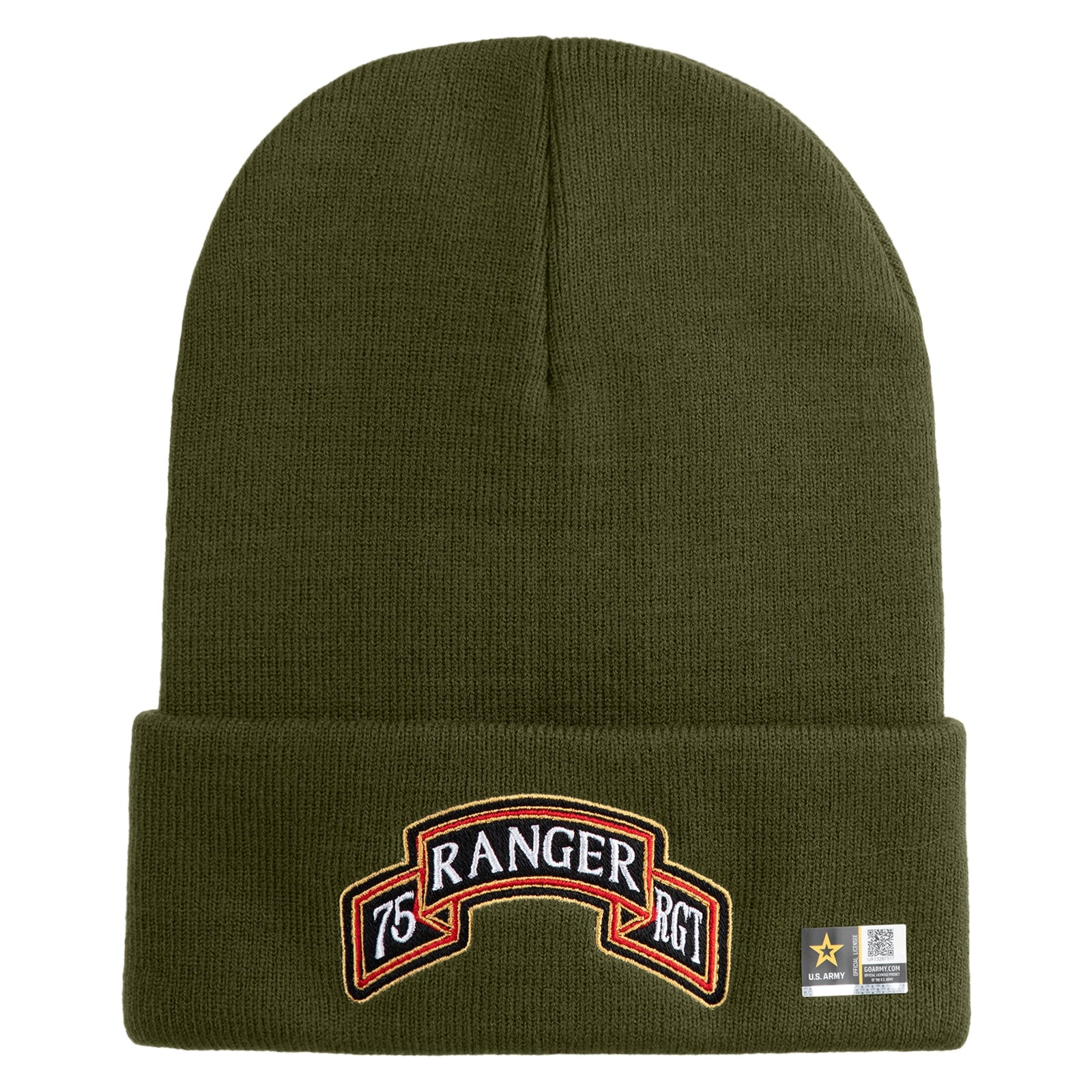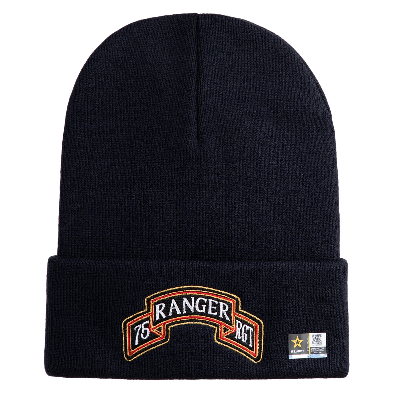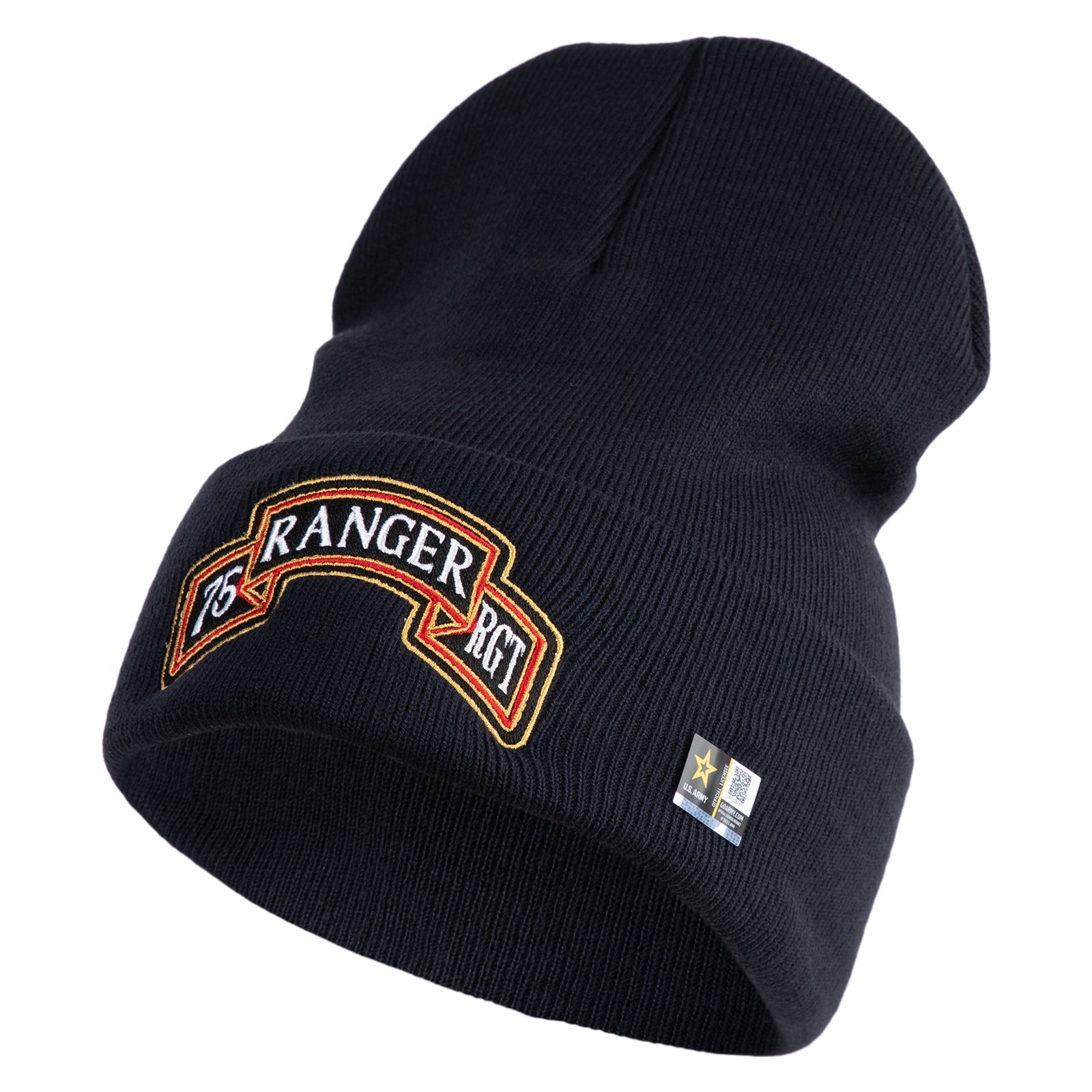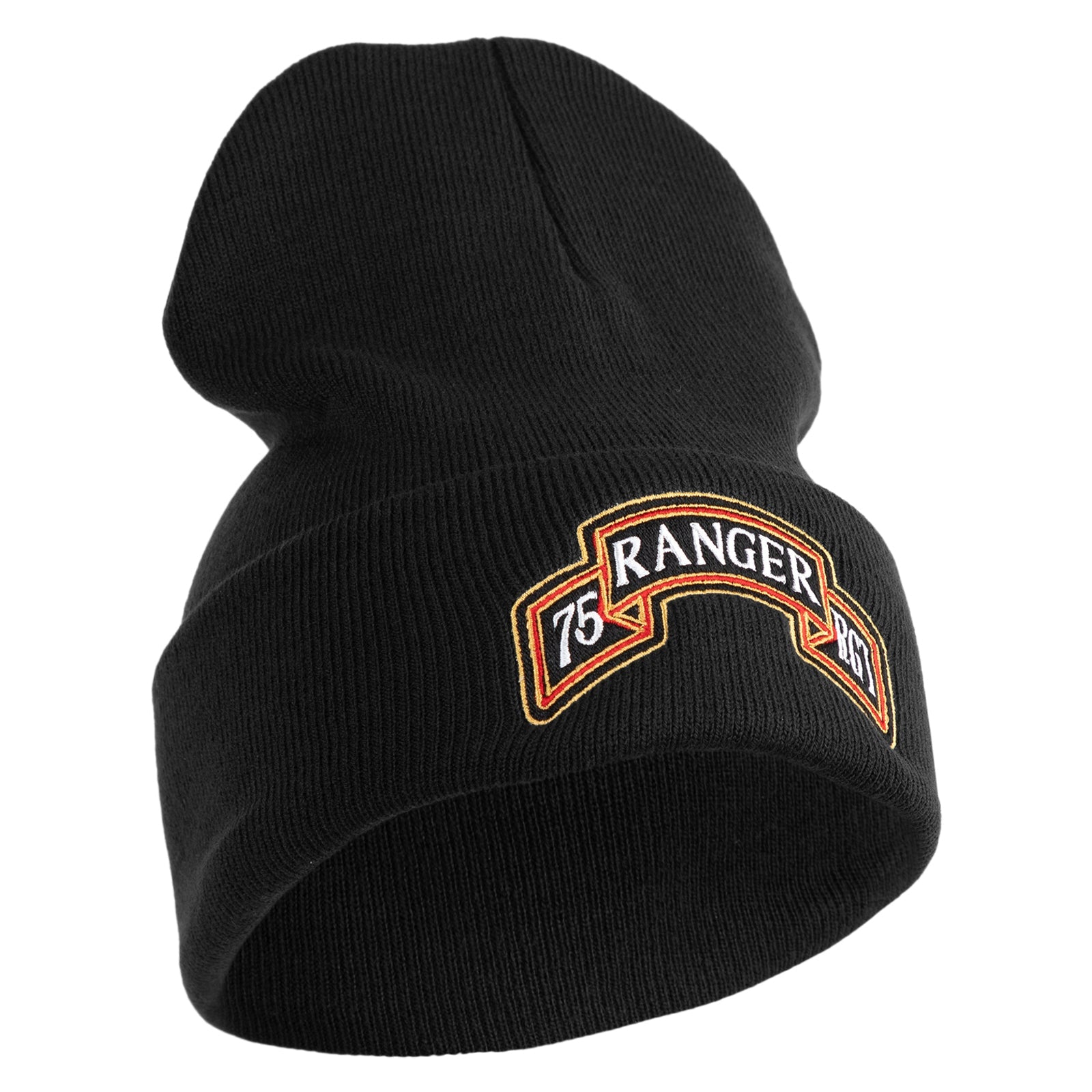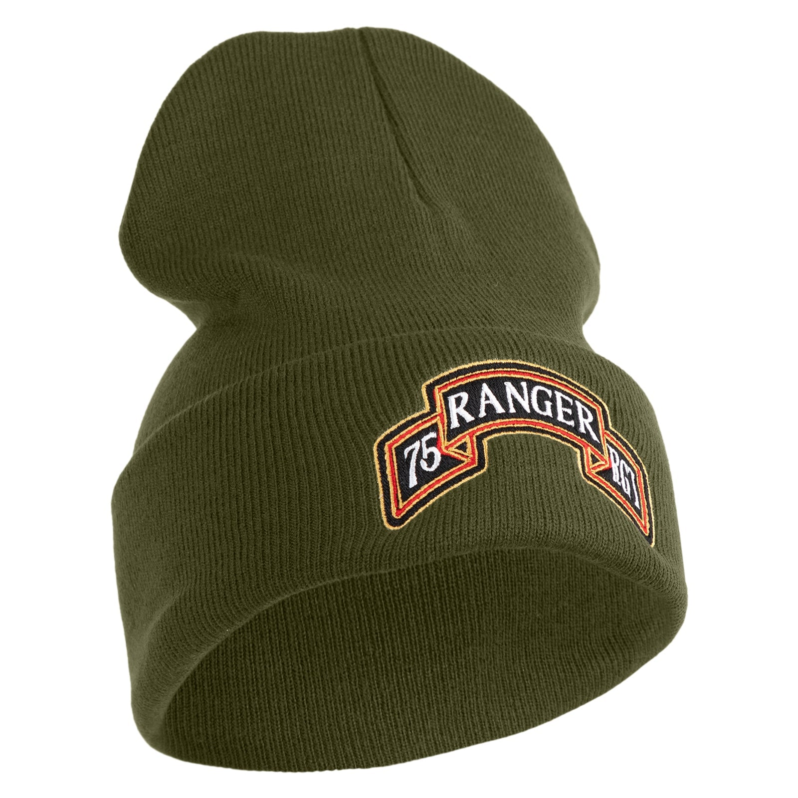 Title, U.S. Army 75th Ranger Regiment Logo Embroidered 12 Inch Solid Knit Cuff Long Beanie Made in USA