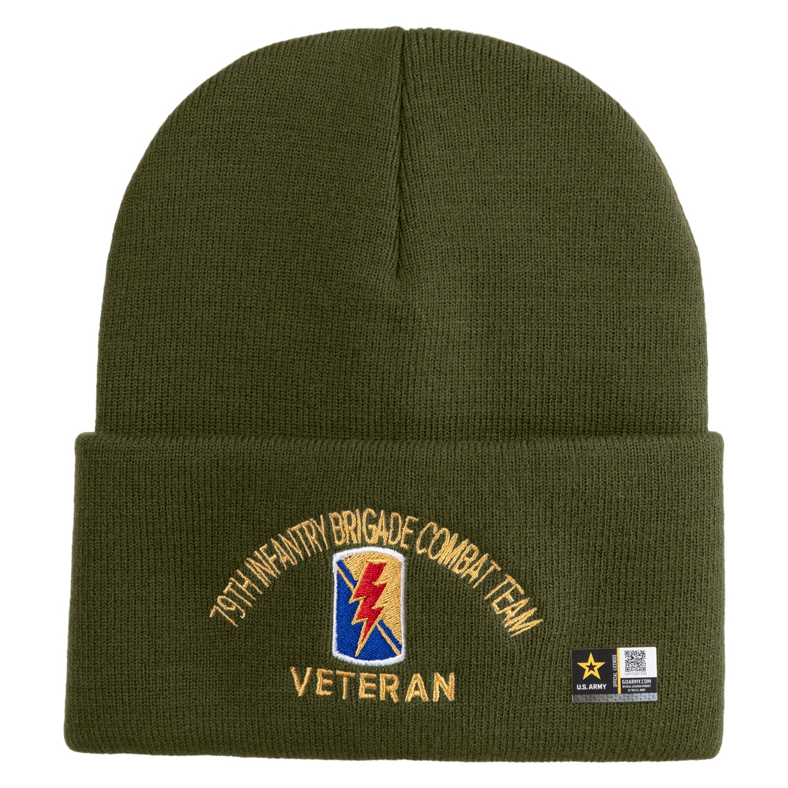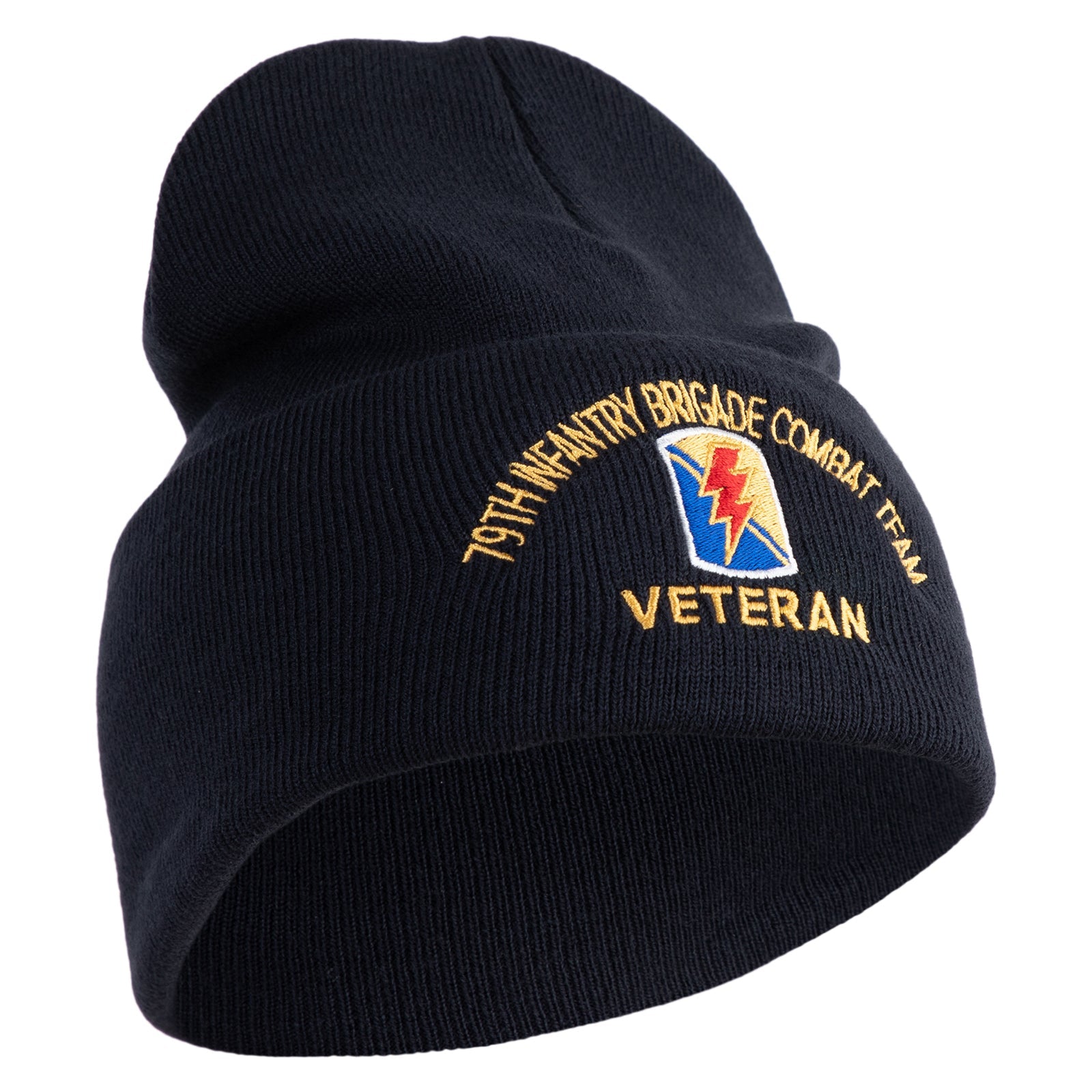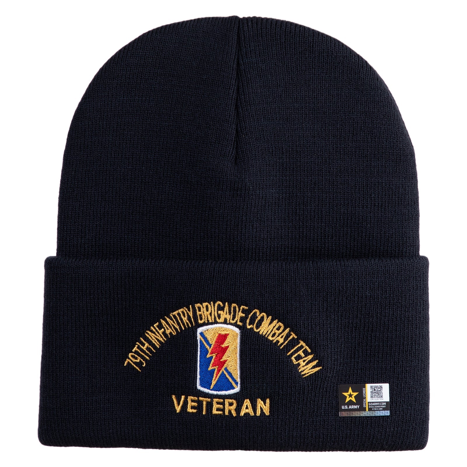 Title, U.S. Army 79th Infantry Brigade Combat Team Logo Embroidered 12 Inch Solid Knit Cuff Long Beanie Made in USA