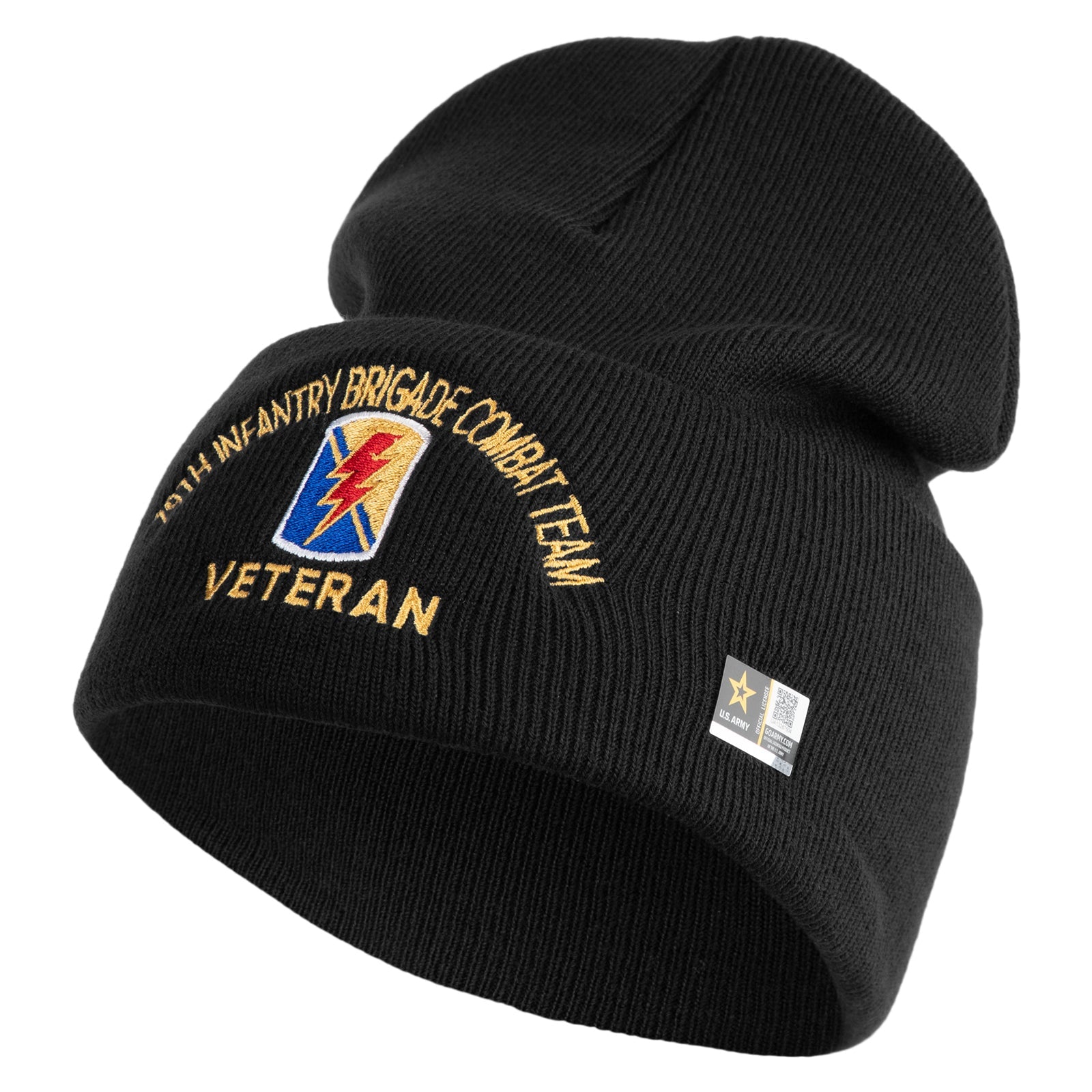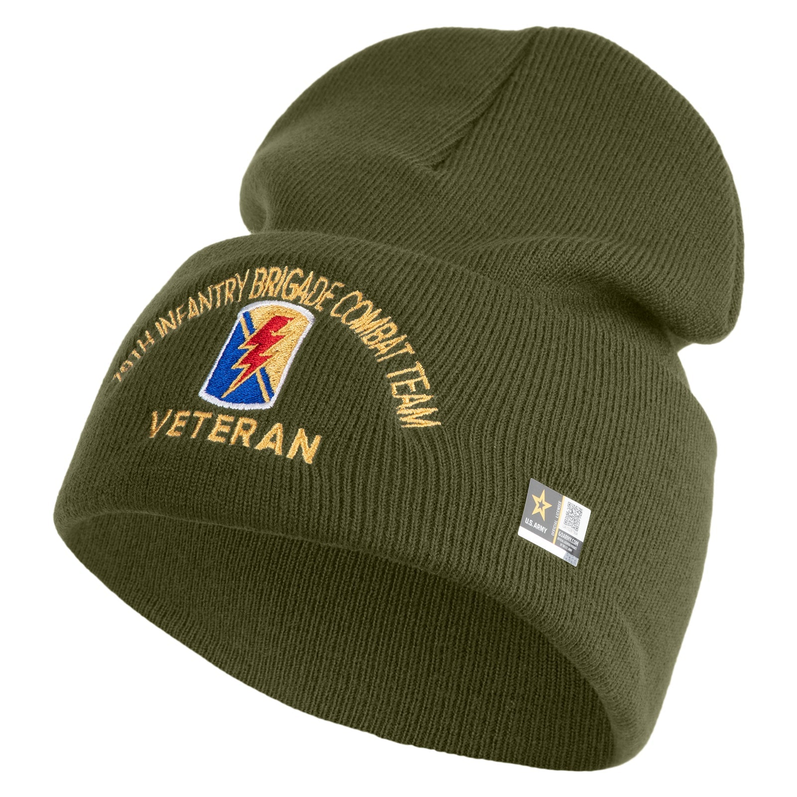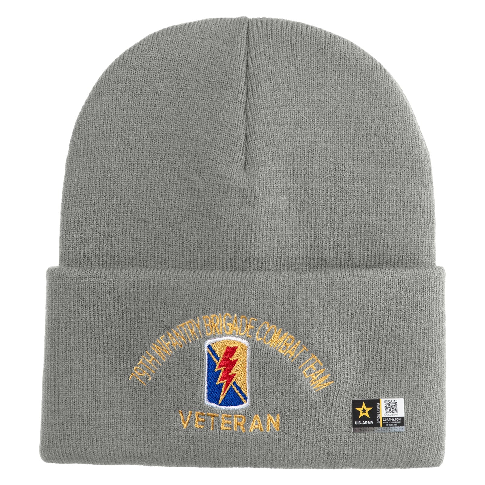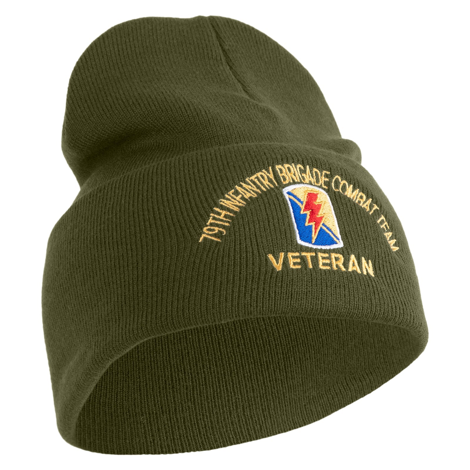 Title, U.S. Army 79th Infantry Brigade Combat Team Logo Embroidered 12 Inch Solid Knit Cuff Long Beanie Made in USA