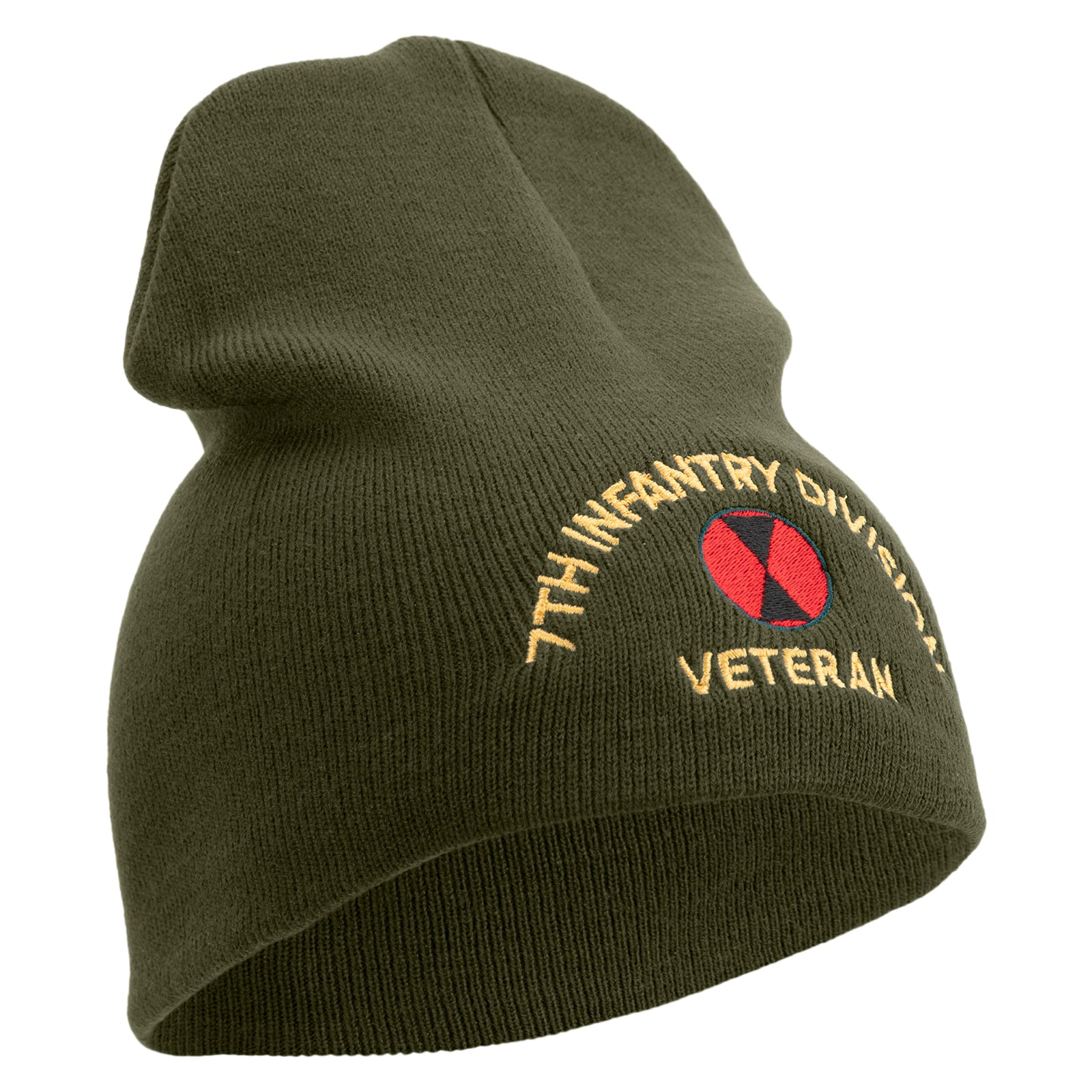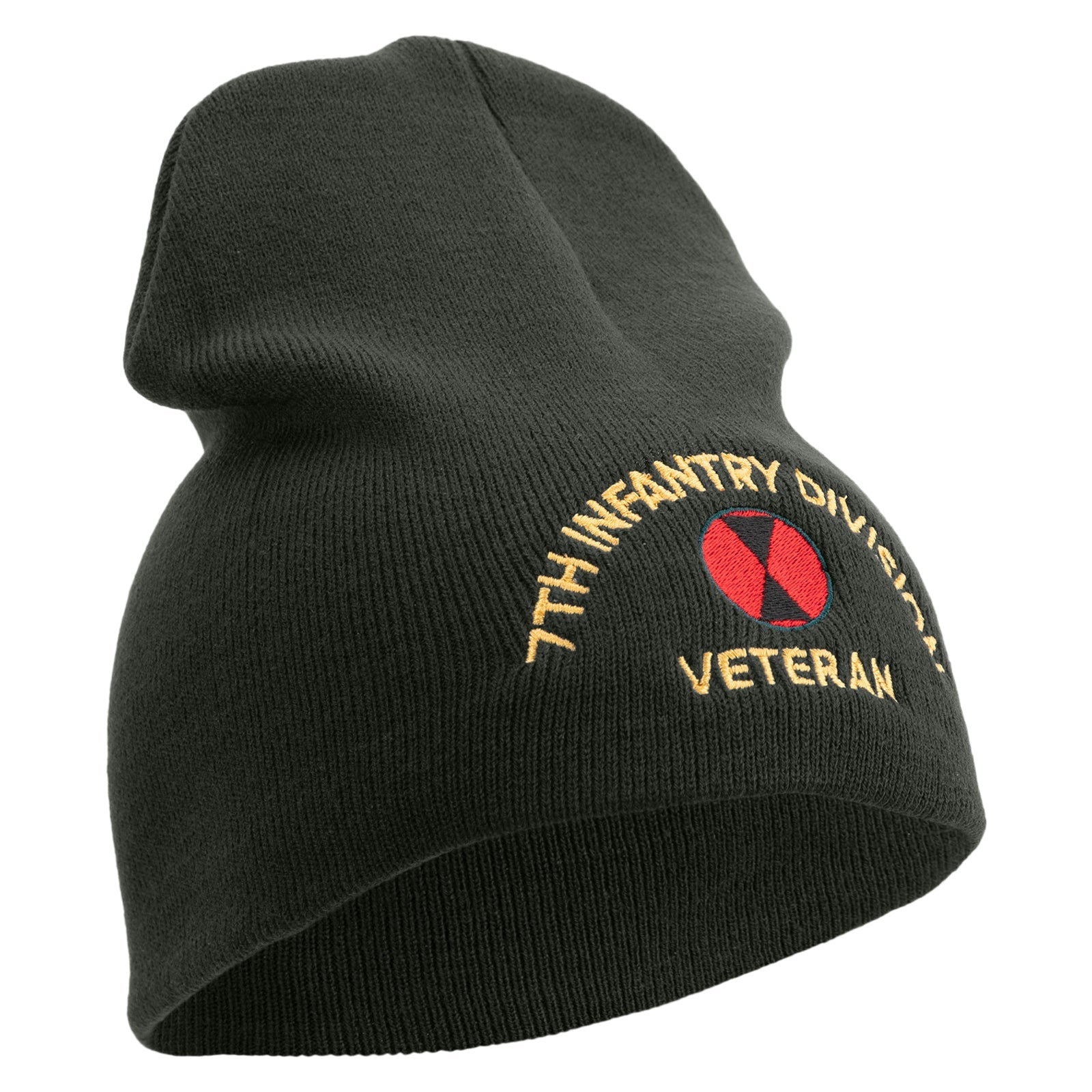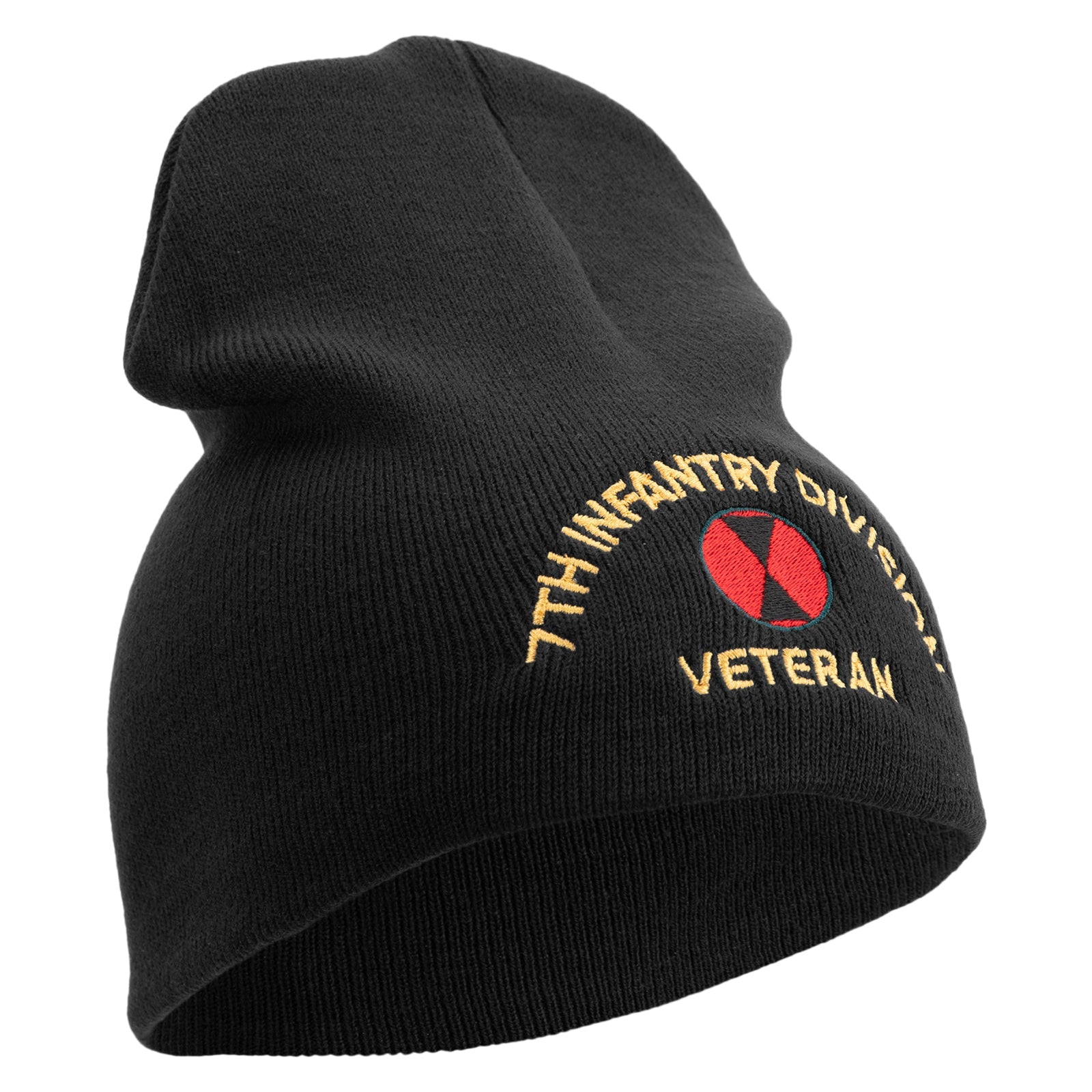 Title, U.S. Army 7th Infantry Division Symbol Embroidered 8 Inch Solid Knit Short Beanie Made in USA